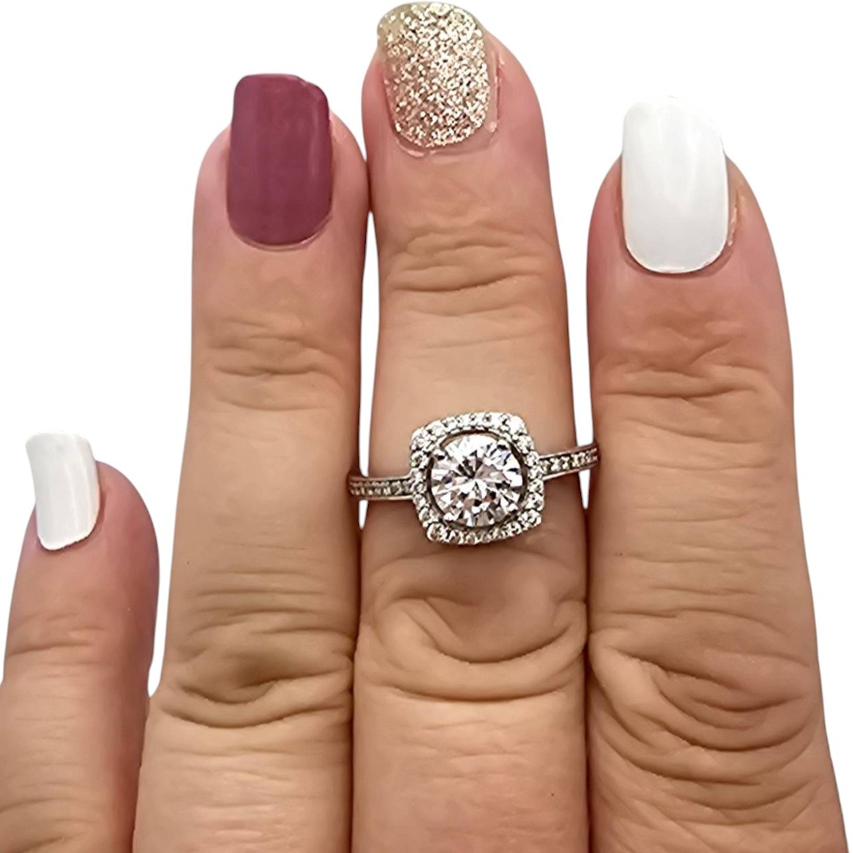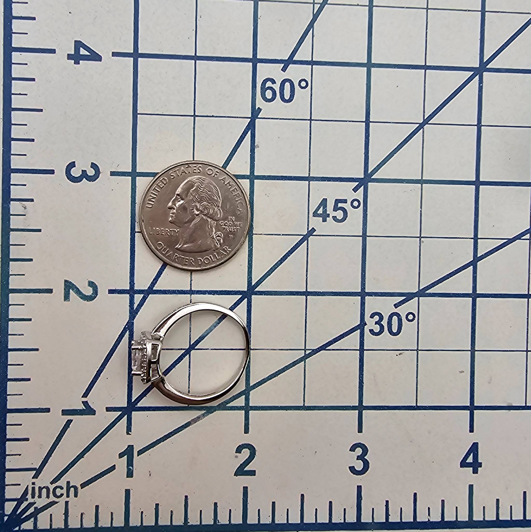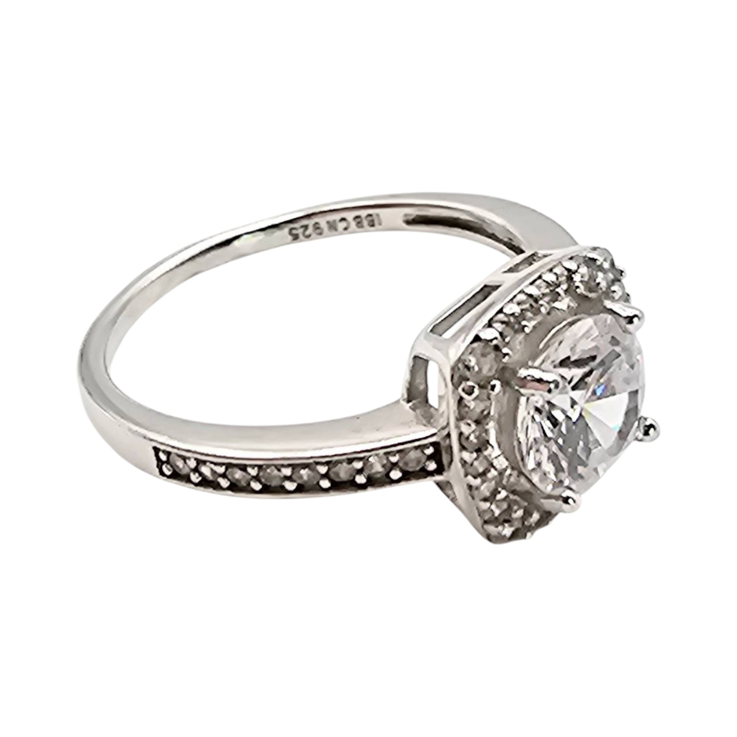 IBB sterling silver ring featuring a cubic zirconia center stone surrounded by a halo of smaller cubic zirconia accents. The ring band is also adorned with additional CZ stones. Marked 925 and IBB CZ on the inside. The ring size is 7.5, and it weighs approximately 2.8 grams.