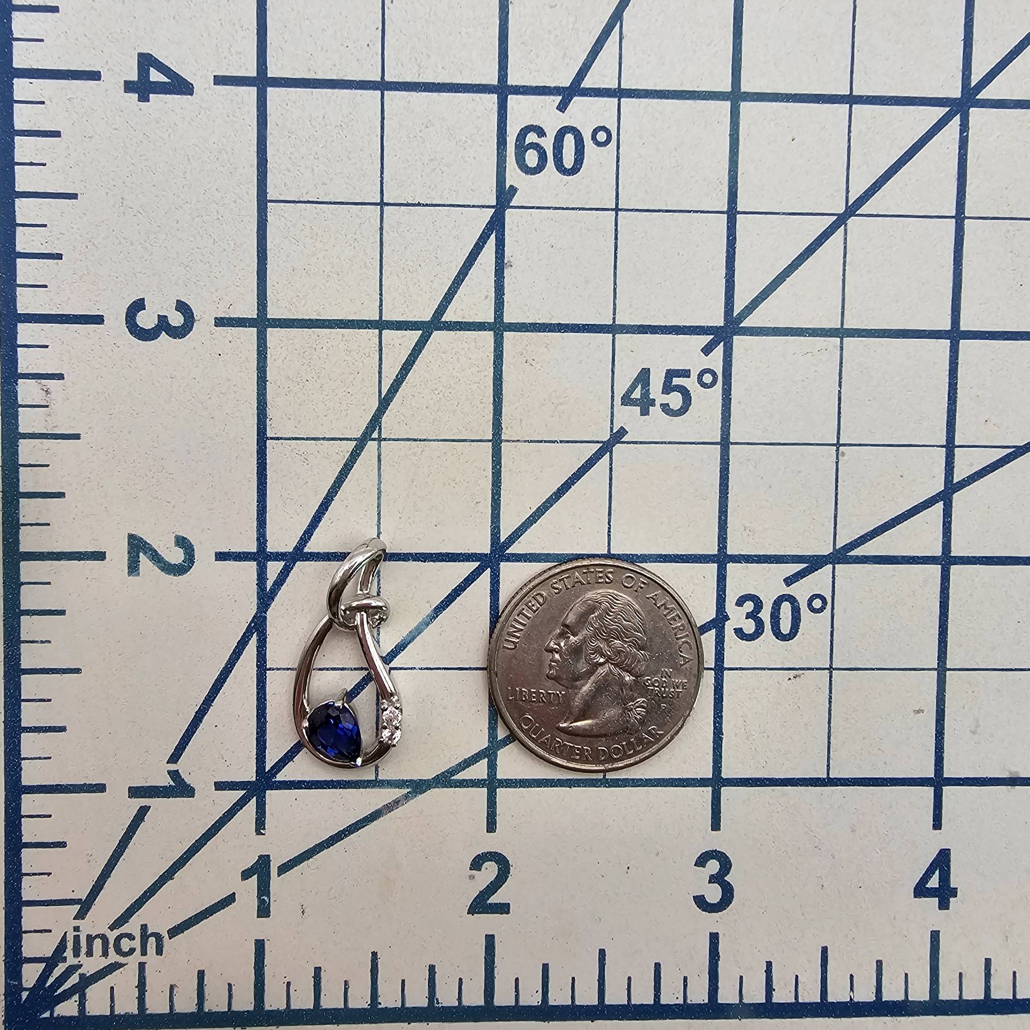 Sterling silver pendant featuring a pear-cut sapphire stone enhanced by white topaz accents. Weighing 2.9 grams, the pendant exhibits a graceful loop design. Includes a signature, but the maker’s name is not specified. Ideal for pairing with a necklace chain (not included).