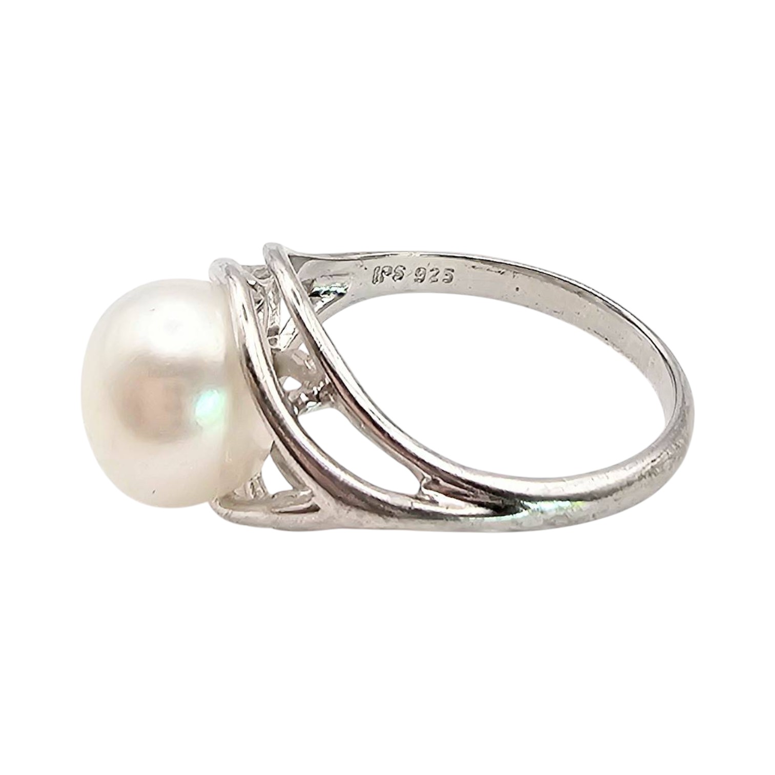 IPE Marked Sterling Silver Pearl Ring, Size 6.5, 3.2 G