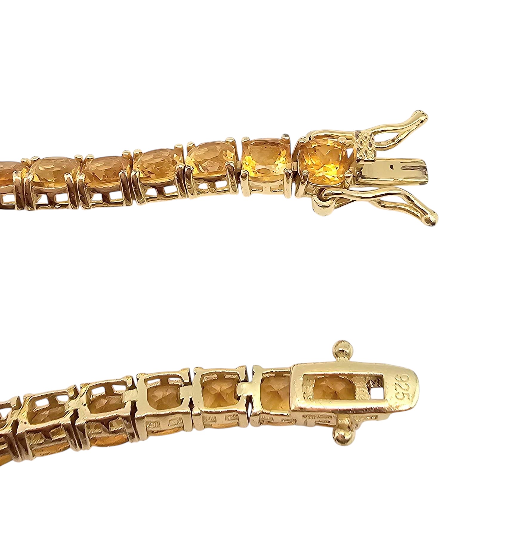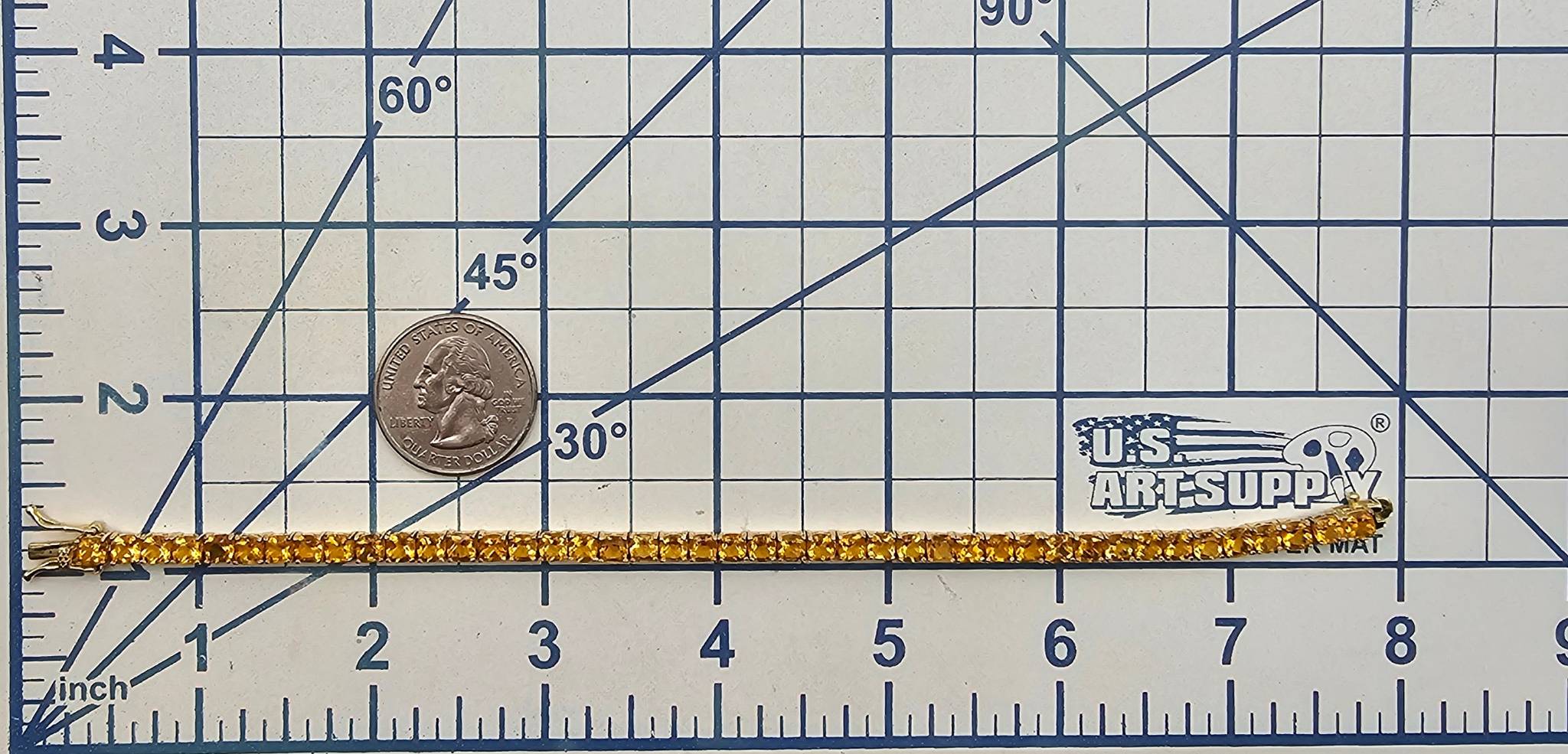 Heat treated amethyst tennis bracelet crafted from sterling silver with a gold overlay. Weighs 10.3 grams and features a secure clasp. The bracelet displays a row of beautifully set gemstone accents in a linear design. Measures approximately 7 inches. Suitable for formal or casual wear.