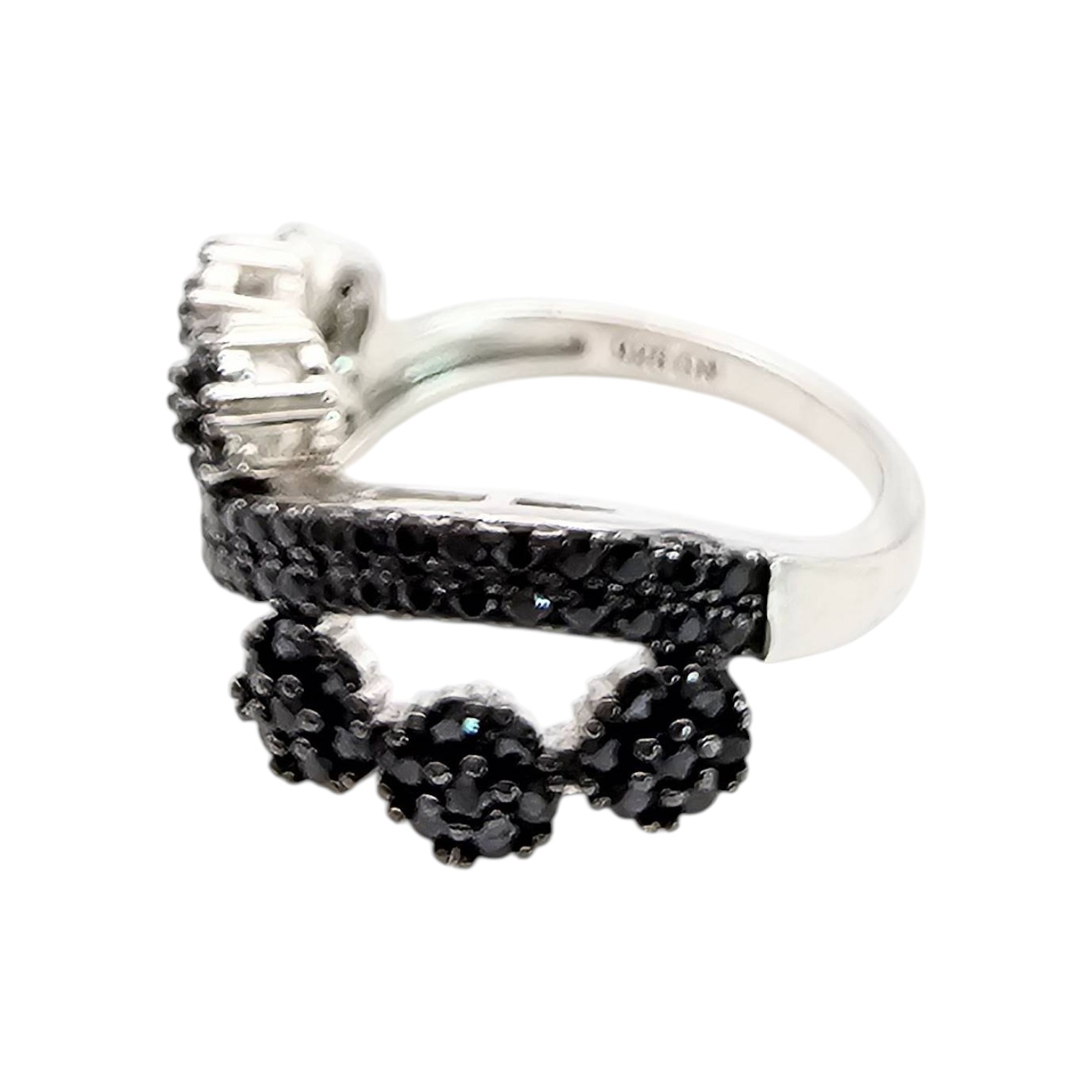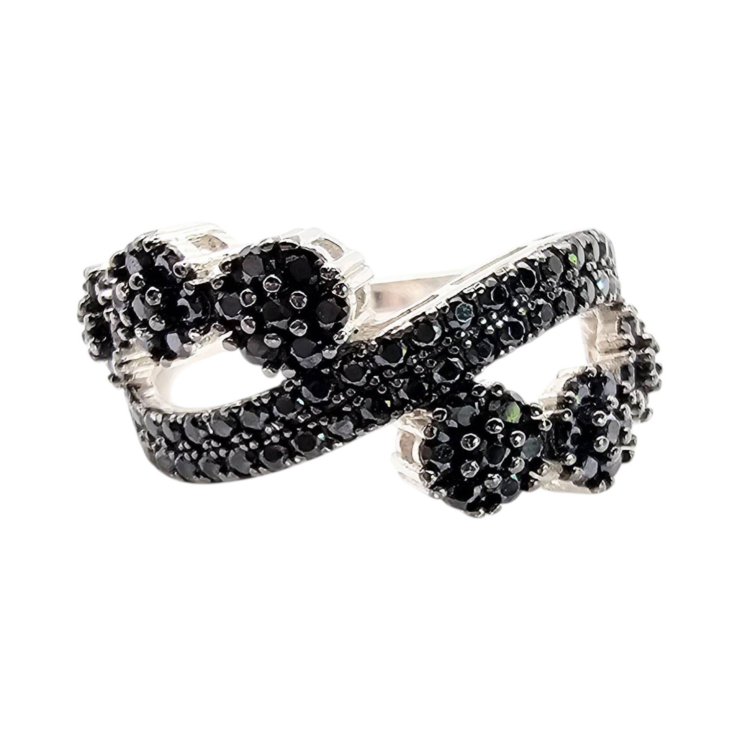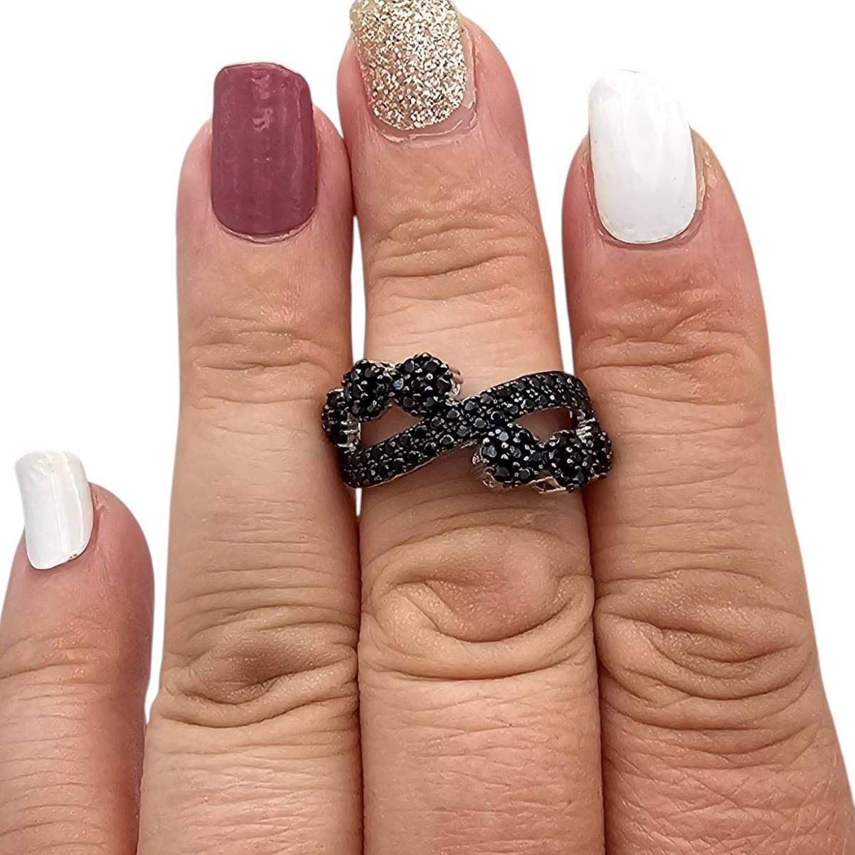 F2N sterling silver gemstone ring featuring black gemstones in an intertwined design. The ring is crafted from sterling silver, weighs 3.5 grams, and is a size 7.75. A delicate, modern piece stamped with its metal purity, ideal for jewelry collectors.