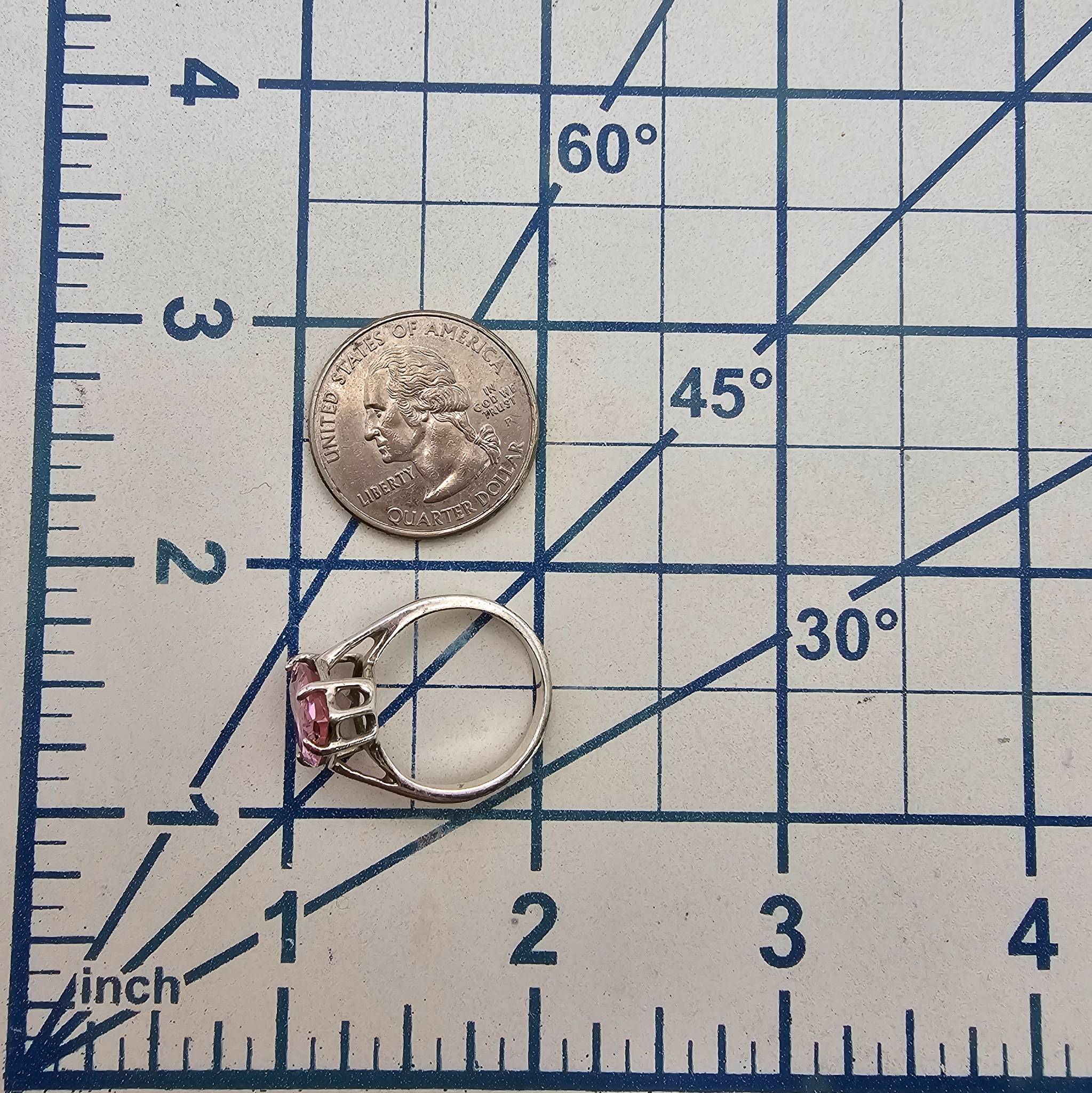 Sterling Silver  Ring with Pear-Shaped Pink Rhinestone, Size 6.75, 4.3 G