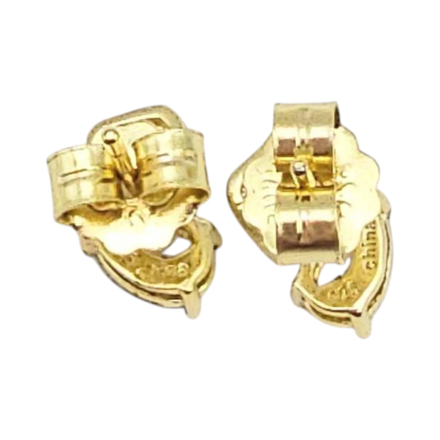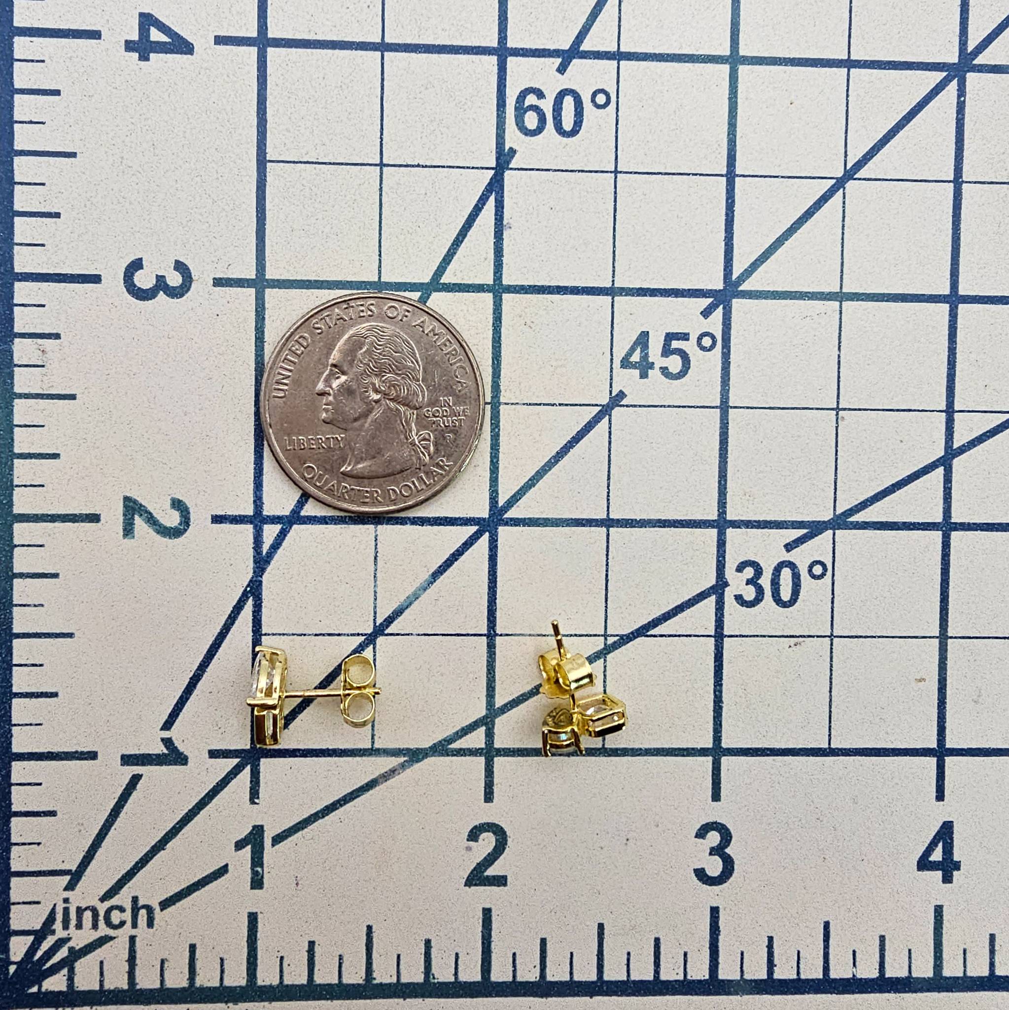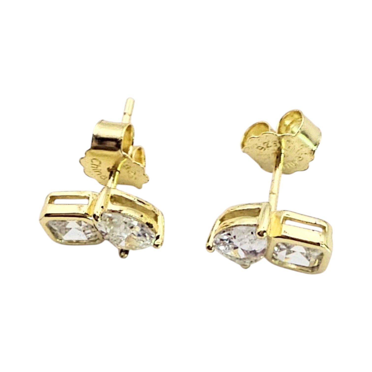 Clear stone earrings crafted in sterling silver with gold overlay. The earrings feature a unique dual-stone design, combining pear and square-shaped stones. The total weight of the earrings is 1.8 grams. Stamped “925” to indicate sterling silver composition. Includes secure push-backs for comfortable wear.