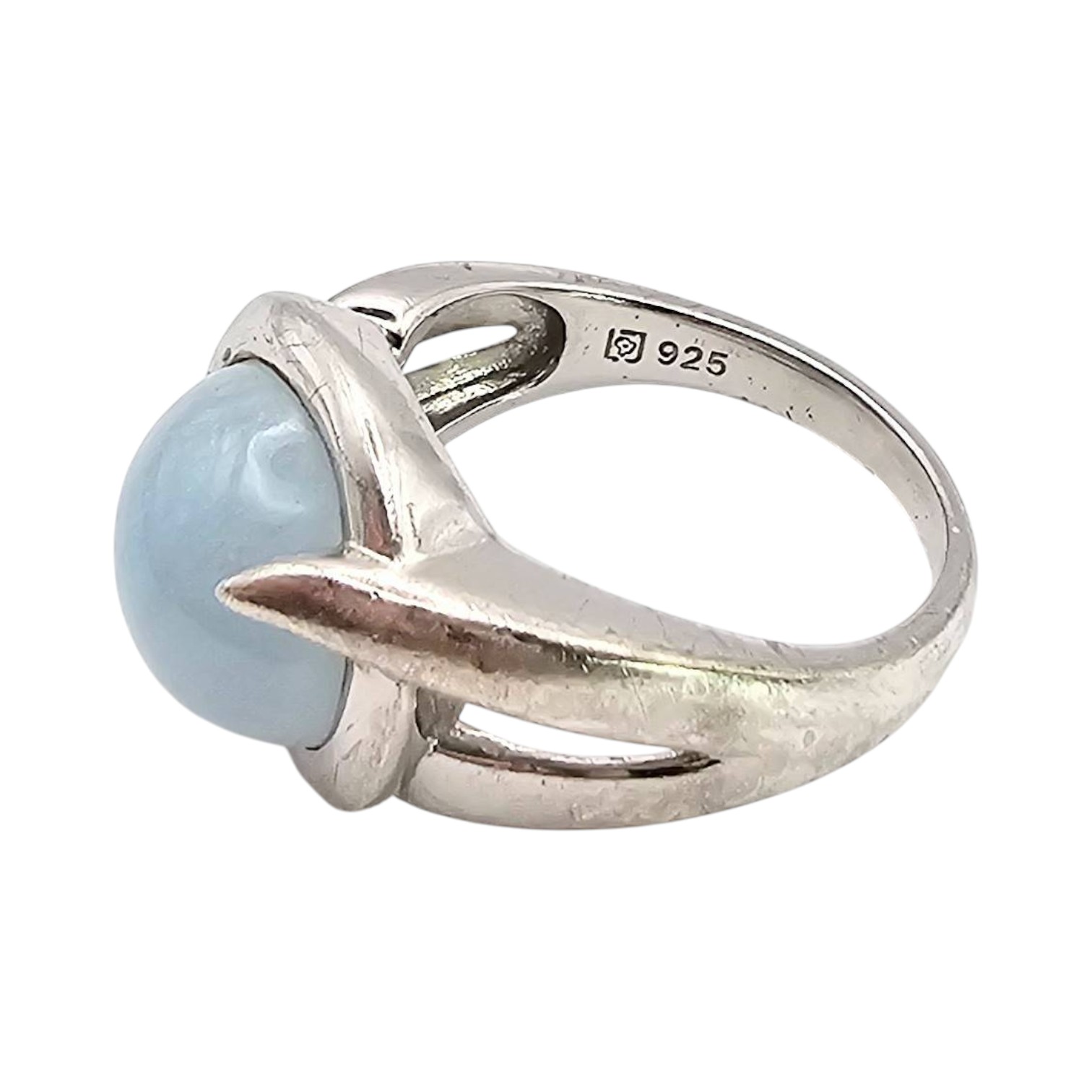 Sterling silver ring featuring a polished quartz stone set in a classic design. It weighs 6.4 grams and is a size 6.5. The quartz stone is showcased in a sturdy and elegant setting, making it a timeless piece.
