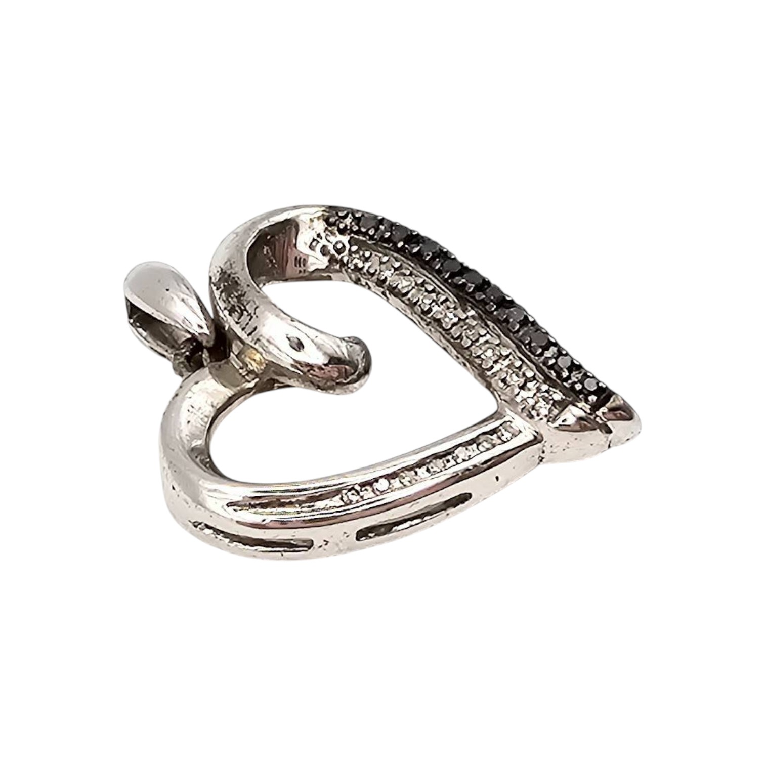 Sterling silver heart-shaped pendant adorned with diamond accents. Weighing 3 grams, it features an elegant open design with contrasting polished and diamond-accented sections. Suitable for a chain of your choice (not included).