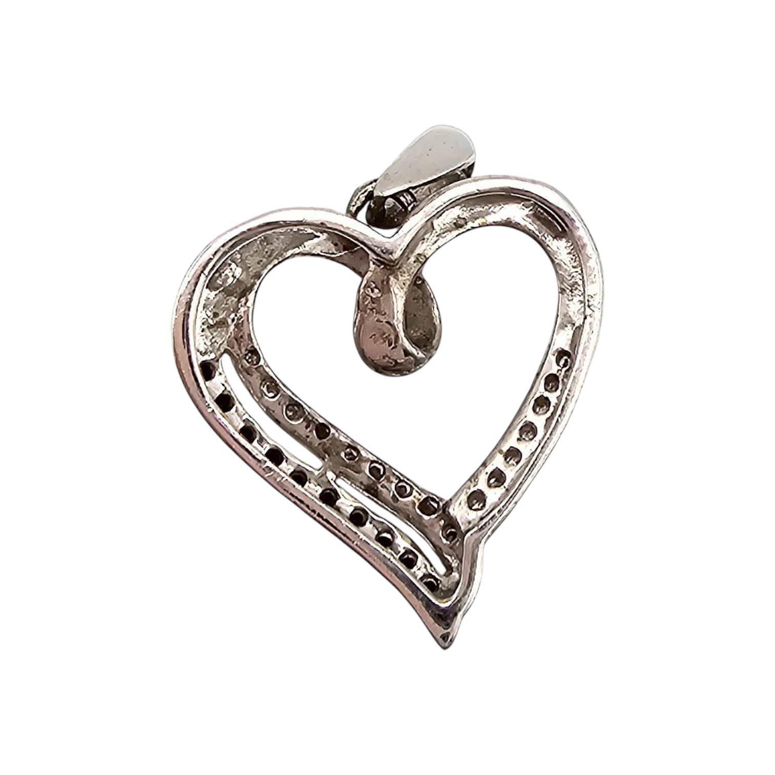 Sterling Silver Heart Pendant with Diamond Accents, 3 G