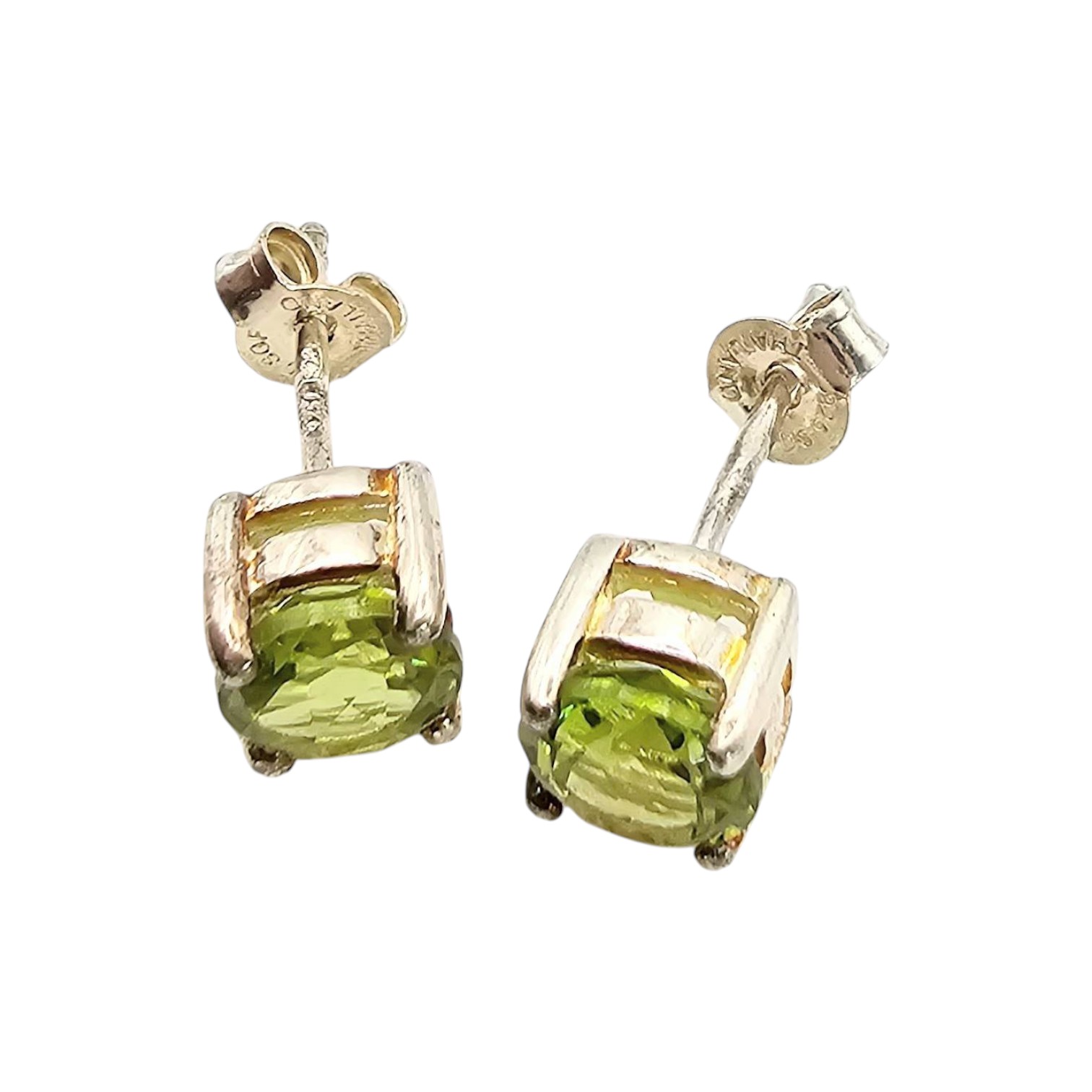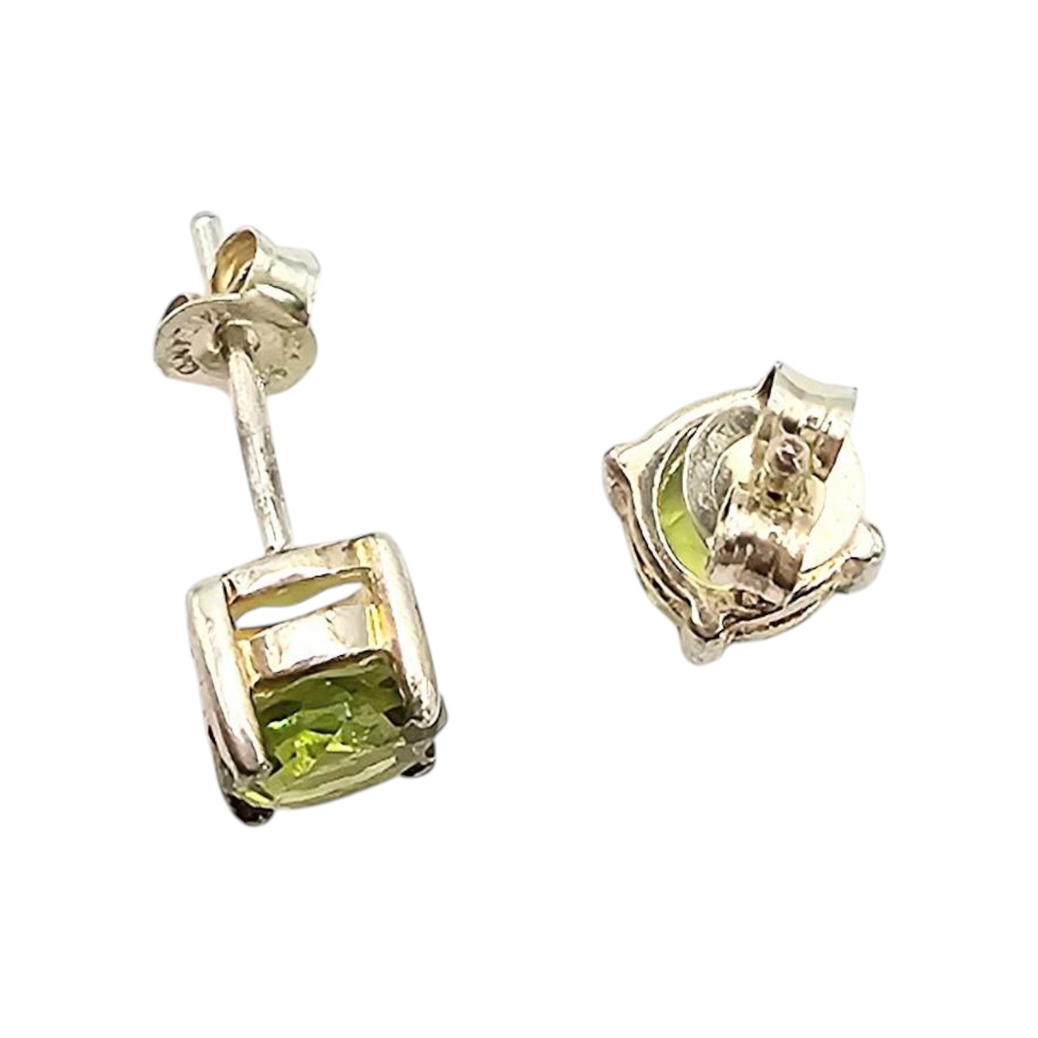 Stunning peridot earrings crafted in sterling silver. The earrings feature a vibrant green peridot gemstone set in a secure prong-style mount. Weighing approximately 1.9 grams, they reflect quality and elegance. Suitable for pierced ears, these earrings include sturdy backing for secure wear.