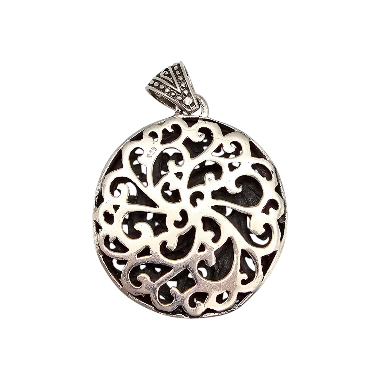 Sterling Silver Round Pendant With Intricate Design, 6.7 G