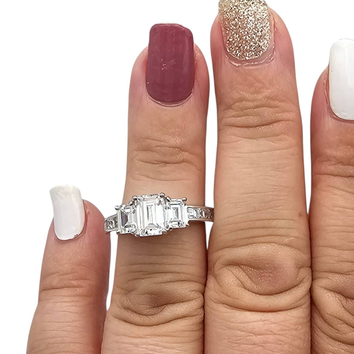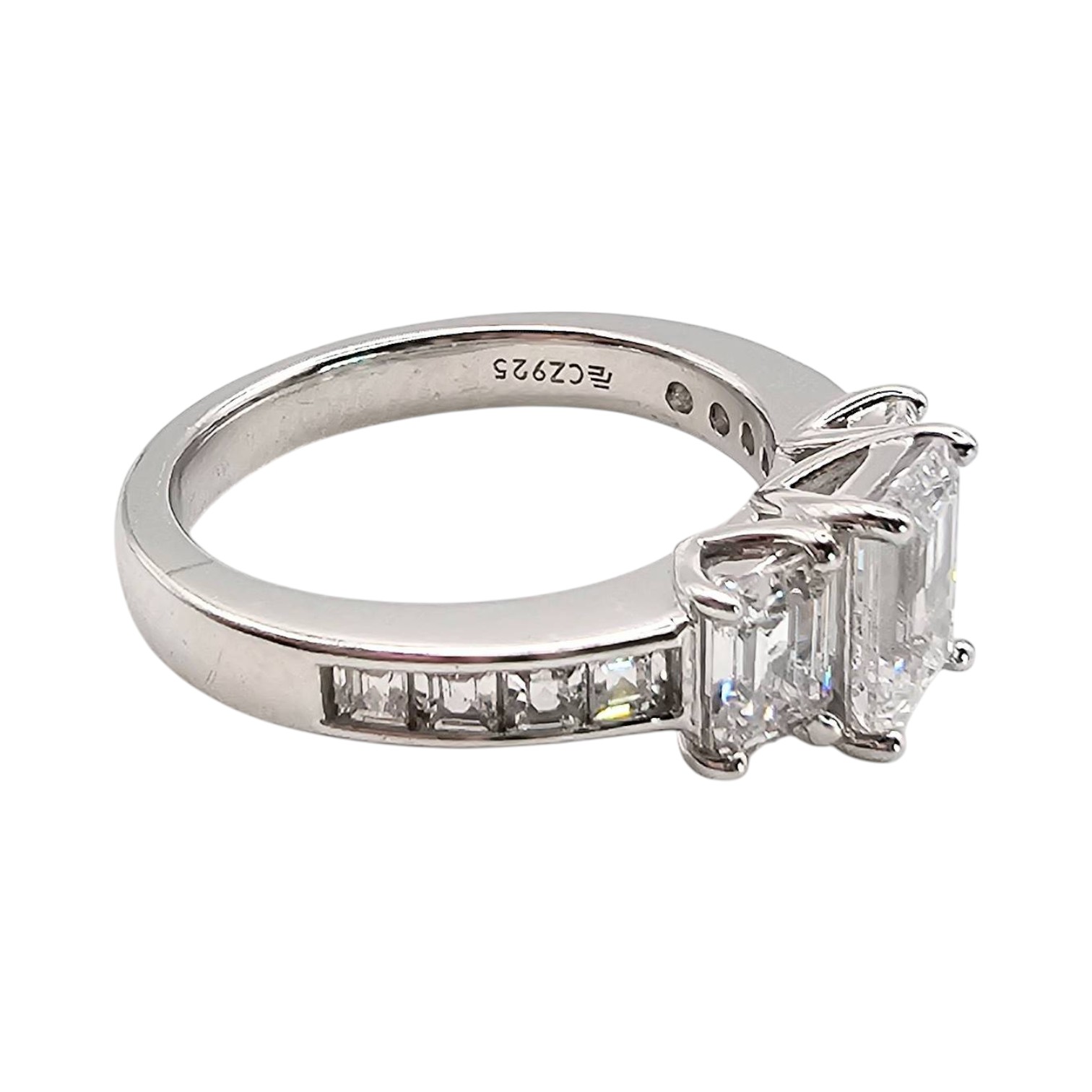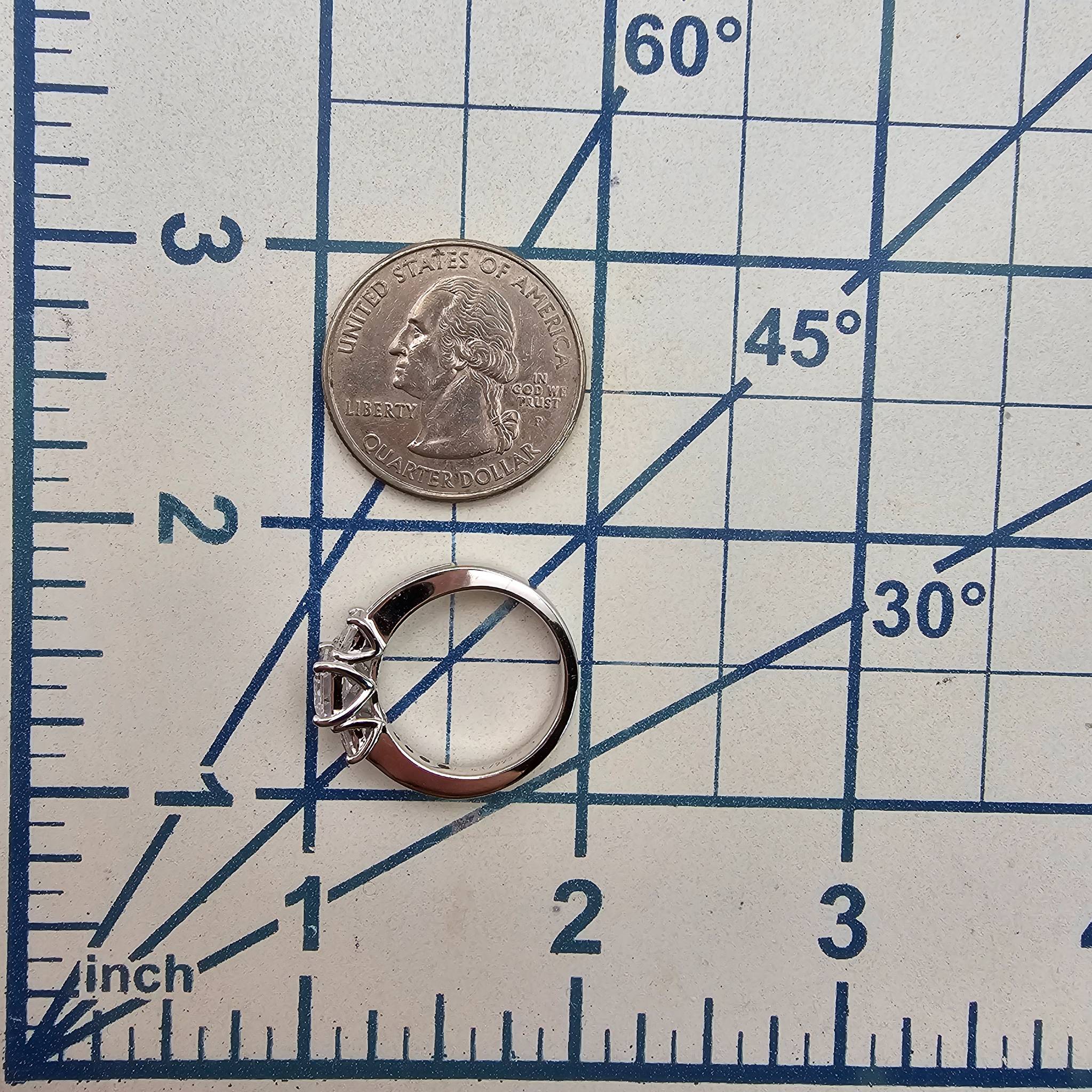 Sterling silver ring featuring cubic zirconia stones, including an emerald-cut center stone and channel-set CZ accents along the band. The ring is marked ‘FE CZ 925’ on the inner band, indicating its sterling silver construction. It is a size 5.75 and weighs approximately 4.5 grams. The design combines a three-stone style with a polished finish.