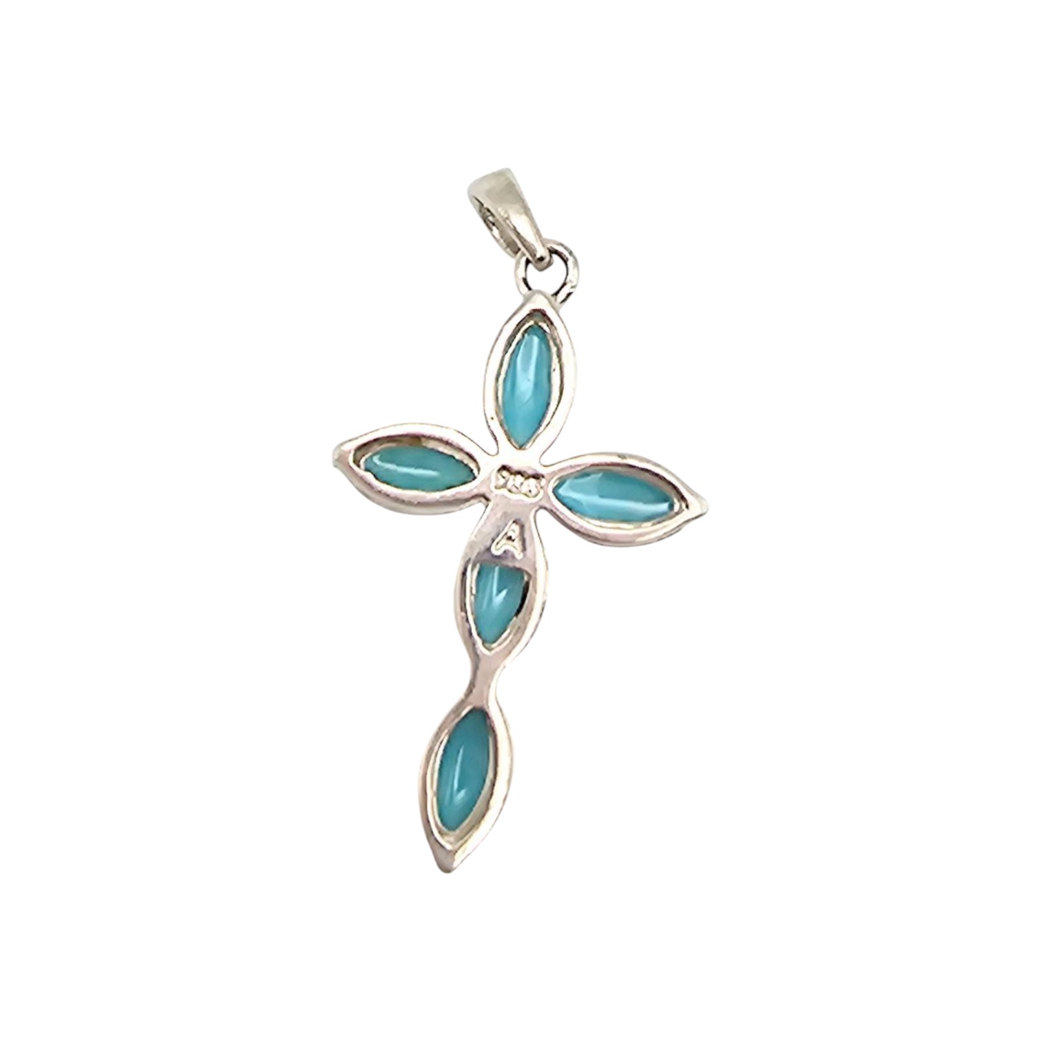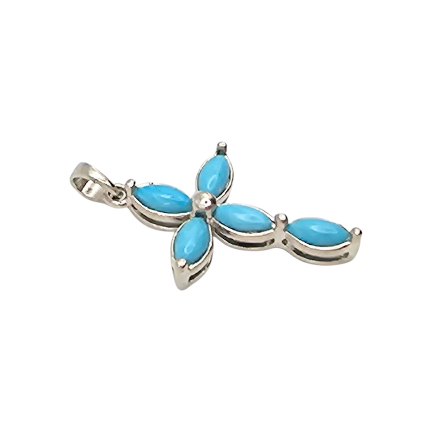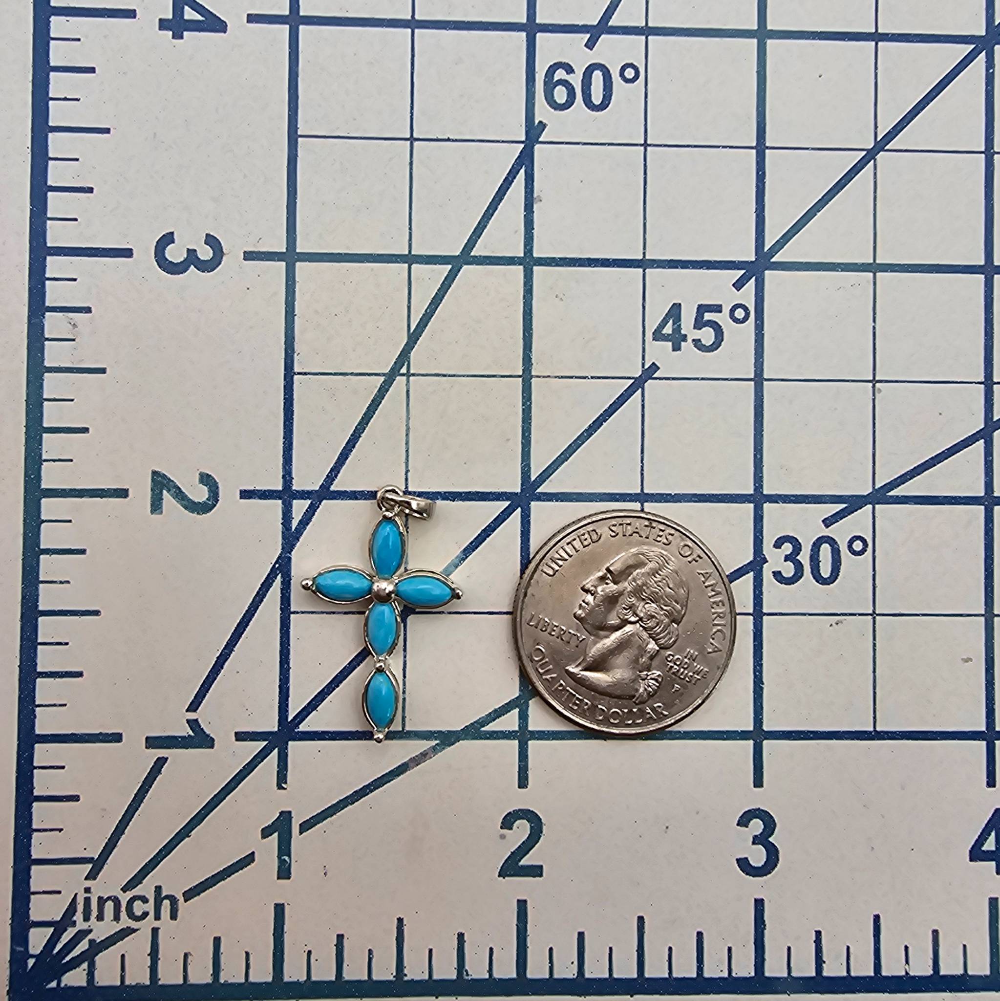 Sterling Silver Turquoise Cross Pendant 1.7 G