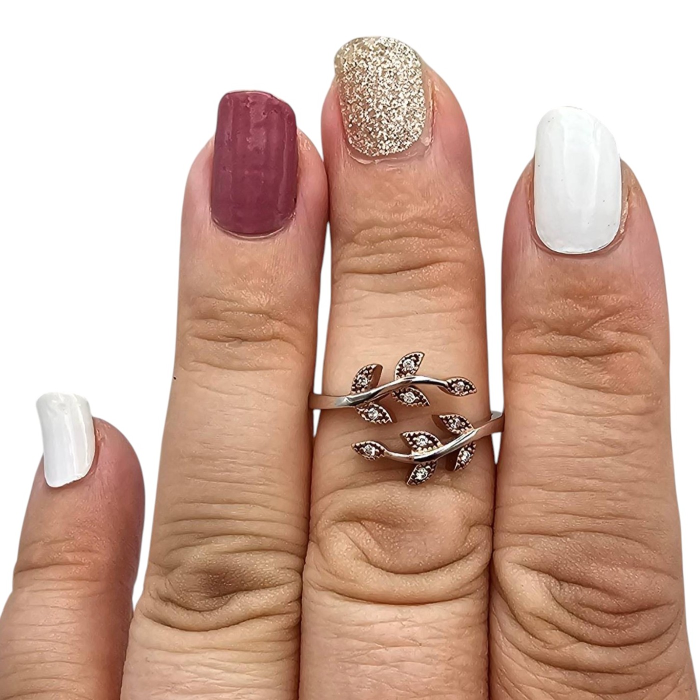 IBB Sterling Silver and Rose Gold-Tone Leaf Ring, Size 7.75