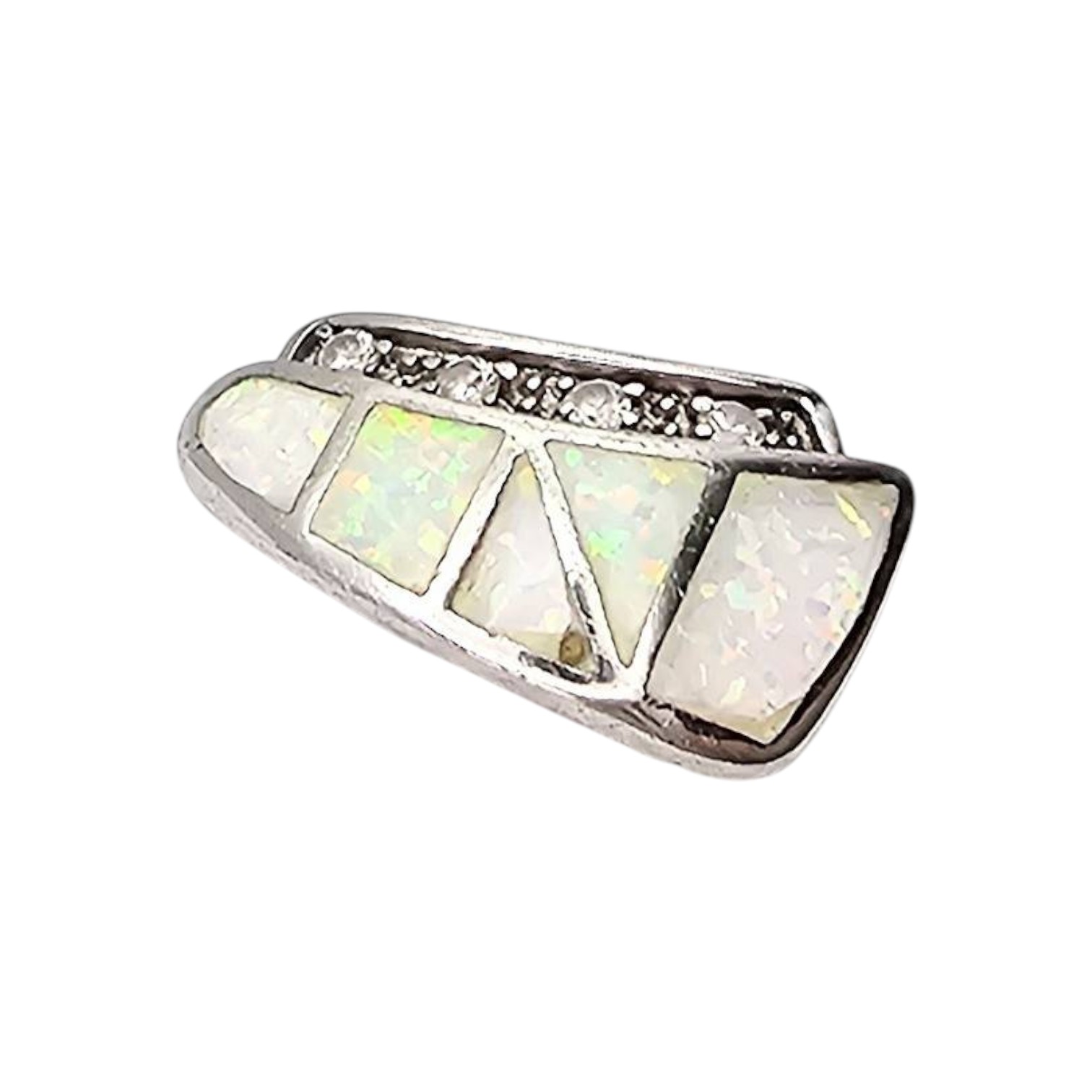 Sterling Silver Pendant With Opal and Clear Stone Accents