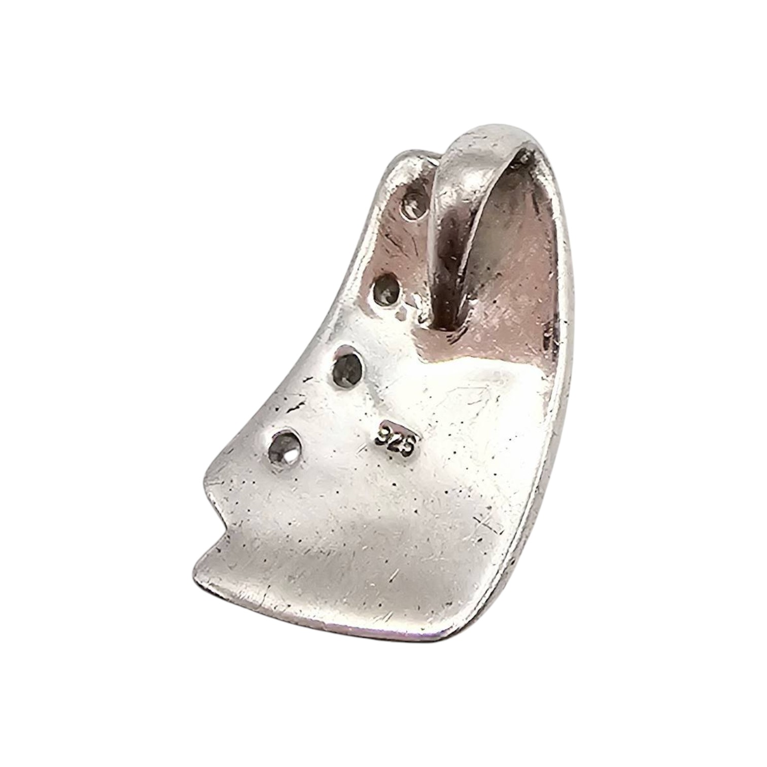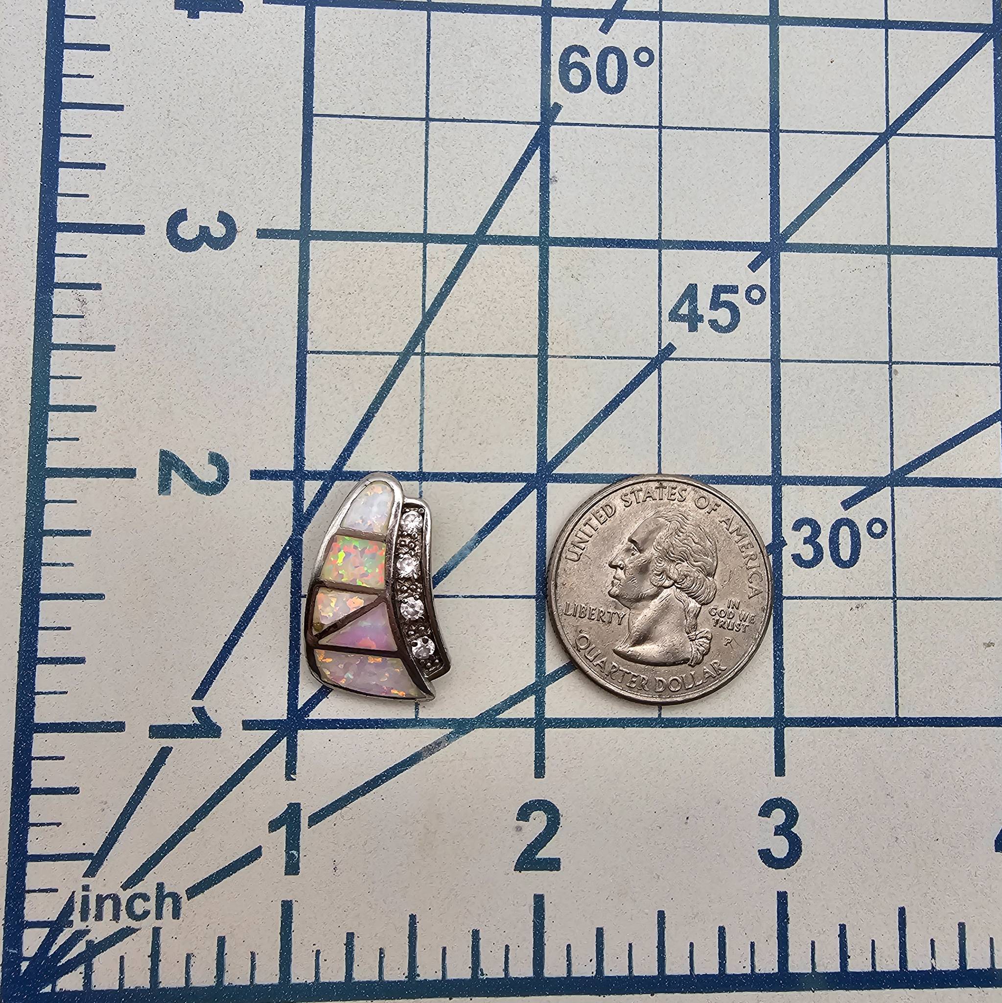 Sterling silver pendant featuring inlaid opal sections with multicolor iridescence. Embellished by a row of clear stone accents. Weighs approximately 4.4 grams. The piece measures slightly over 1 inch long, as shown near a scaled ruler for reference. Good condition with minor surface wear expected for the material.