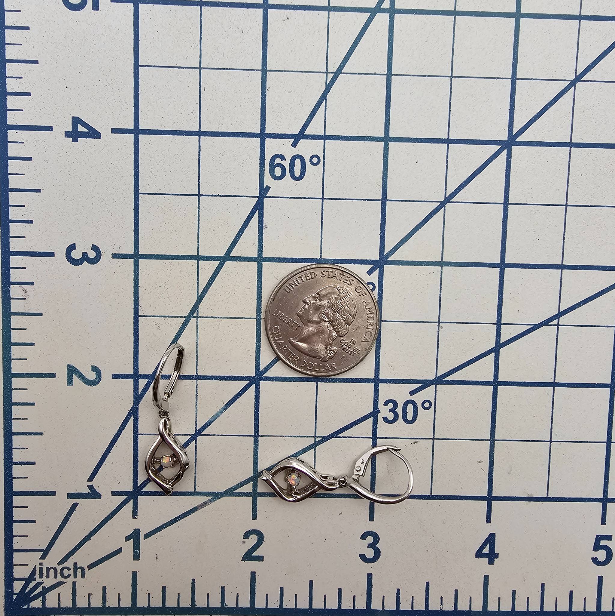 Drop earrings crafted in sterling silver featuring opal gemstones. Earrings weigh 3.5 grams in total. Design includes lever-back closures for secure wear. Suitable for casual or formal occasions. Coin in image is for scale and not included.