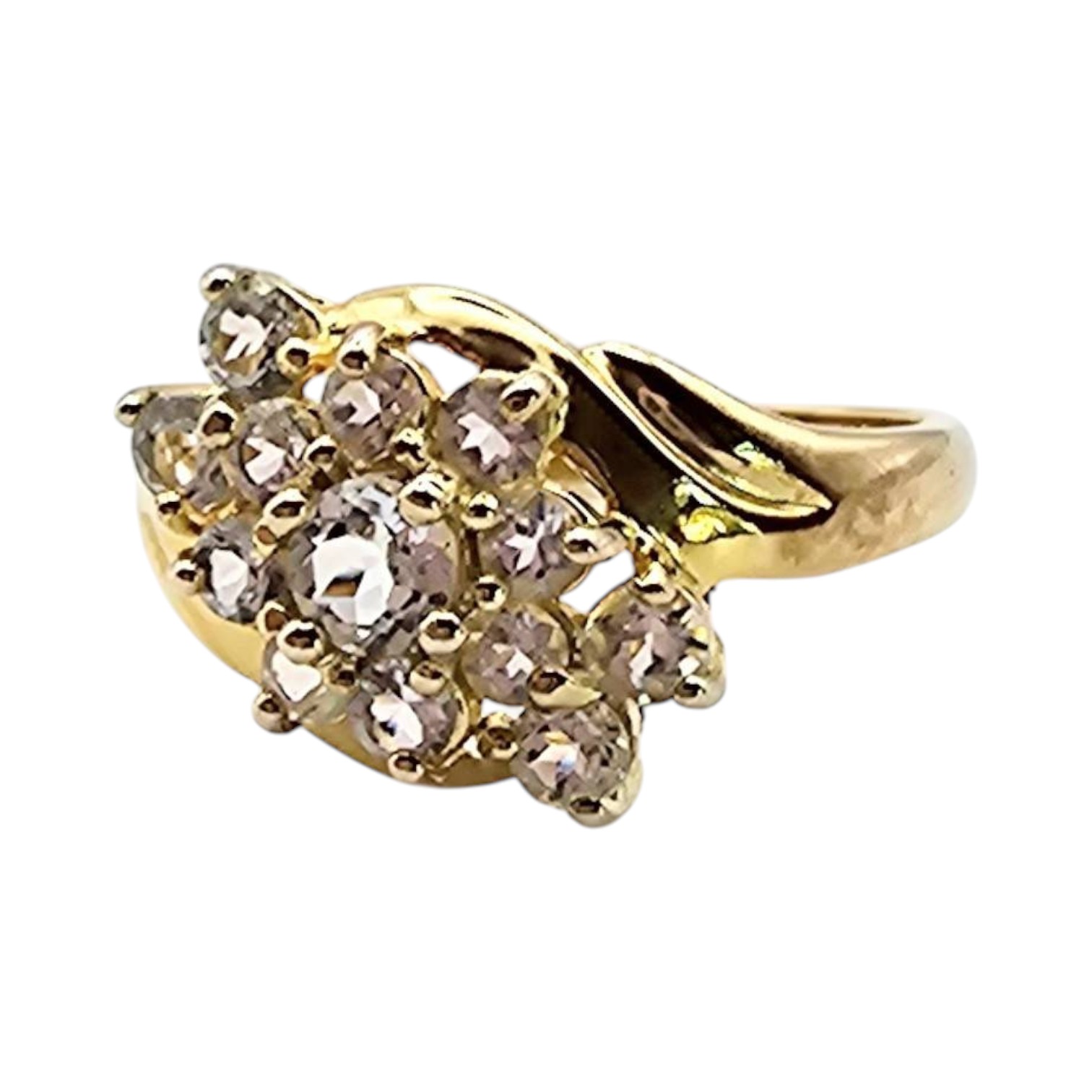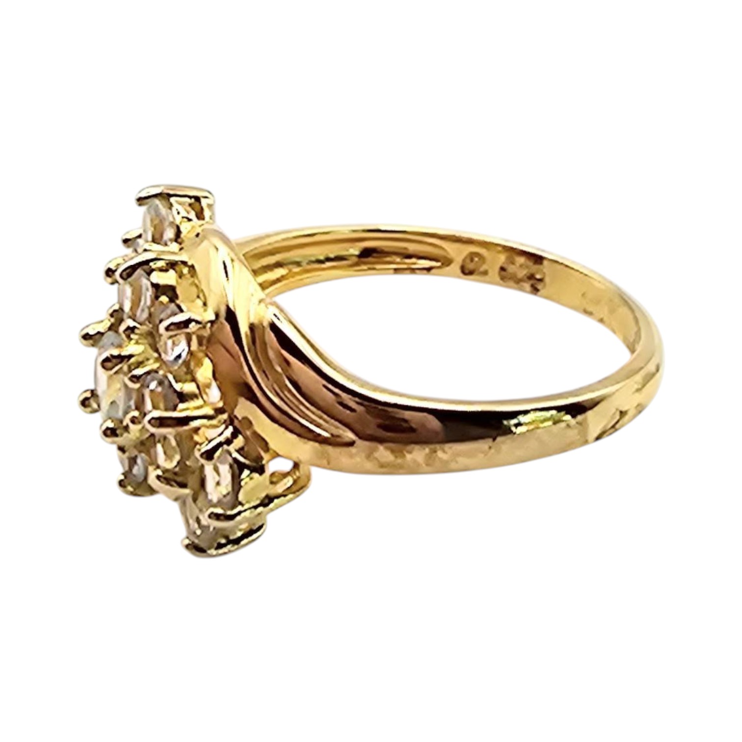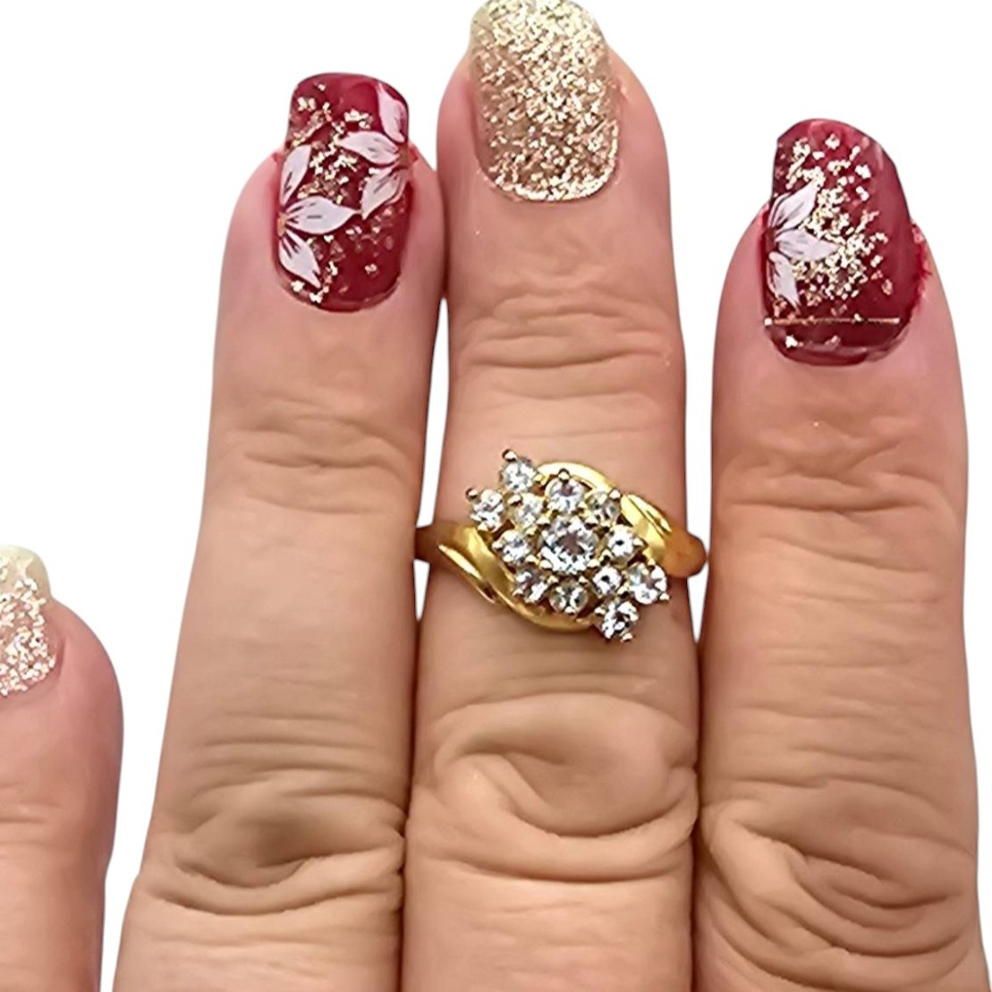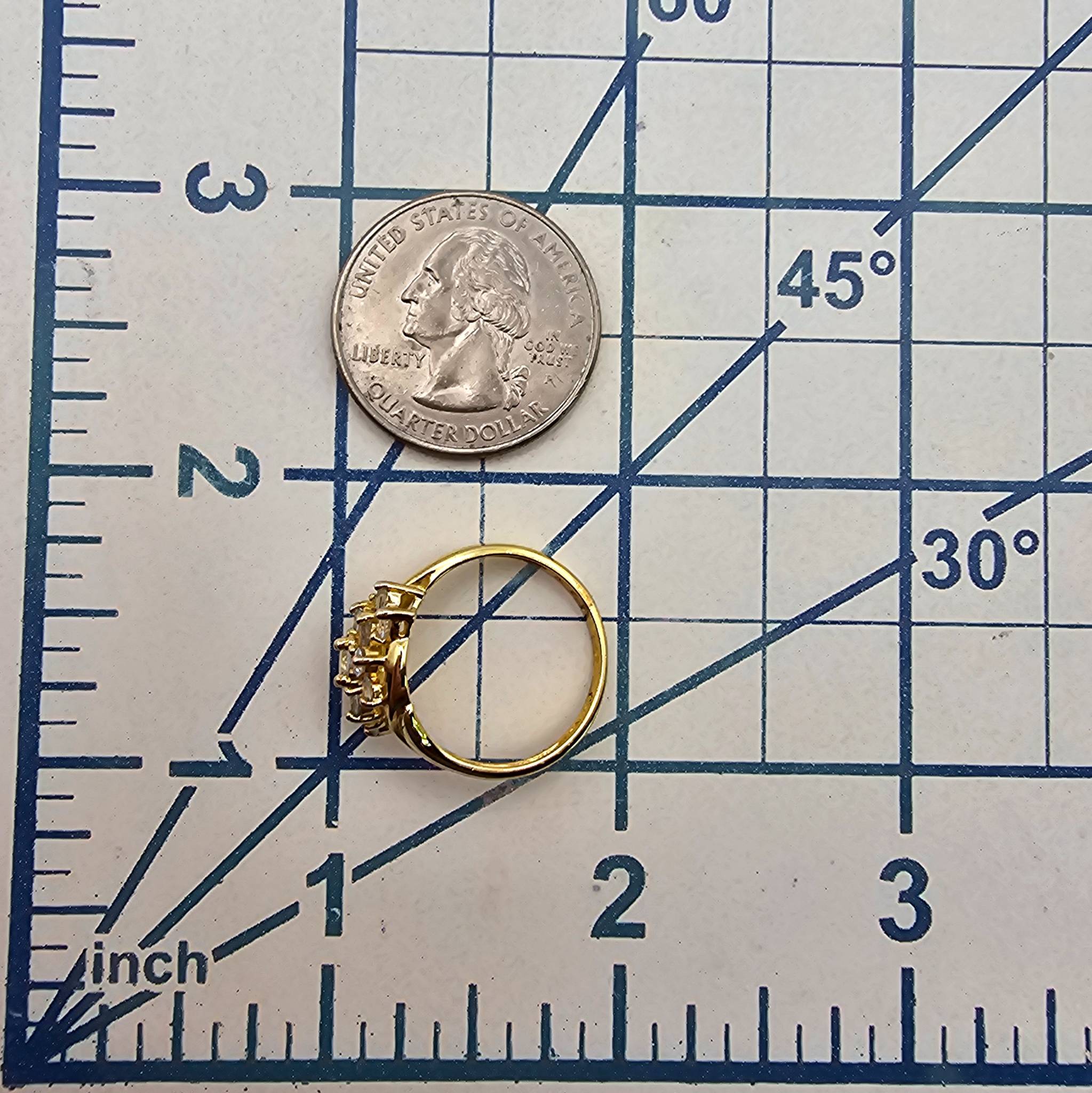 Ross-Simons topaz ring featuring white topaz stones set in a gold Over sterling silver band. The ring is a size 6.75 and showcases a floral-inspired cluster of sparkling white topaz. The gold plating gives an elegant finish to the sterling silver foundation. An eye-catching accessory in excellent overall condition.