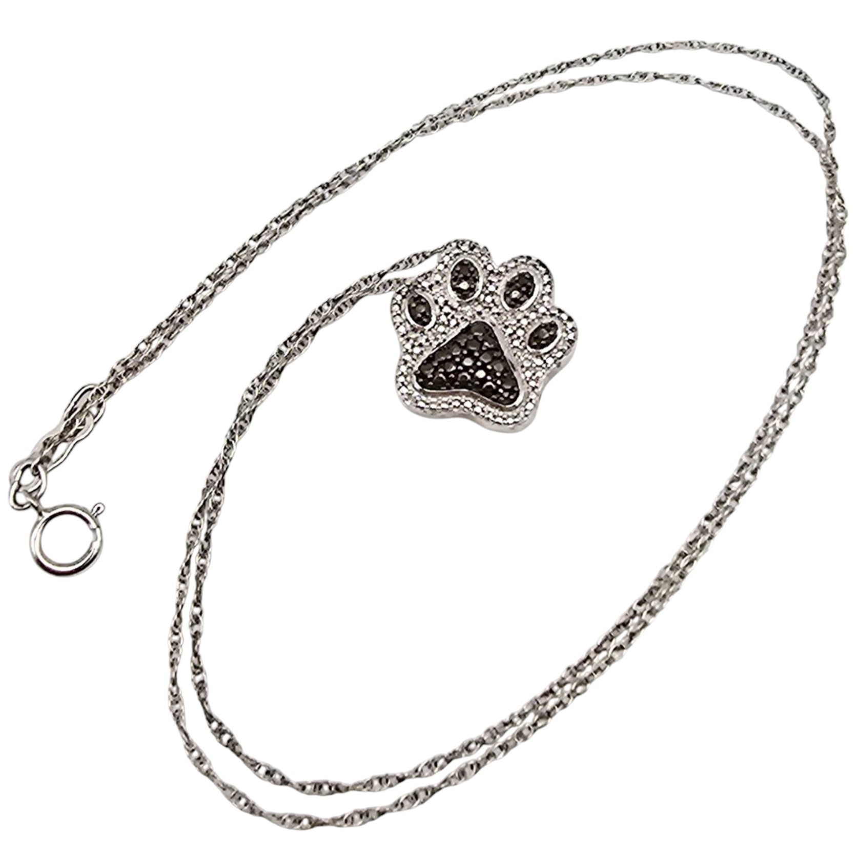 JWBR Sterling Silver Diamond Paw Print Necklace, 3.1 G
