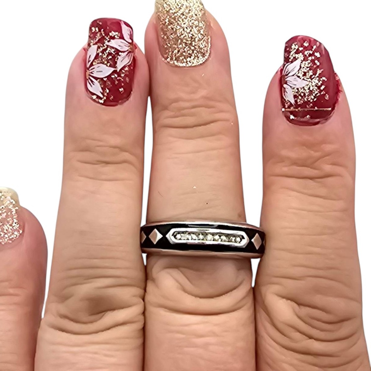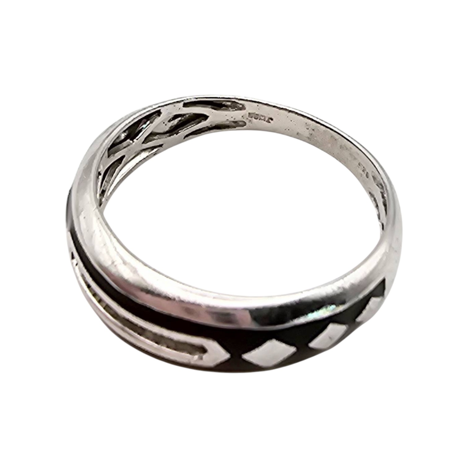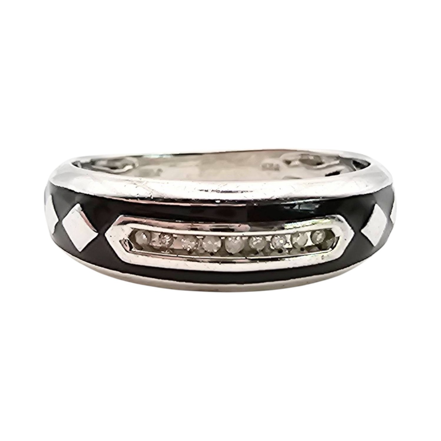 JWBR sterling silver ring featuring diamond accents with enamel detailing. The ring is marked 925 for sterling silver, has a size of 9.75, and a weight of 3.7 grams. The design includes a combination of black enamel accents and brilliant-cut diamonds set within the band.