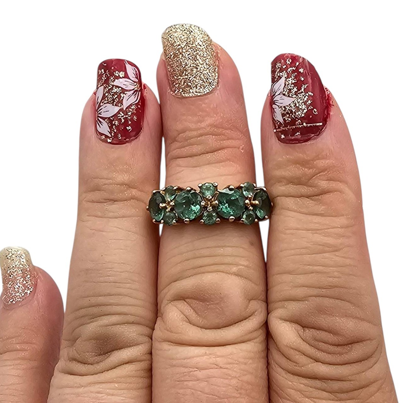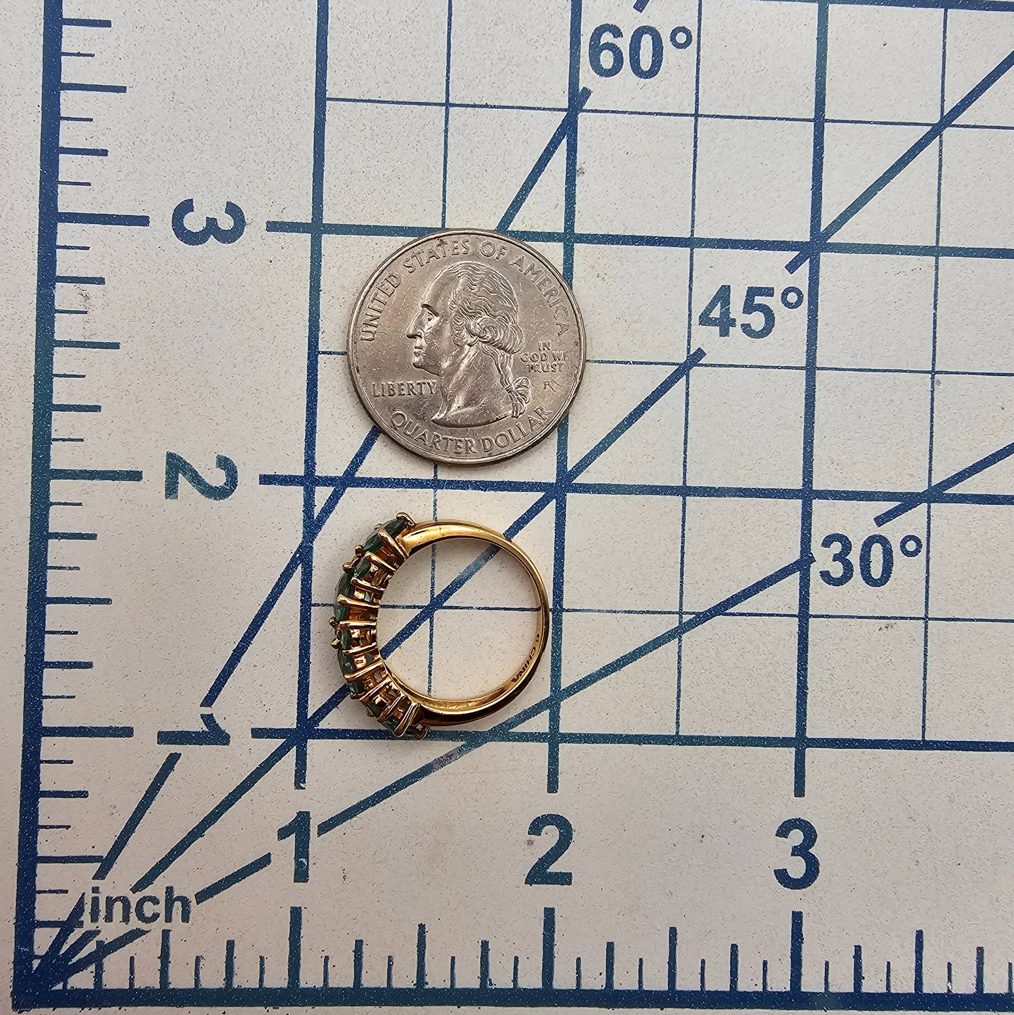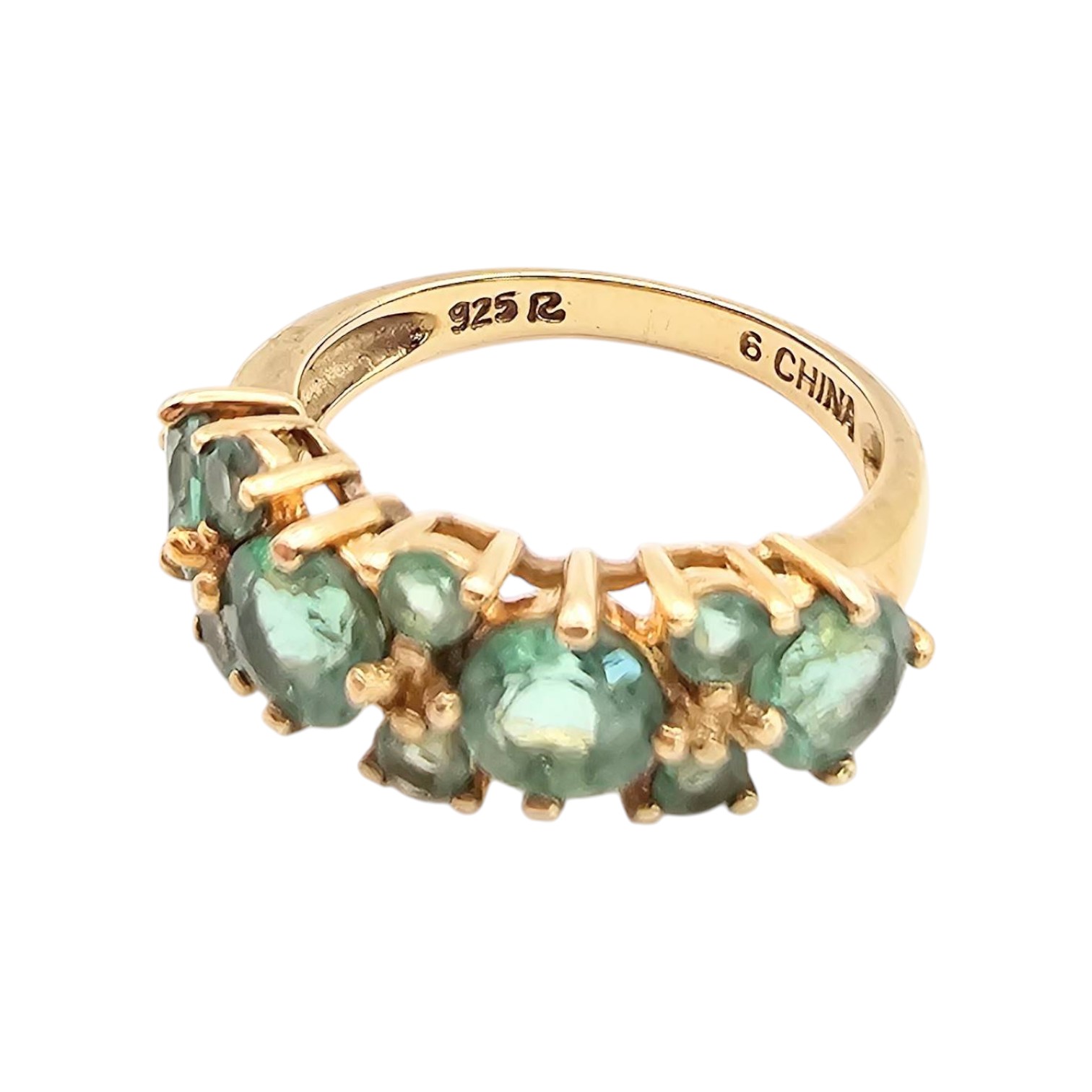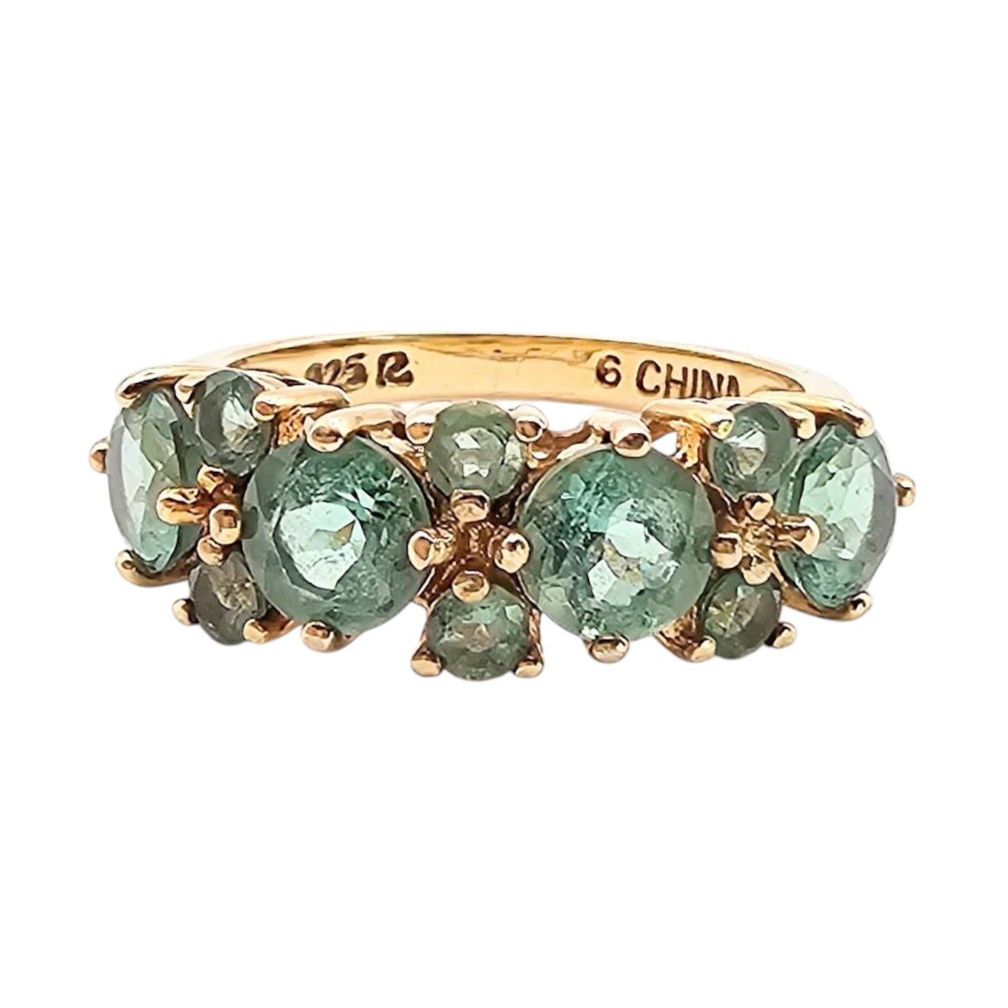 Ross-Simons gold over sterling silver ring featuring a cluster of faceted green tourmaline gemstones. The ring size is 5.75, and it weighs approximately 2.8 grams. Marked ‘925’ inside the band. A beautifully crafted piece combining high-quality sterling silver with gold overlay.