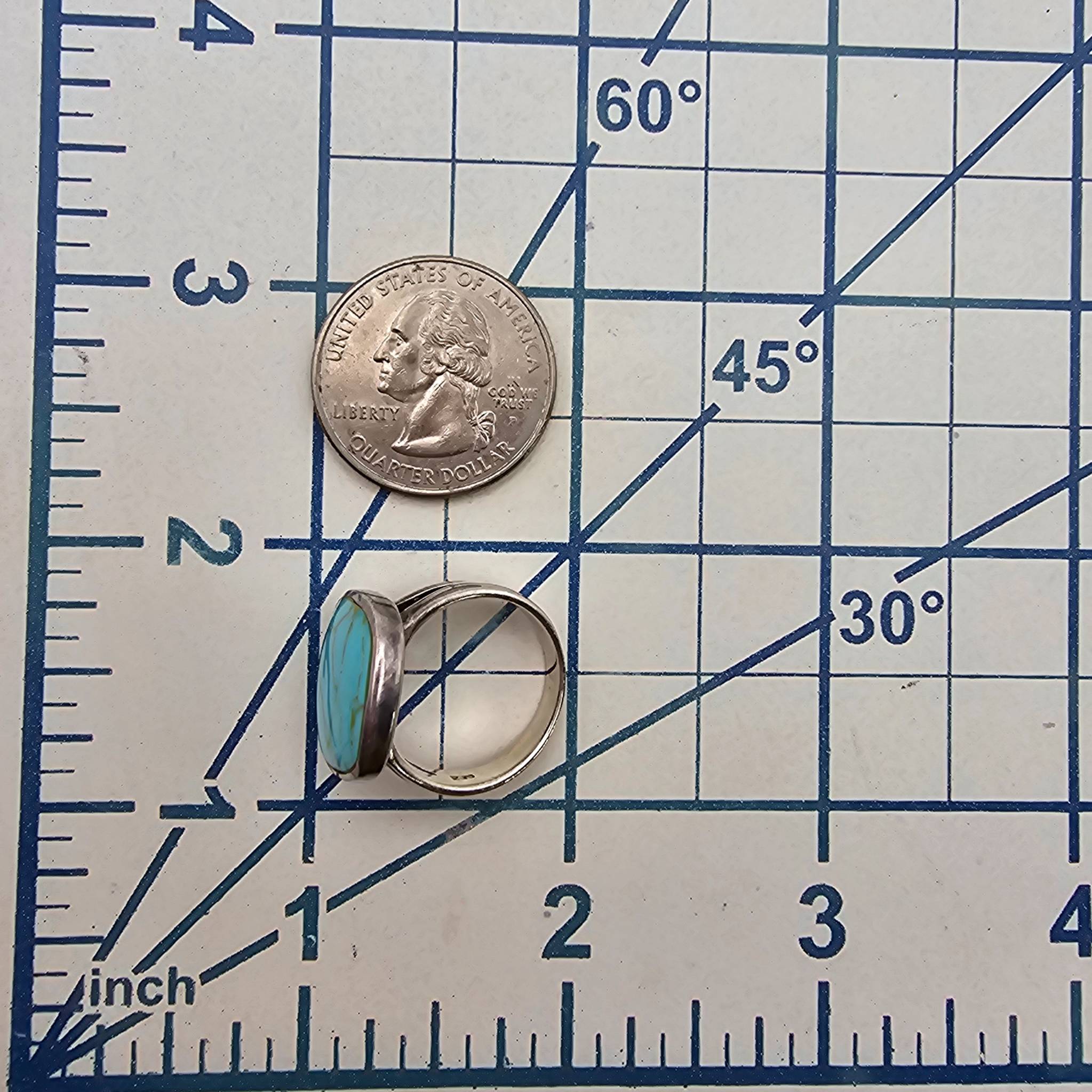Sterling silver ring marked CFS, featuring an oval turquoise stone with natural veining. Sized at 6.25 and weighing approximately 6.1 grams. The turquoise has vibrant coloring set in a smooth silver bezel. Excellent condition with minimal wear.