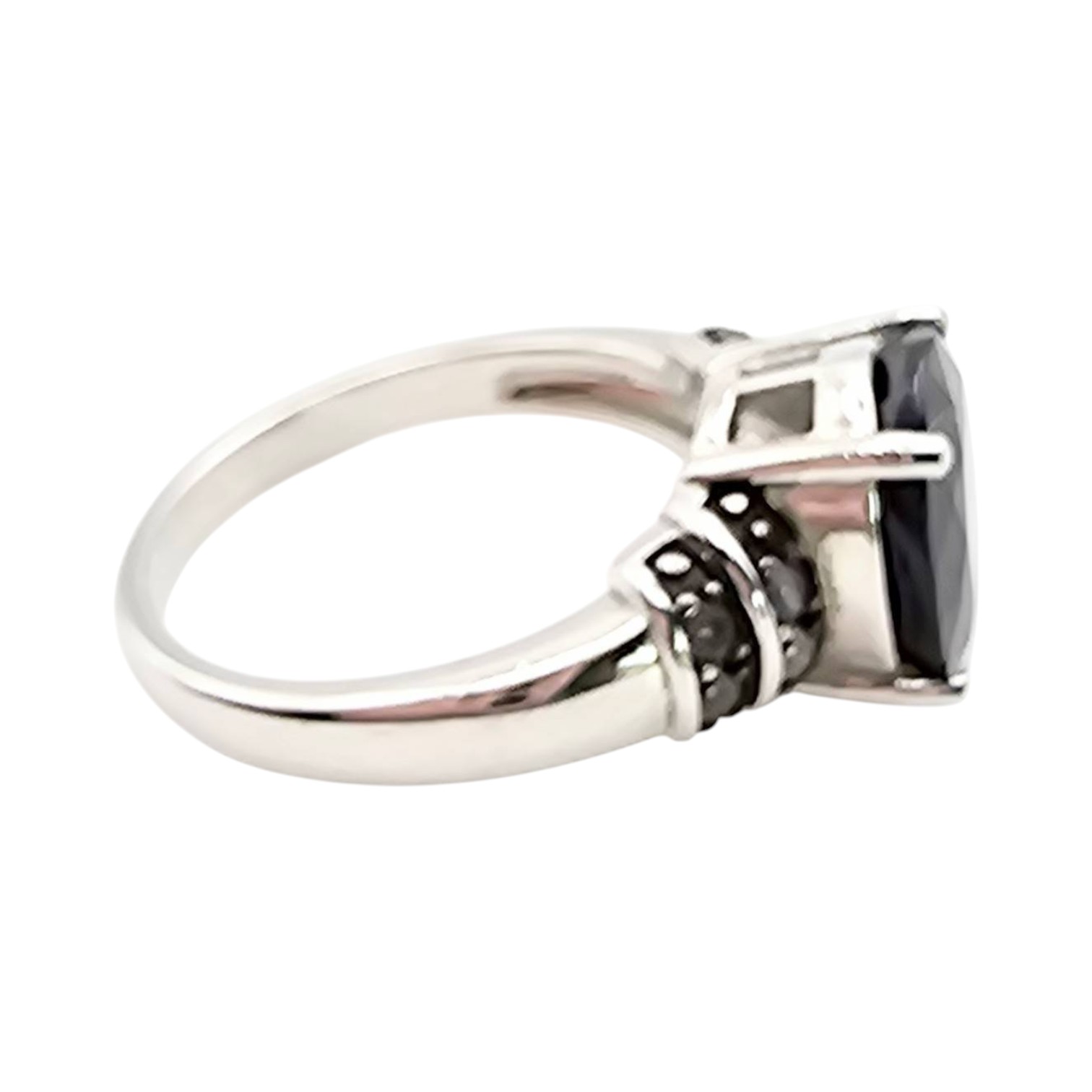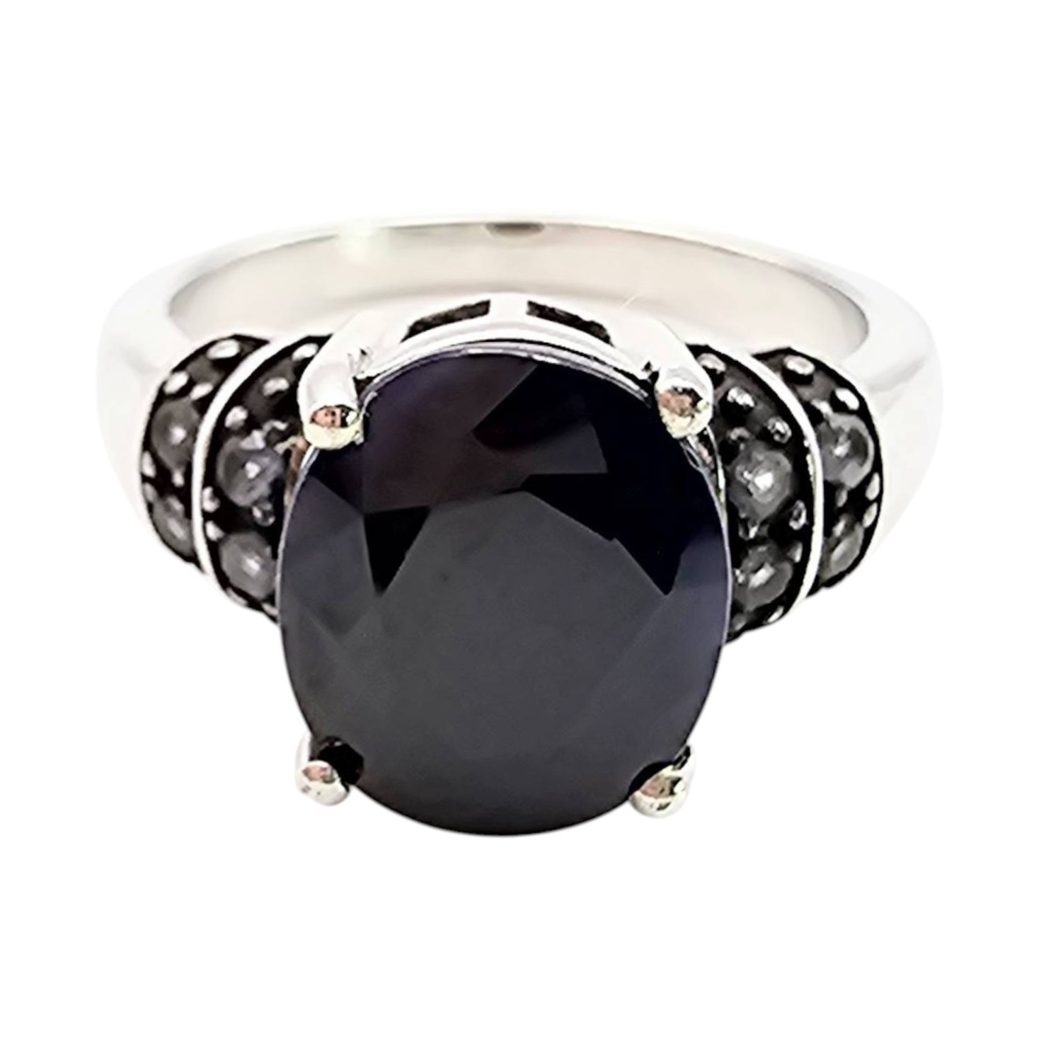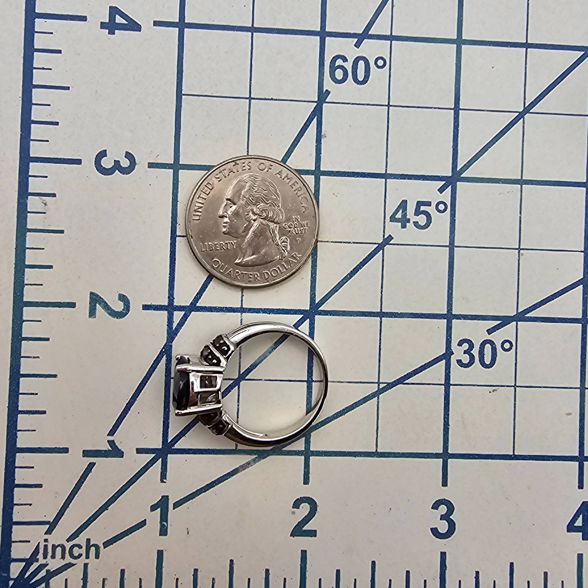 BBJ ring crafted from sterling silver featuring a lab-created sapphire as the centerpiece. Designed in size 7.25, this ring weighs 5.9 grams. The lab sapphire is faceted and set with decorative accents on the band for added detail.