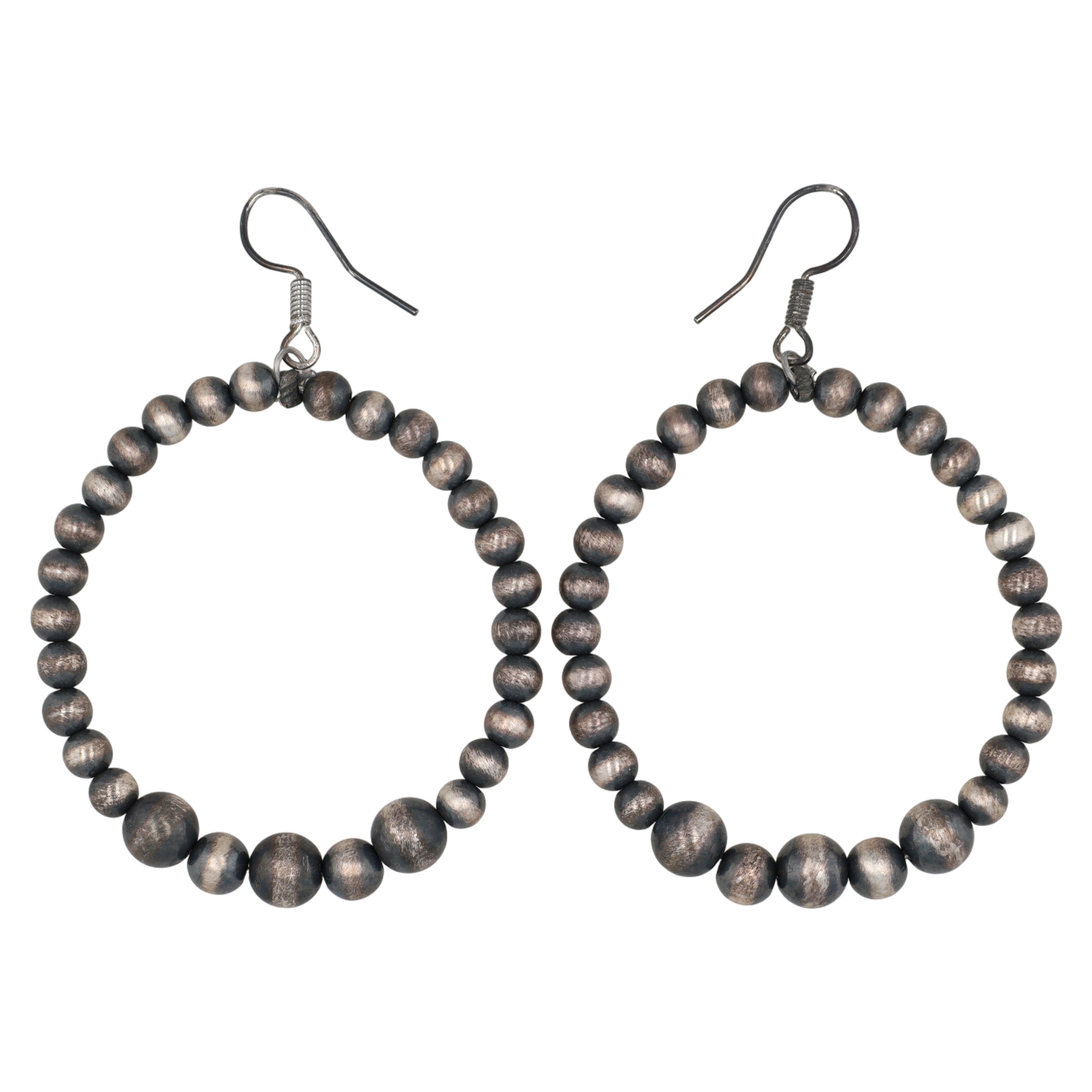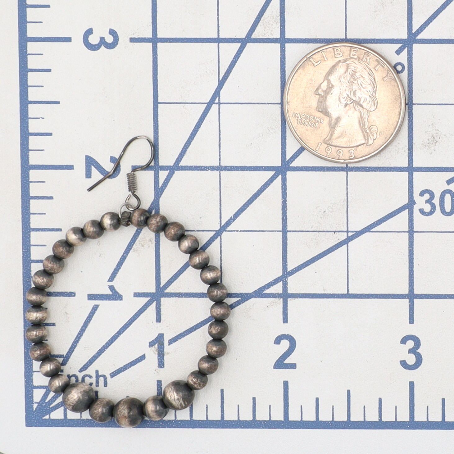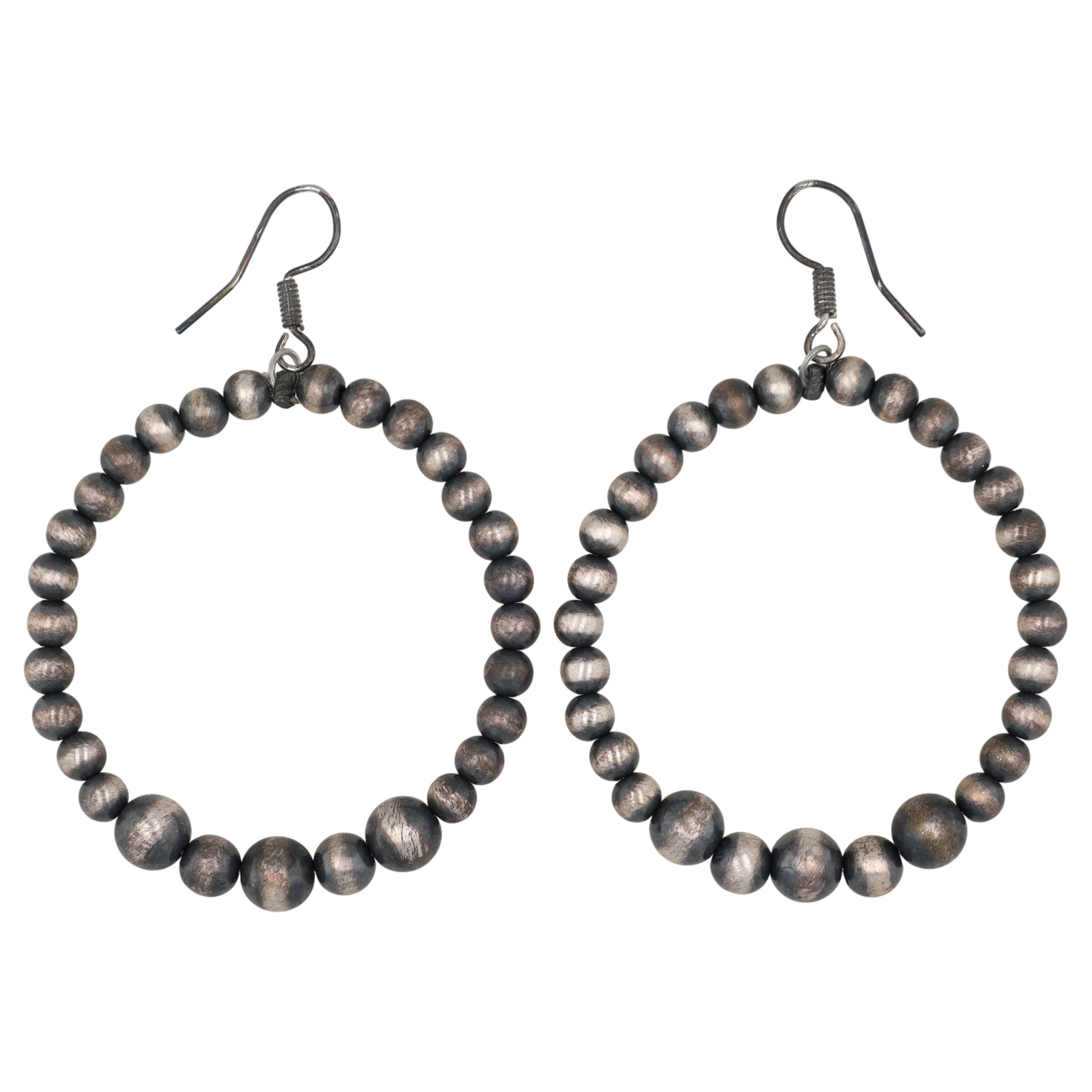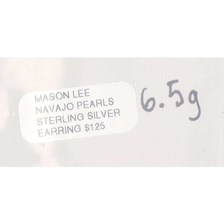 A pair of Mason Lee Navajo sterling silver hoop earrings, weighing 6.5g, with each hoop measuring approximately 1.5 inches in diameter.