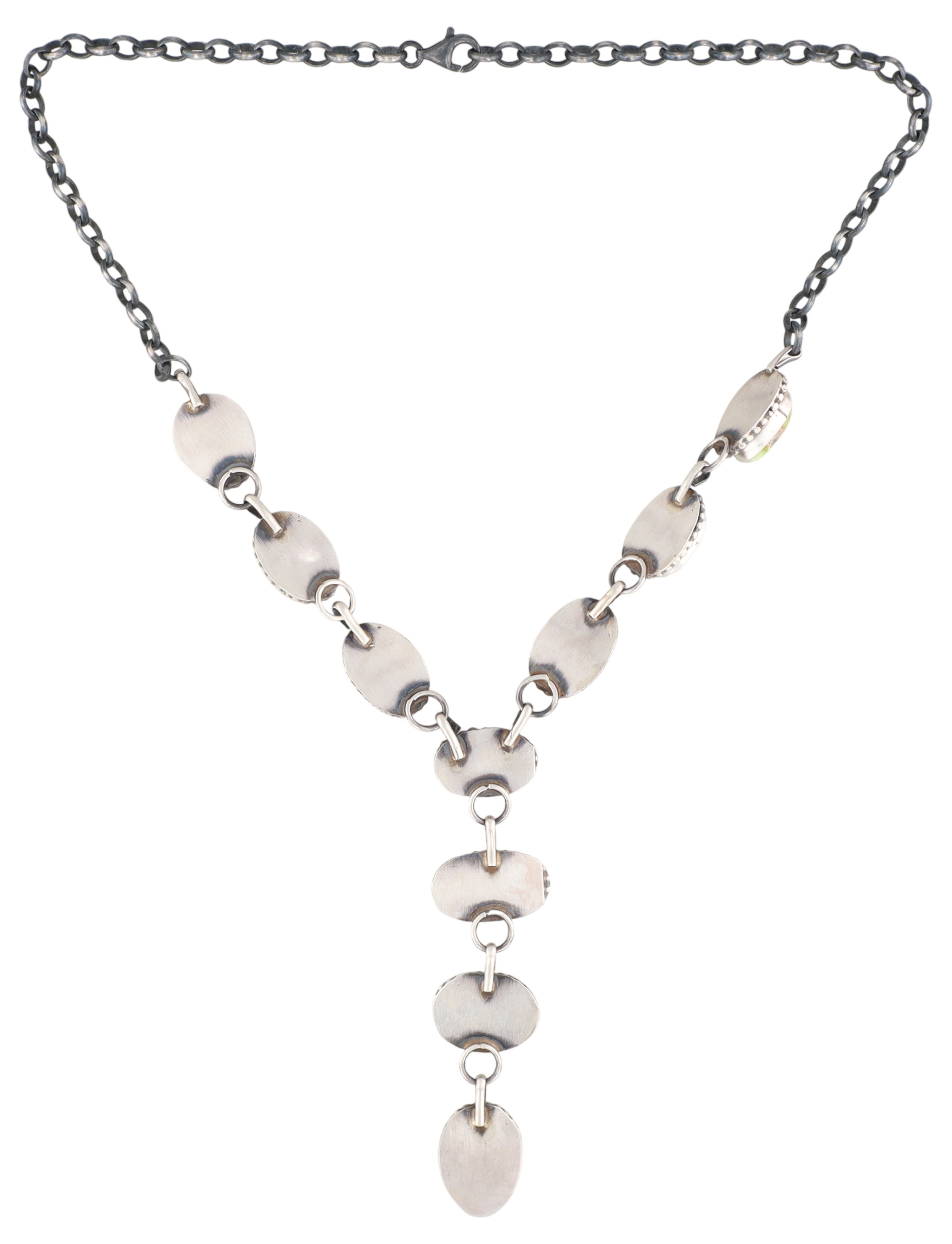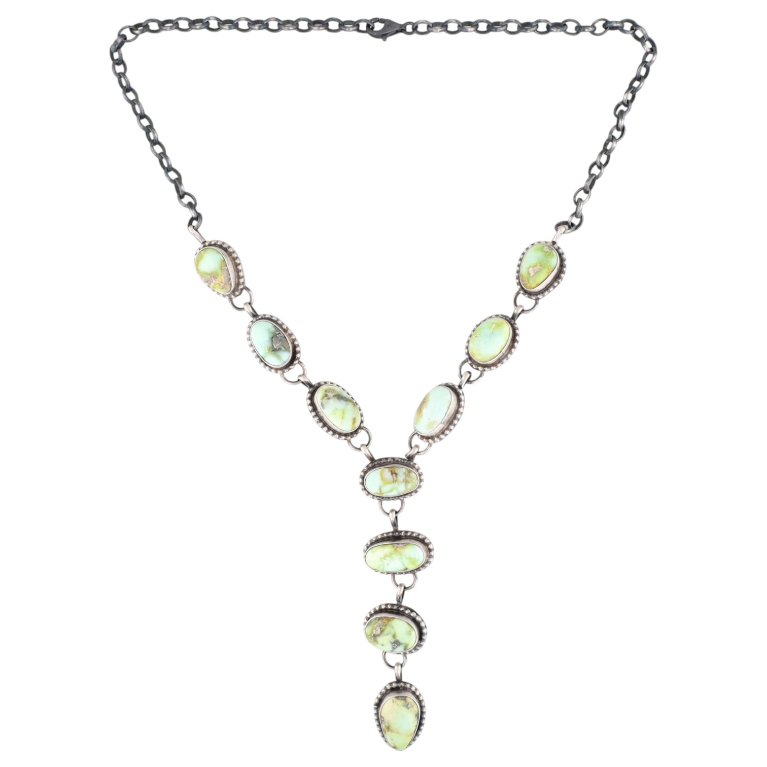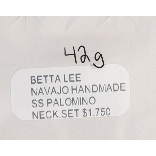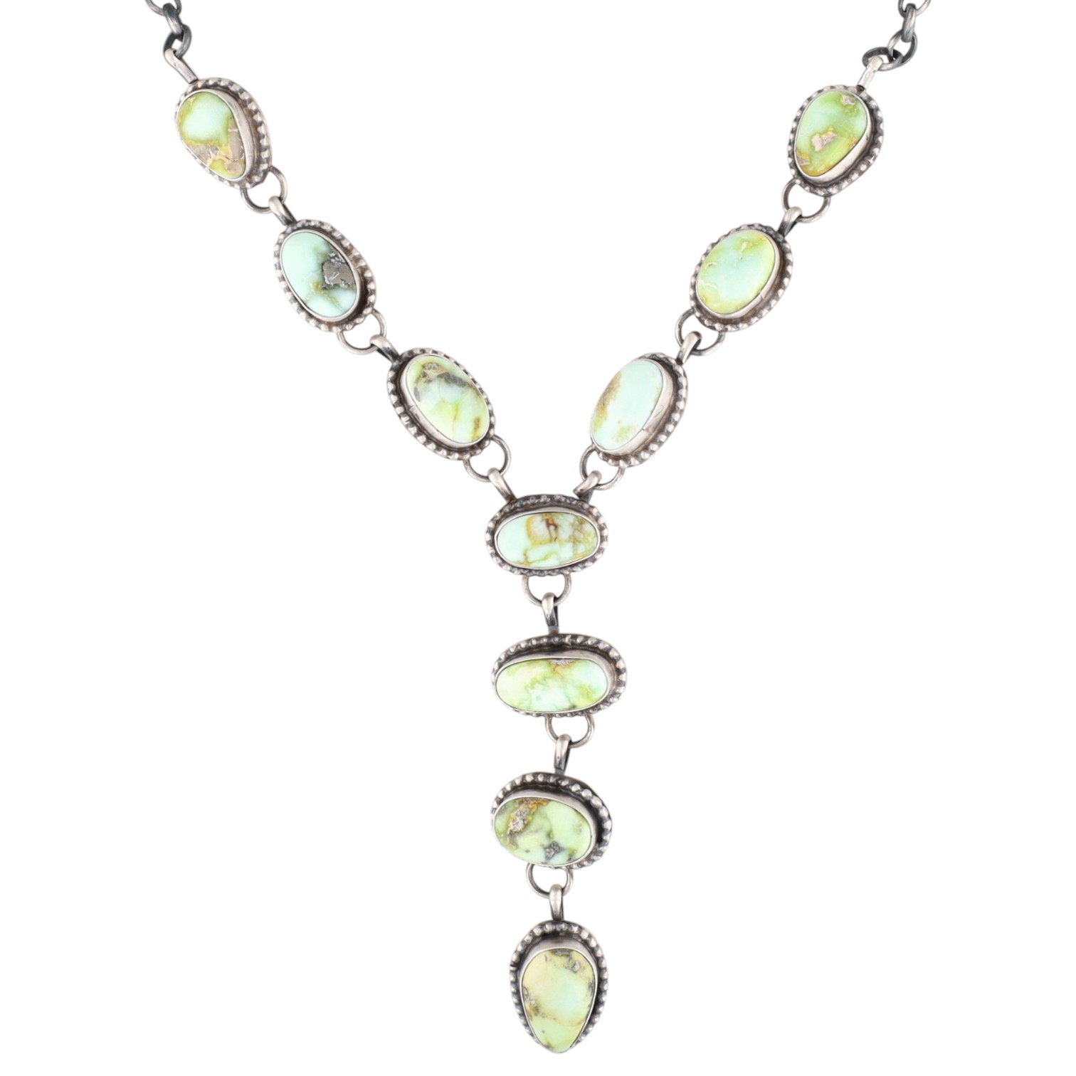 A Betta Lee Navajo sterling silver Y-shaped lariat necklace with multiple palomino stones, weighing 42g and measuring approx. 17 inches.
