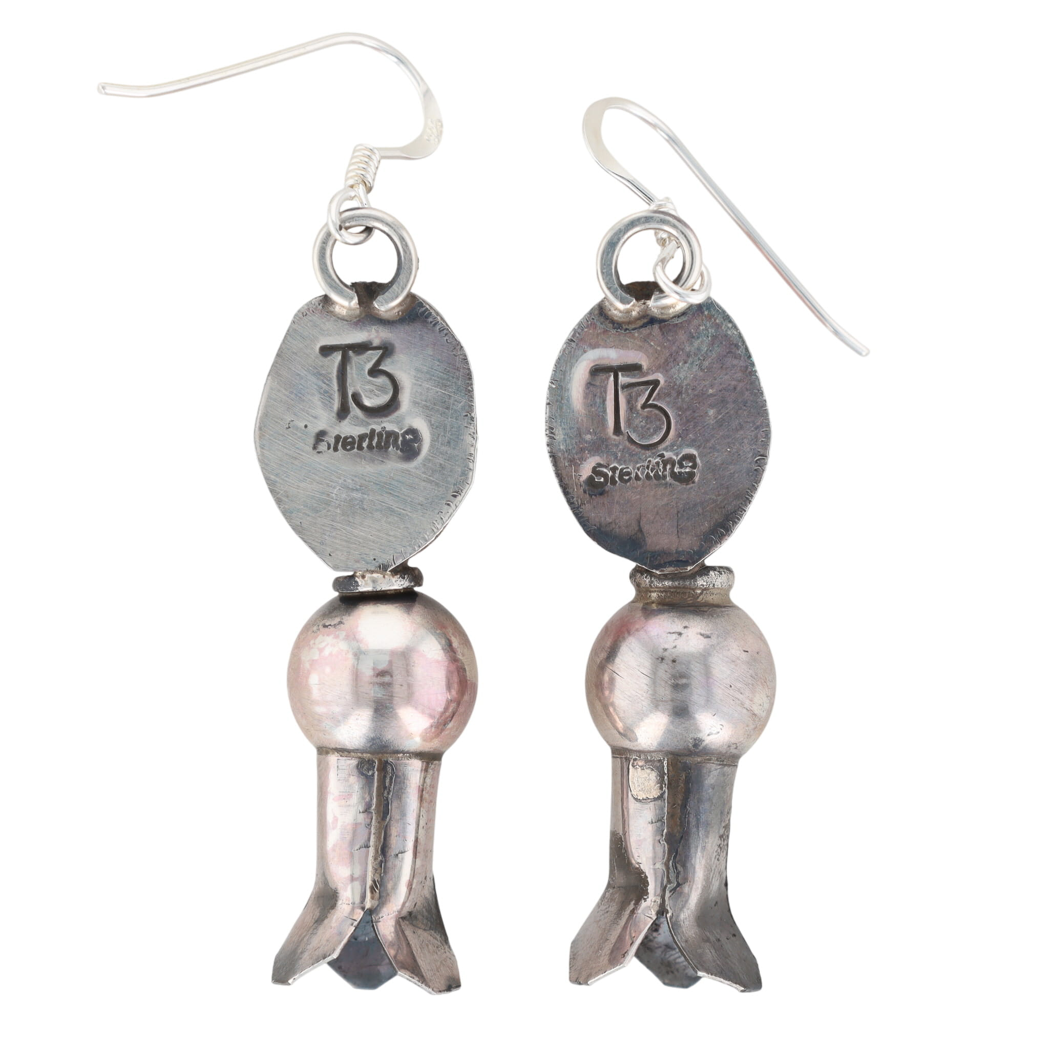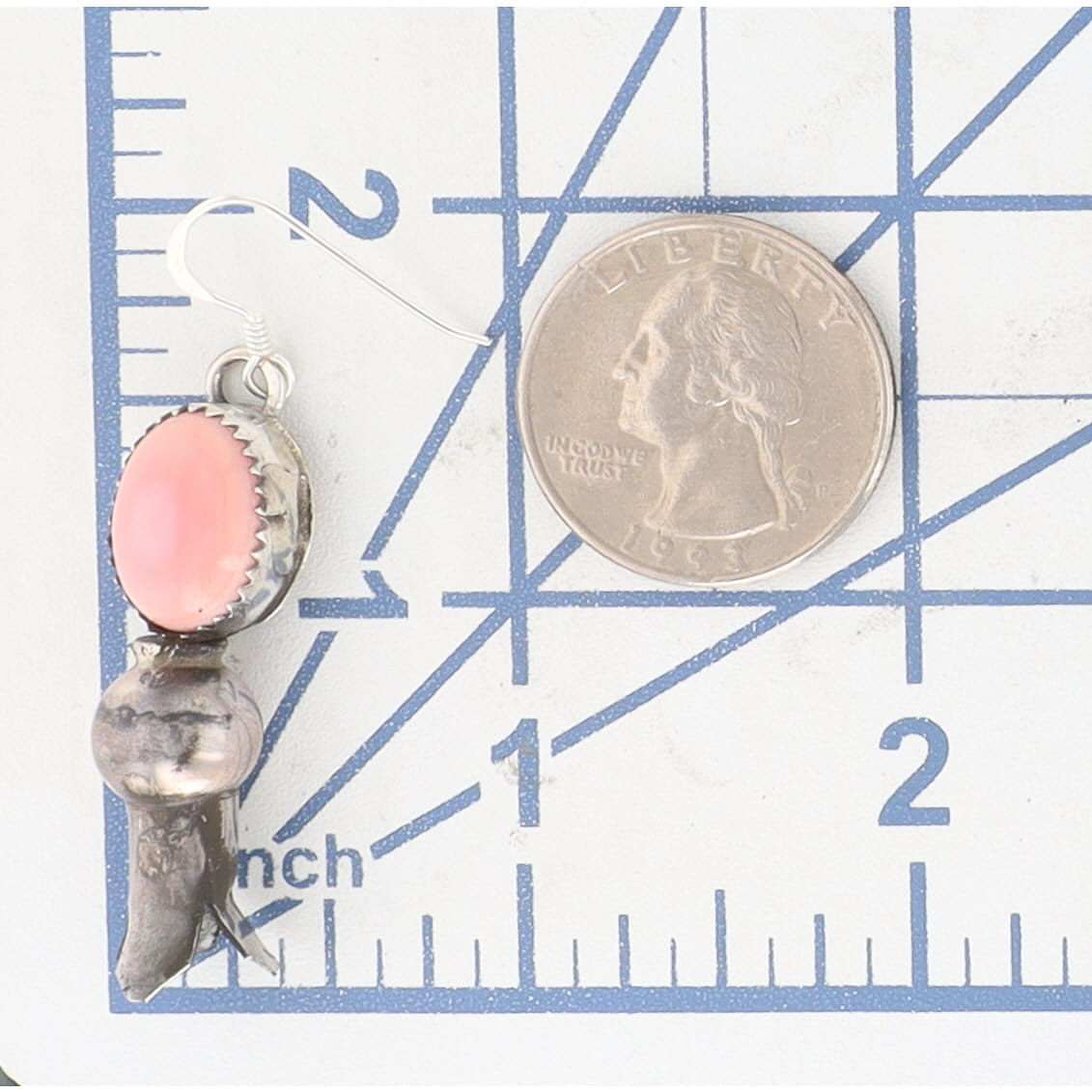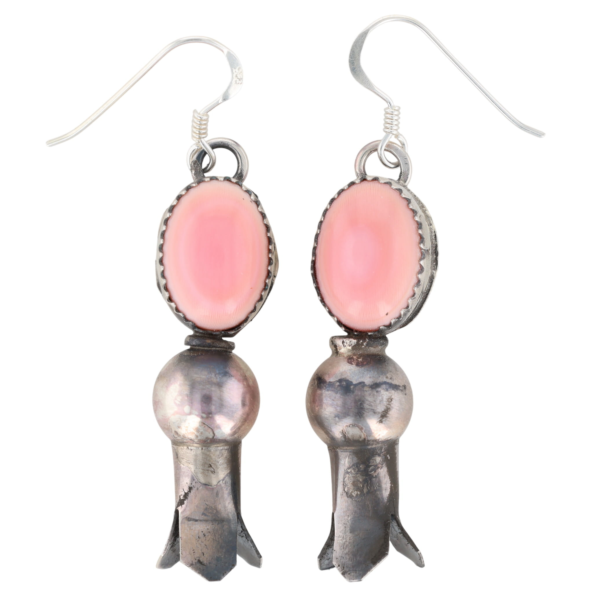 Navajo Silver and Pink Conch Earrings by TIA LONG, TB