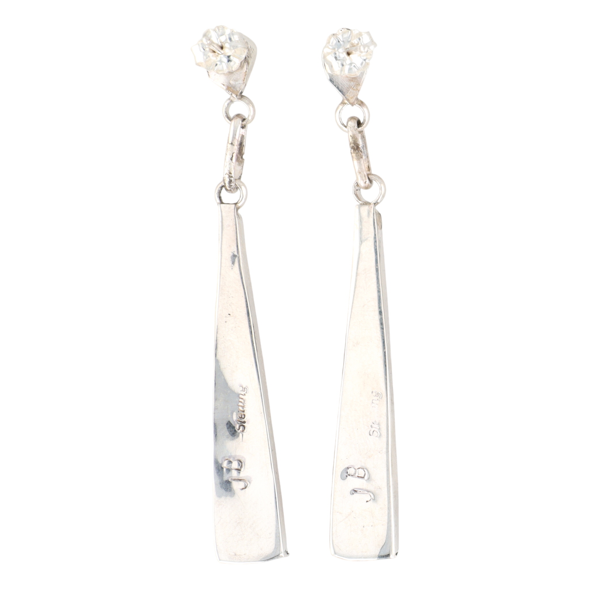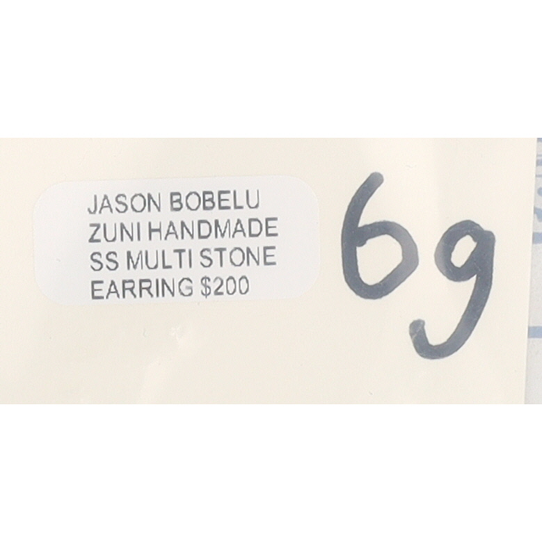 A Pair of Jason Bobelu Zuni Sterling Silver Multi-Stone Inlay Earrings