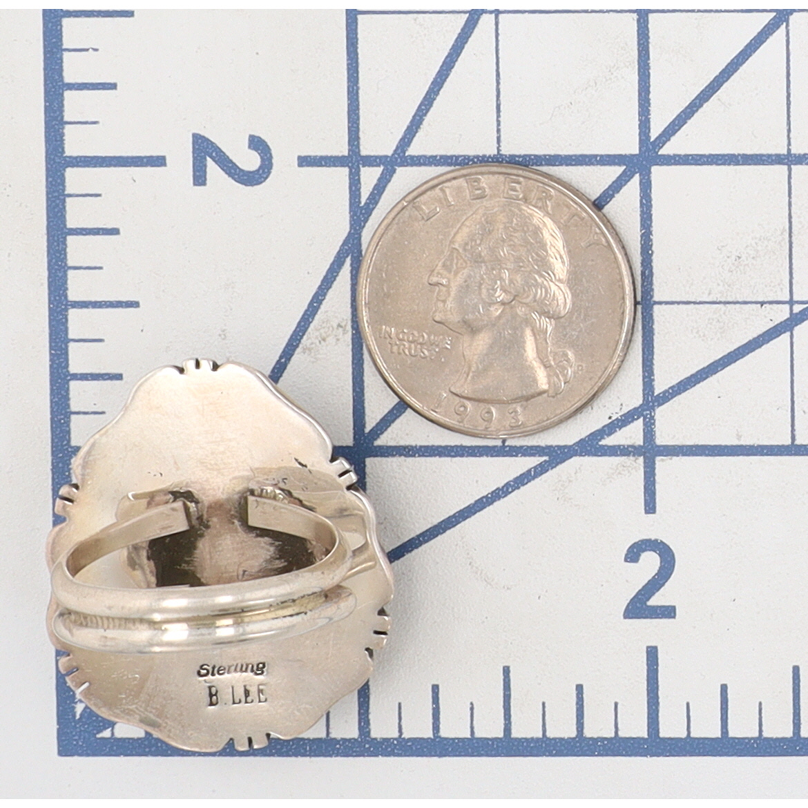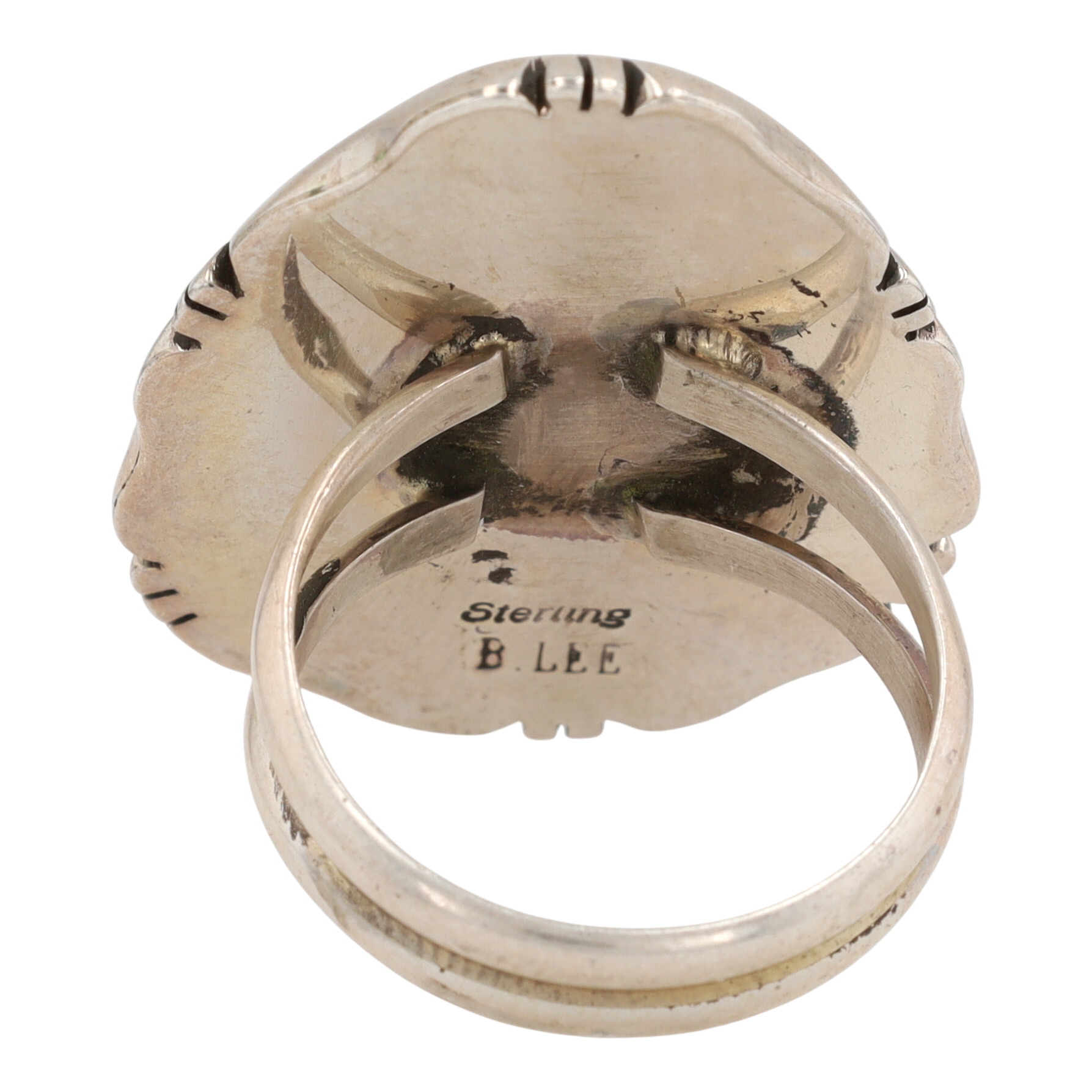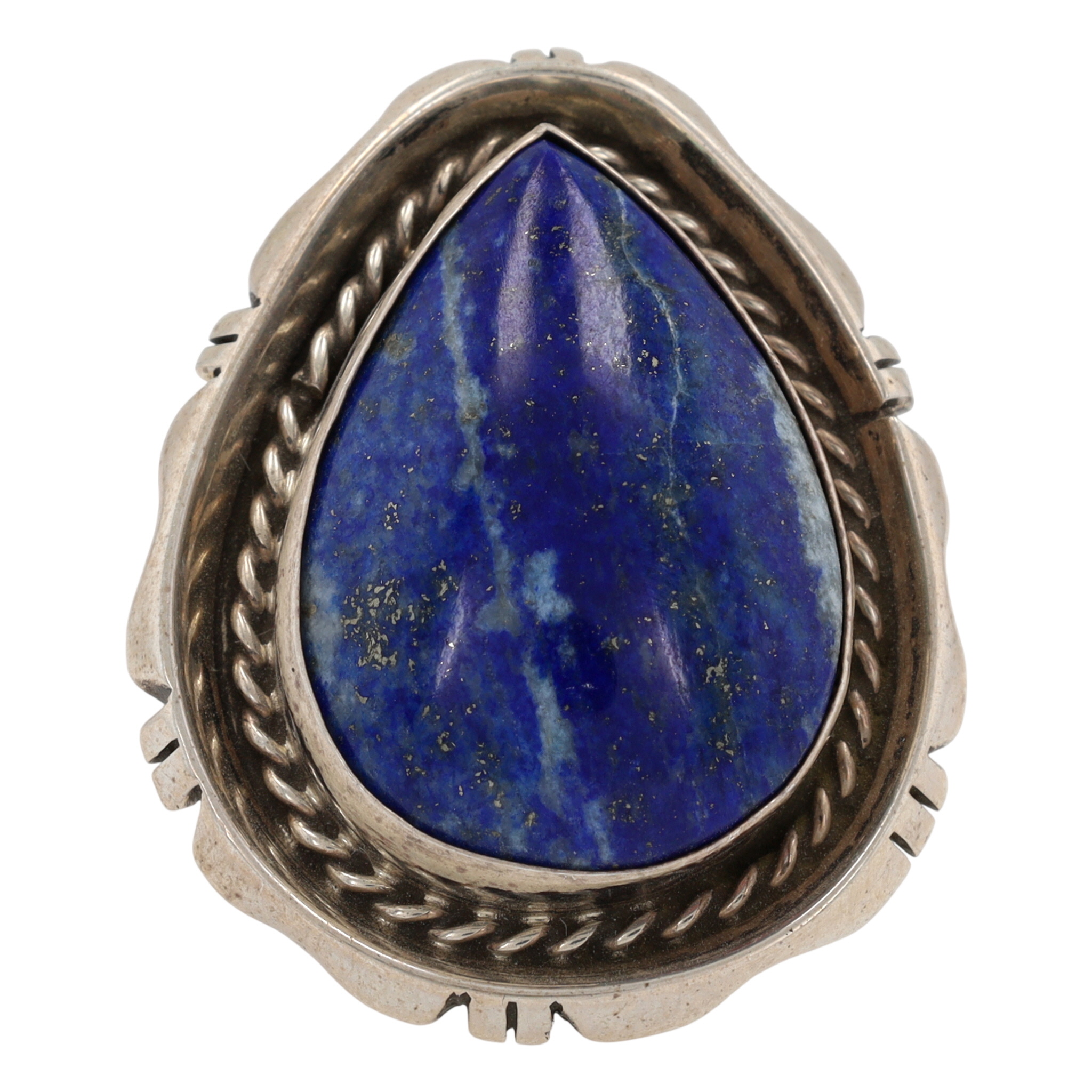 A Betta Lee Navajo handmade sterling silver lapis lazuli ring, size 10, featuring a deep blue stone and marked “Sterling” and “B. LEE”, weighing 15g.