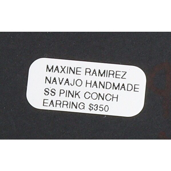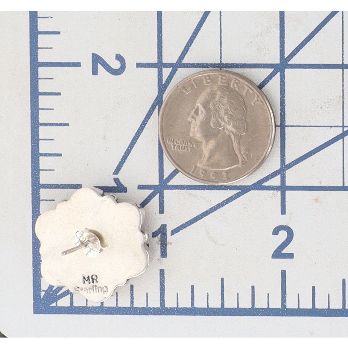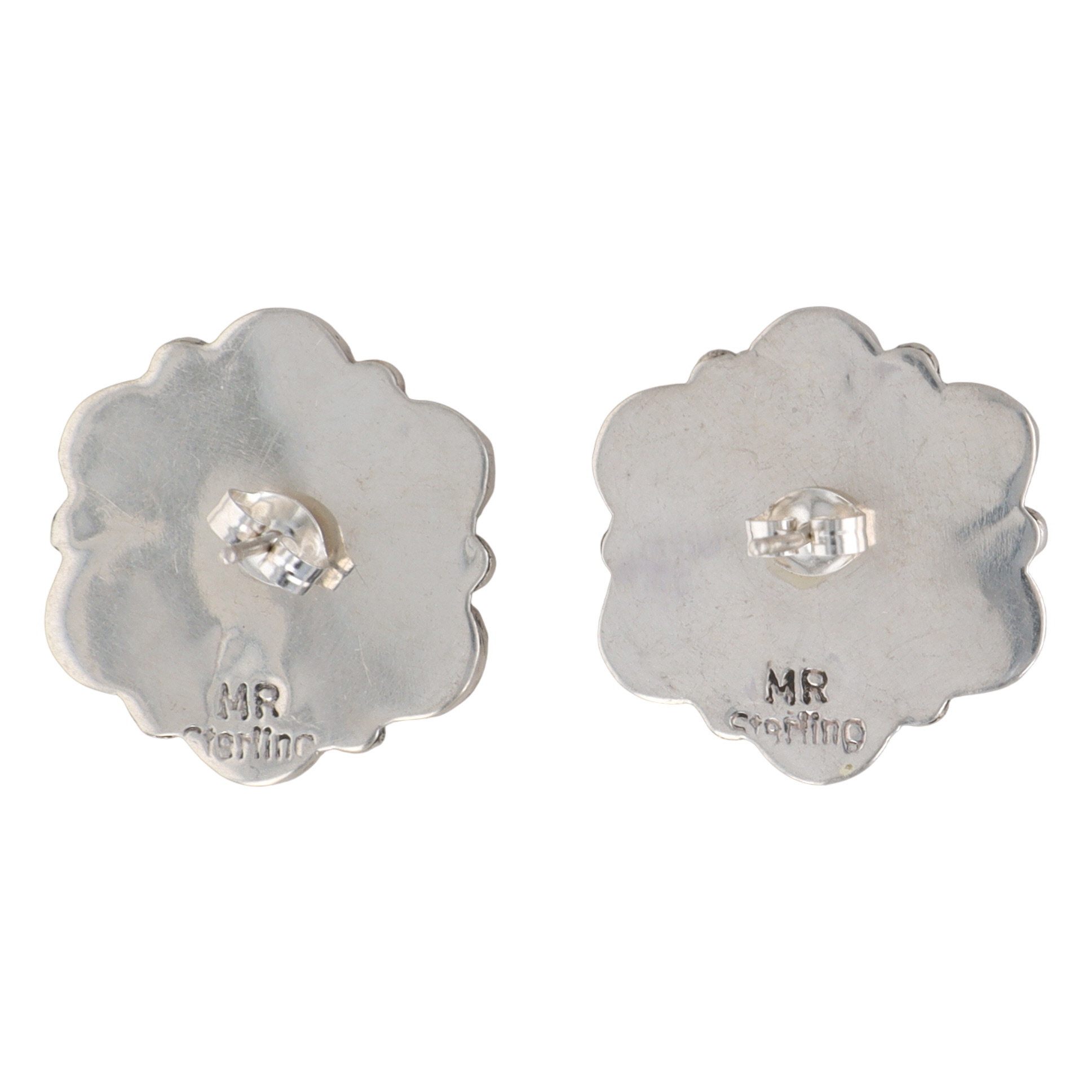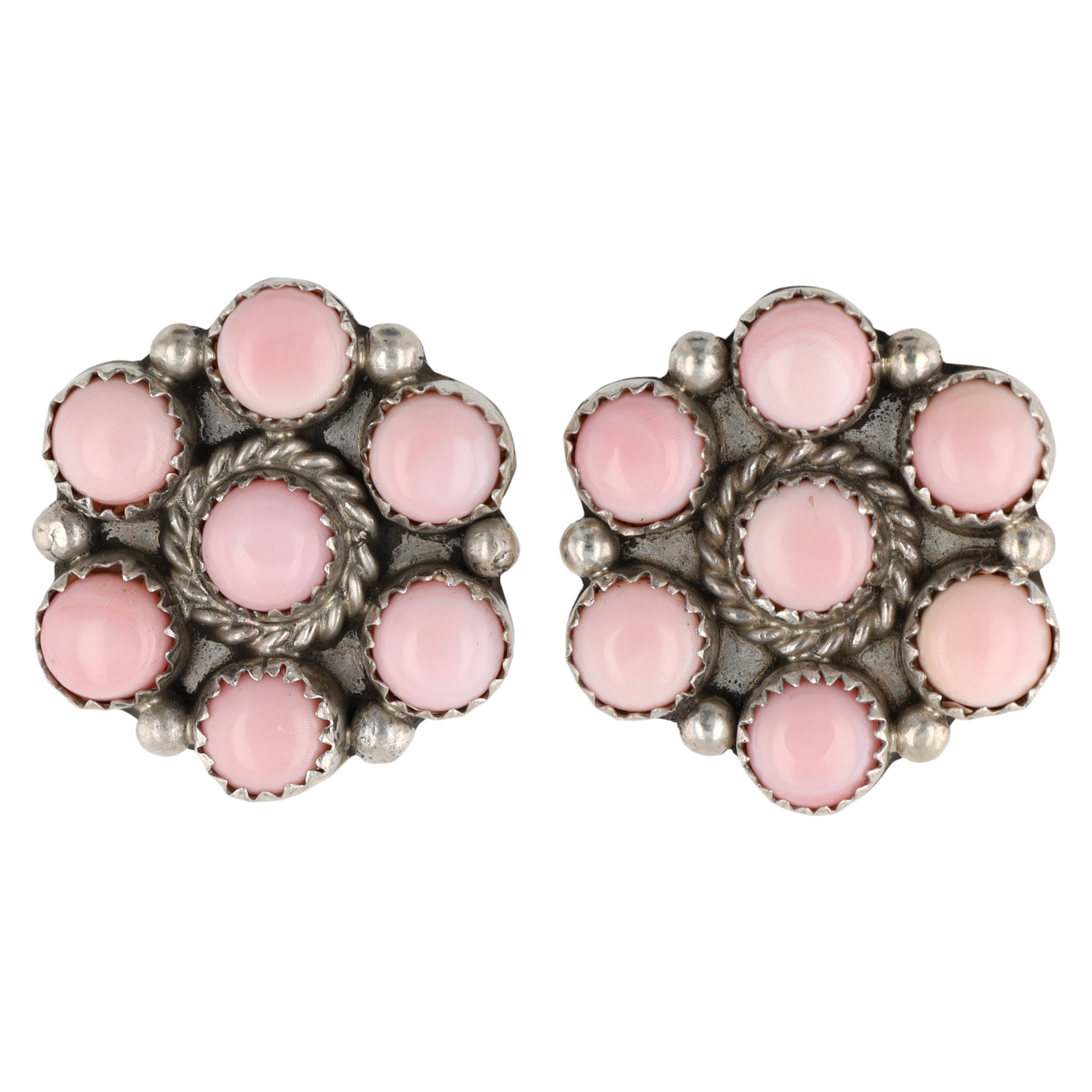 A pair of Navajo handmade sterling silver pink conch cluster earrings by Maxine Ramirez, each approximately 1 inch wide, weighing 9g