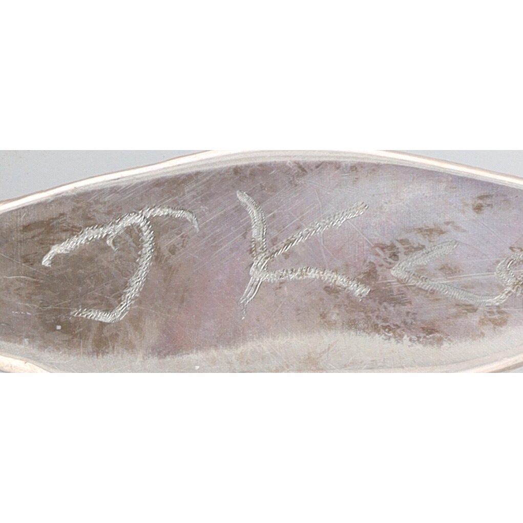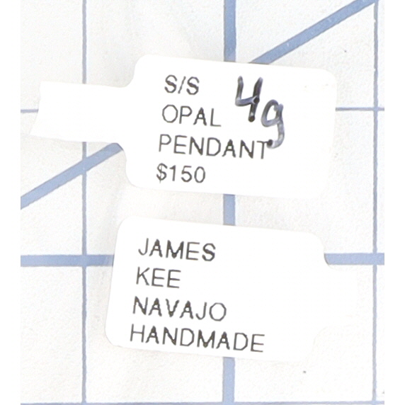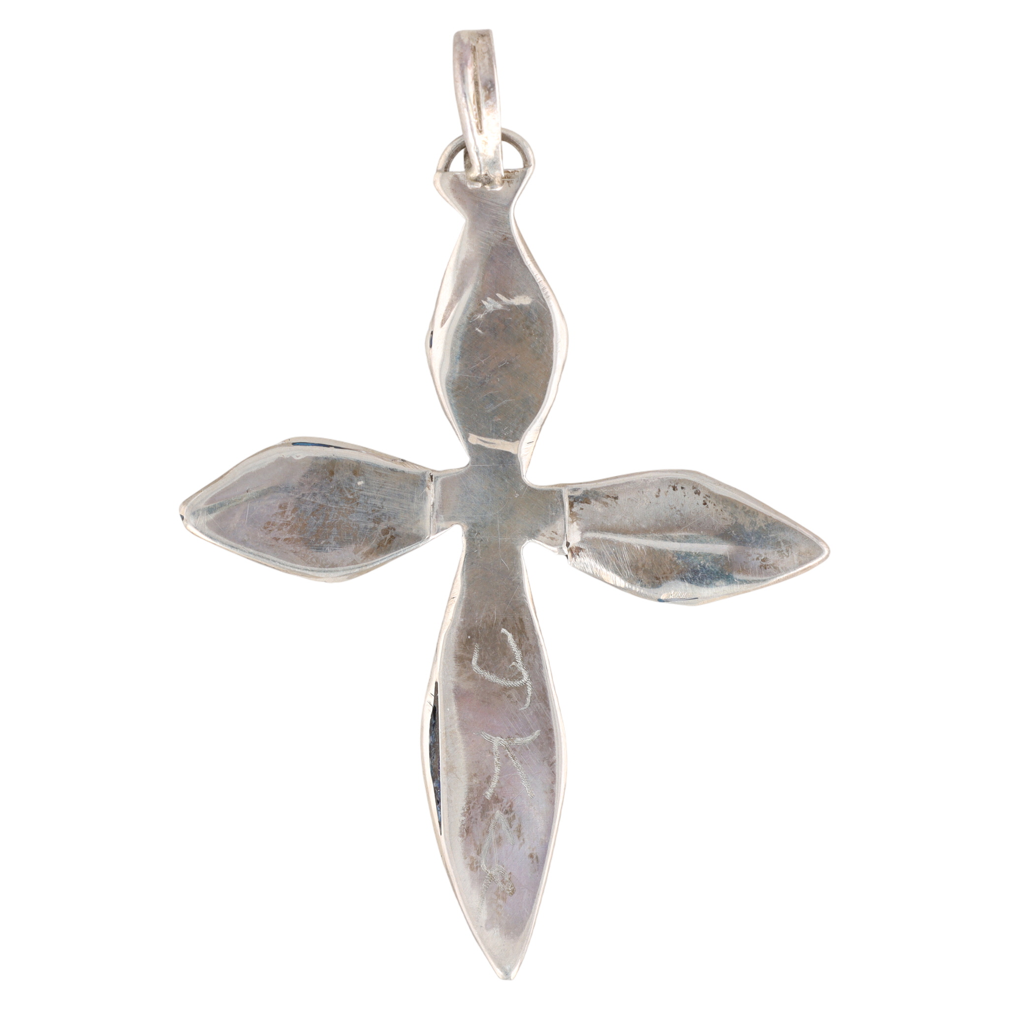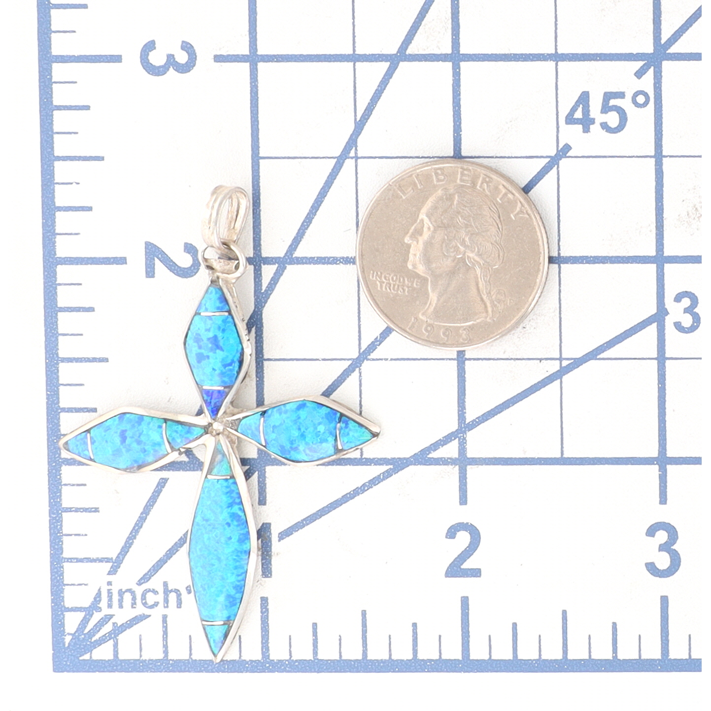 A James Kee Navajo handmade sterling silver and blue opal cross pendant, marked “JK”, weighing 4g, measuring approximately 2.25 inches long.