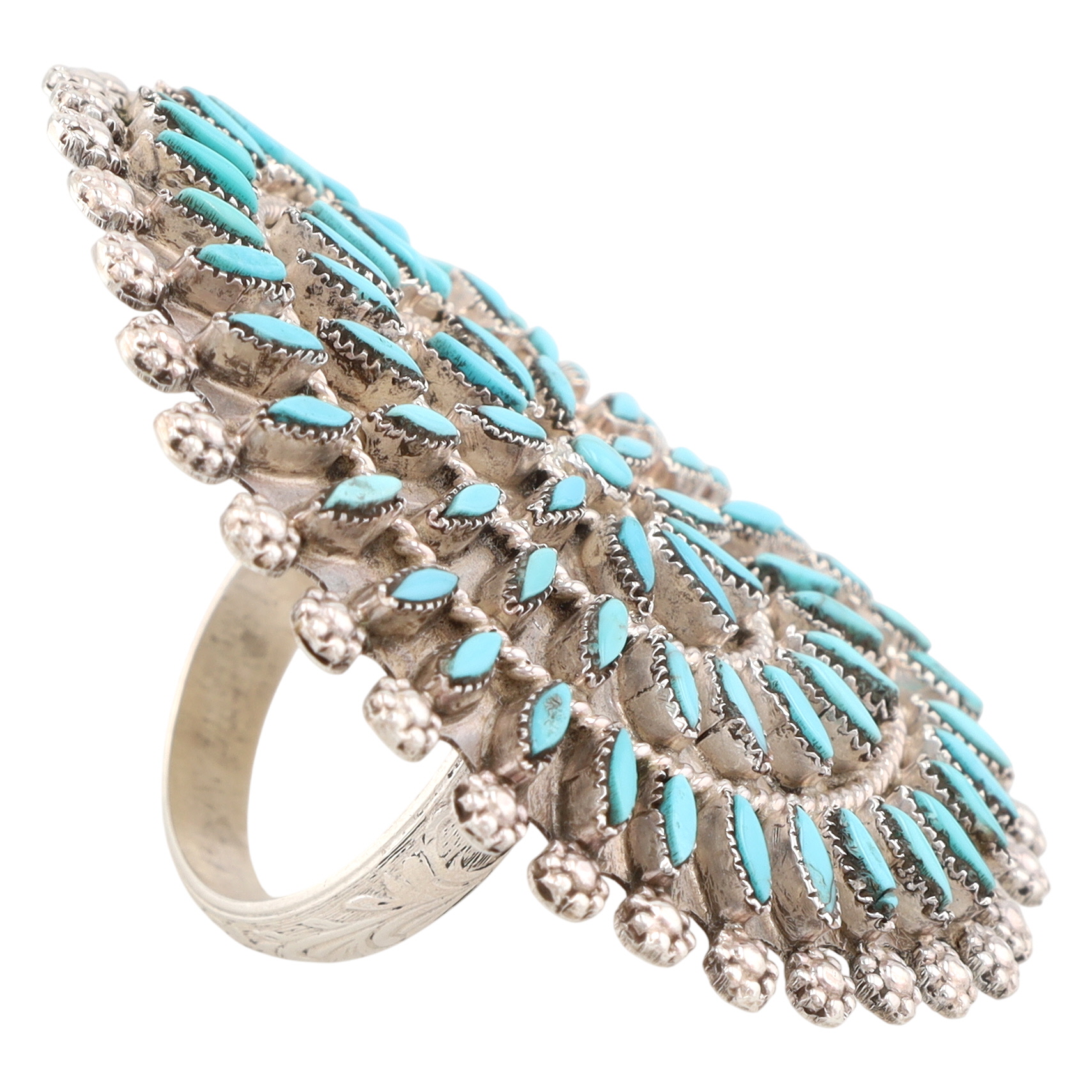 Merlinda Chavez Zuni Sterling Silver Turquoise Cluster Ring