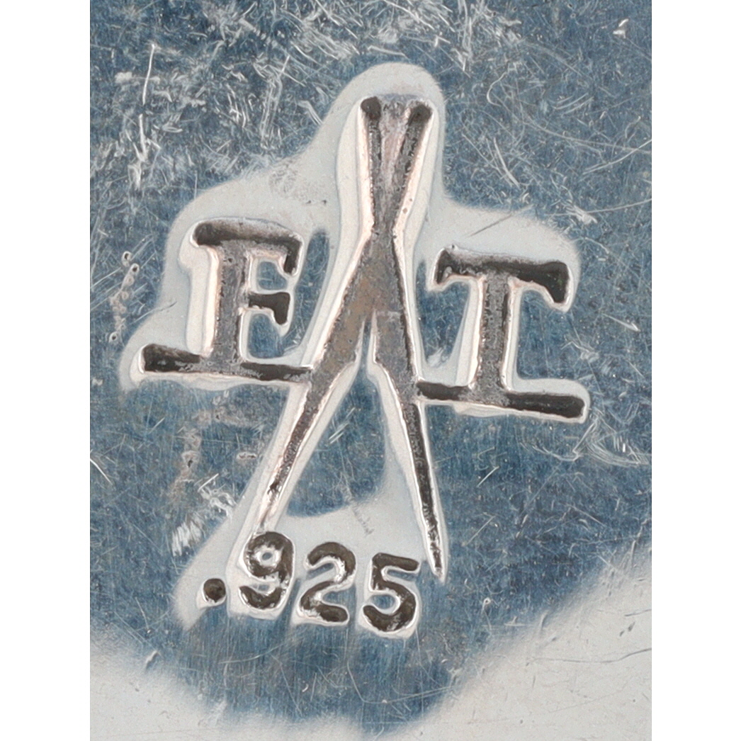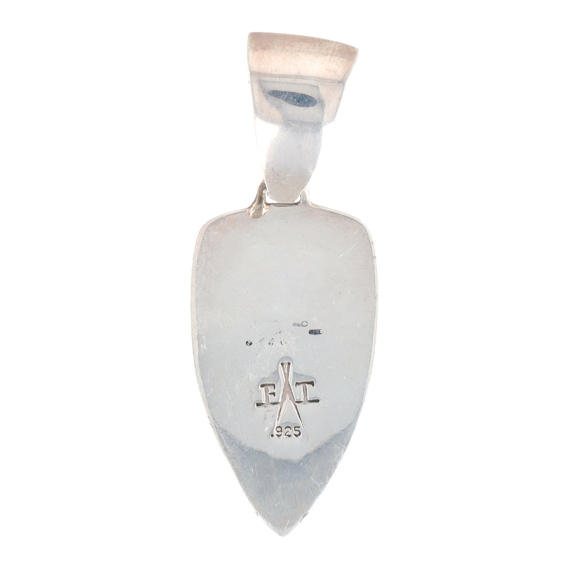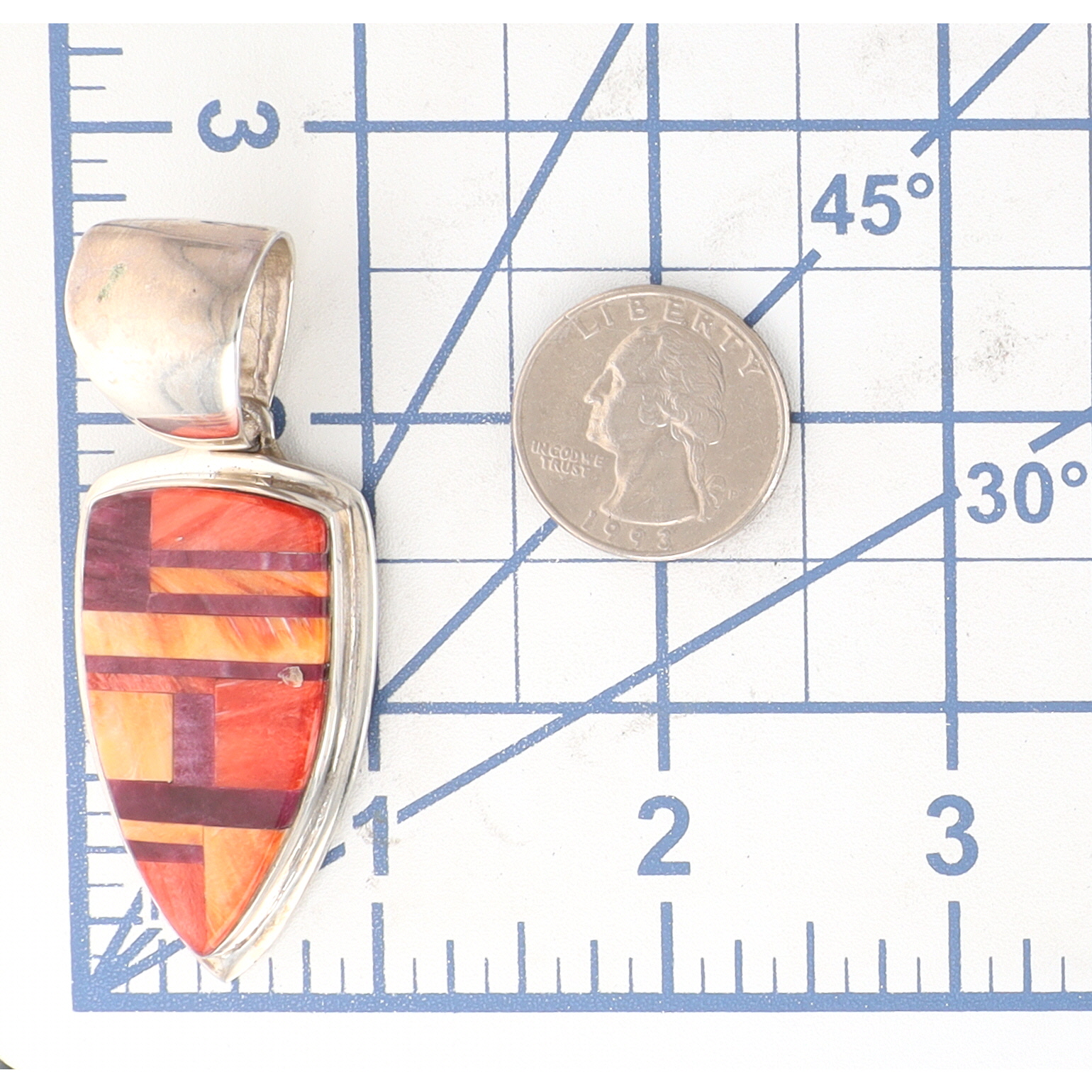 First American Traders Sterling Multi-Spiny Oyster Inlay Pendant, consisting of red, orange, and purple spiny oysters, marked “F.A.T.” and “.925” on the back, measuring approximately 2.75 inches long and weighing 25g.