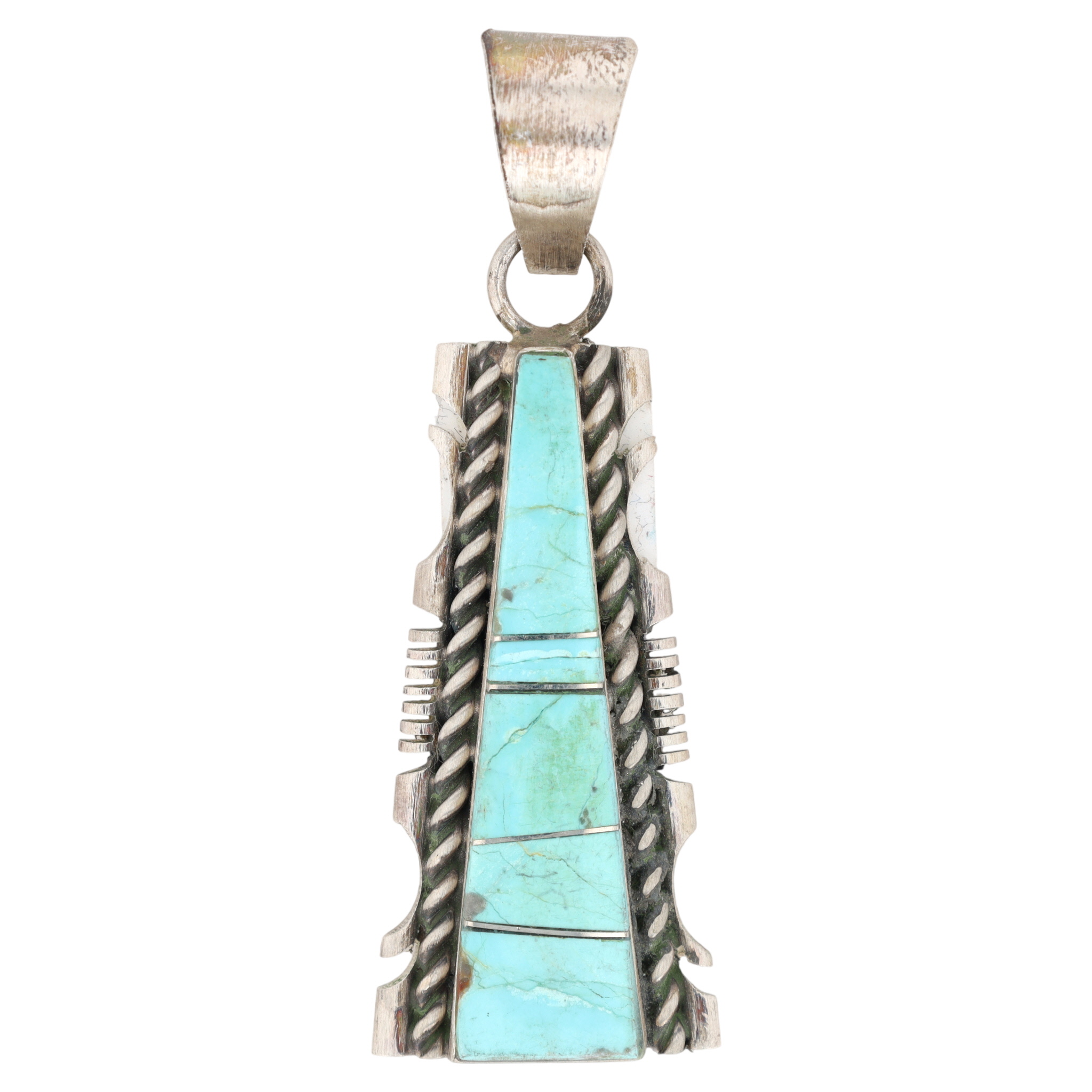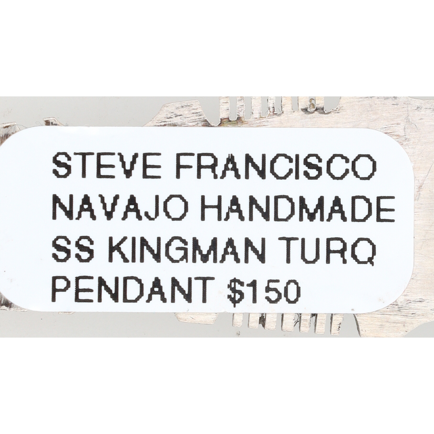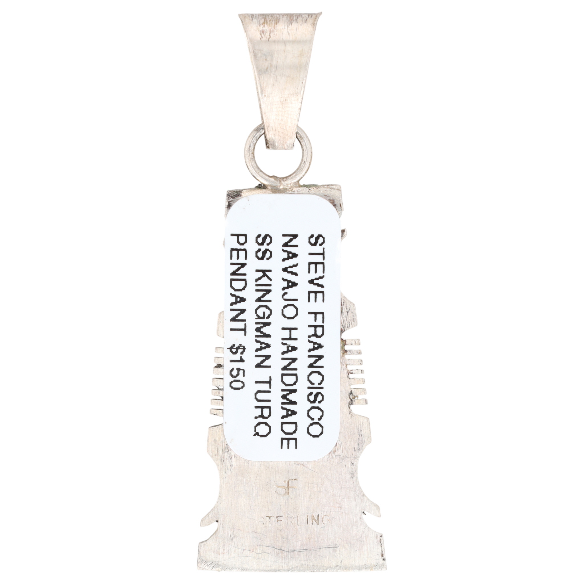 A Steve Francisco Navajo handmade sterling silver Kingman turquoise inlay pendant, measuring approximately 2 inches long and weighing 7g.