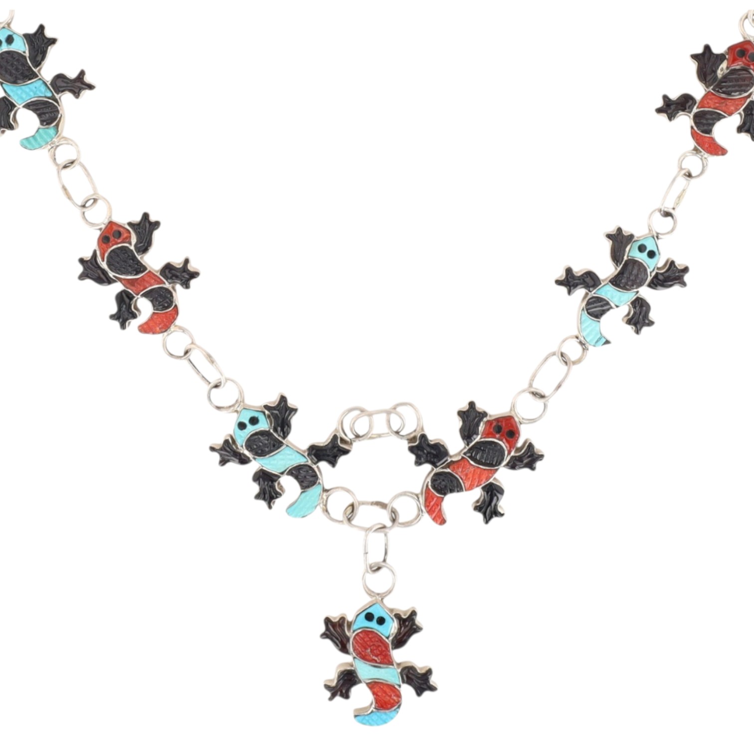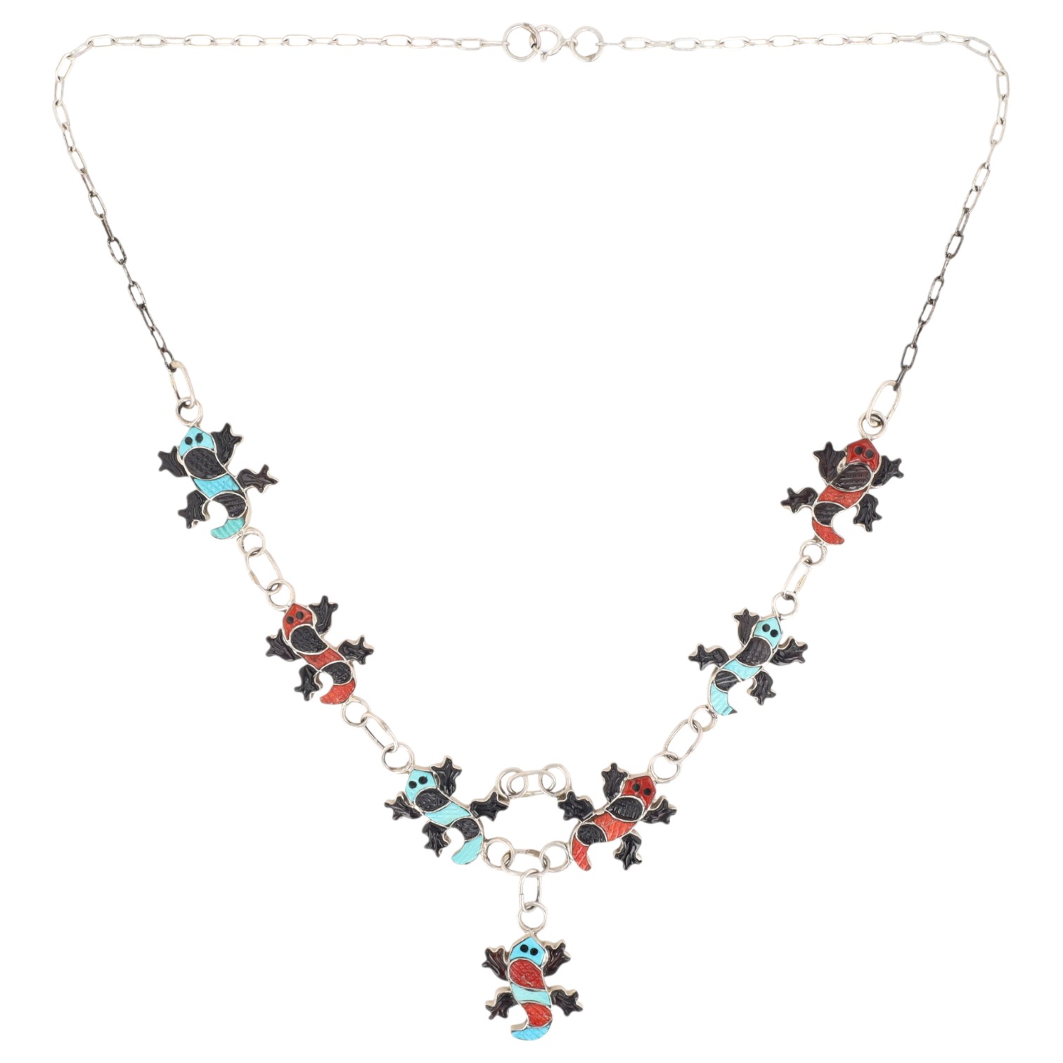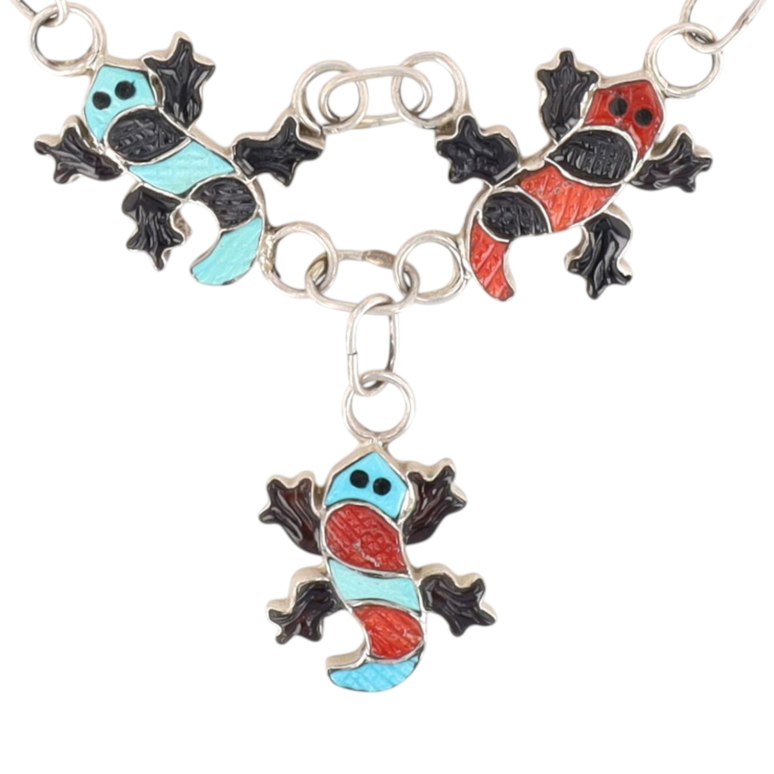 Tamara Pinto Zuni Sterling Inlaid Gecko Necklace