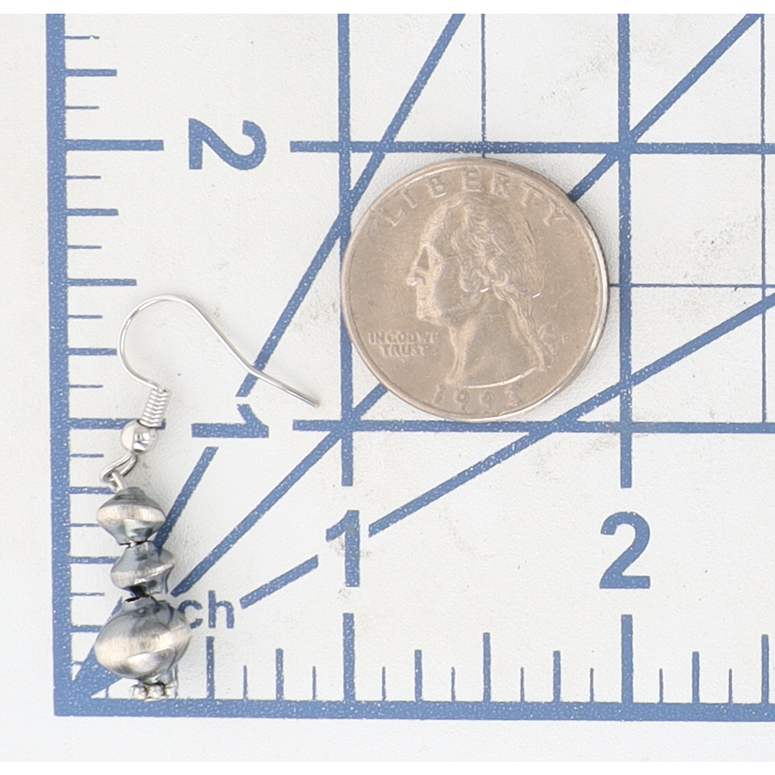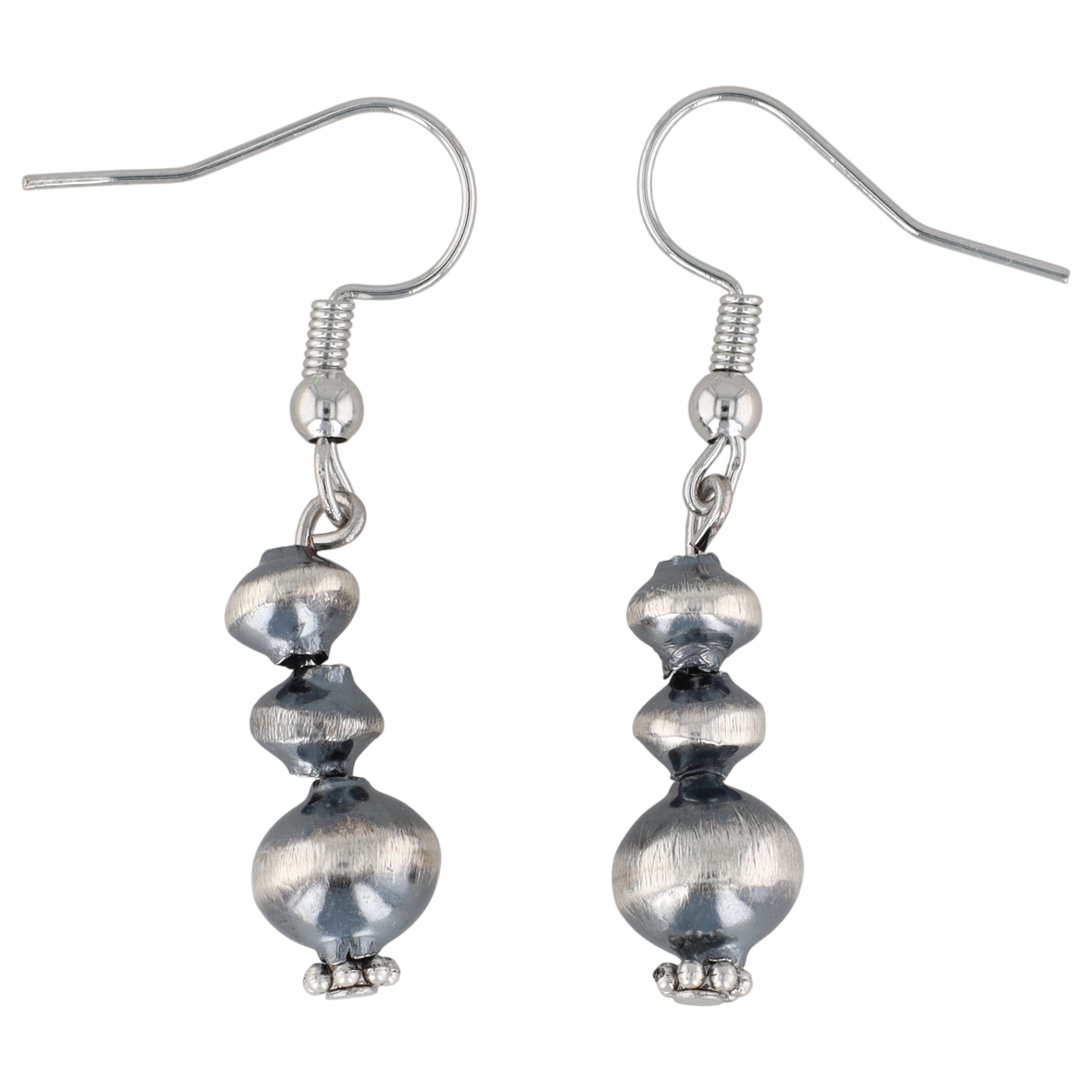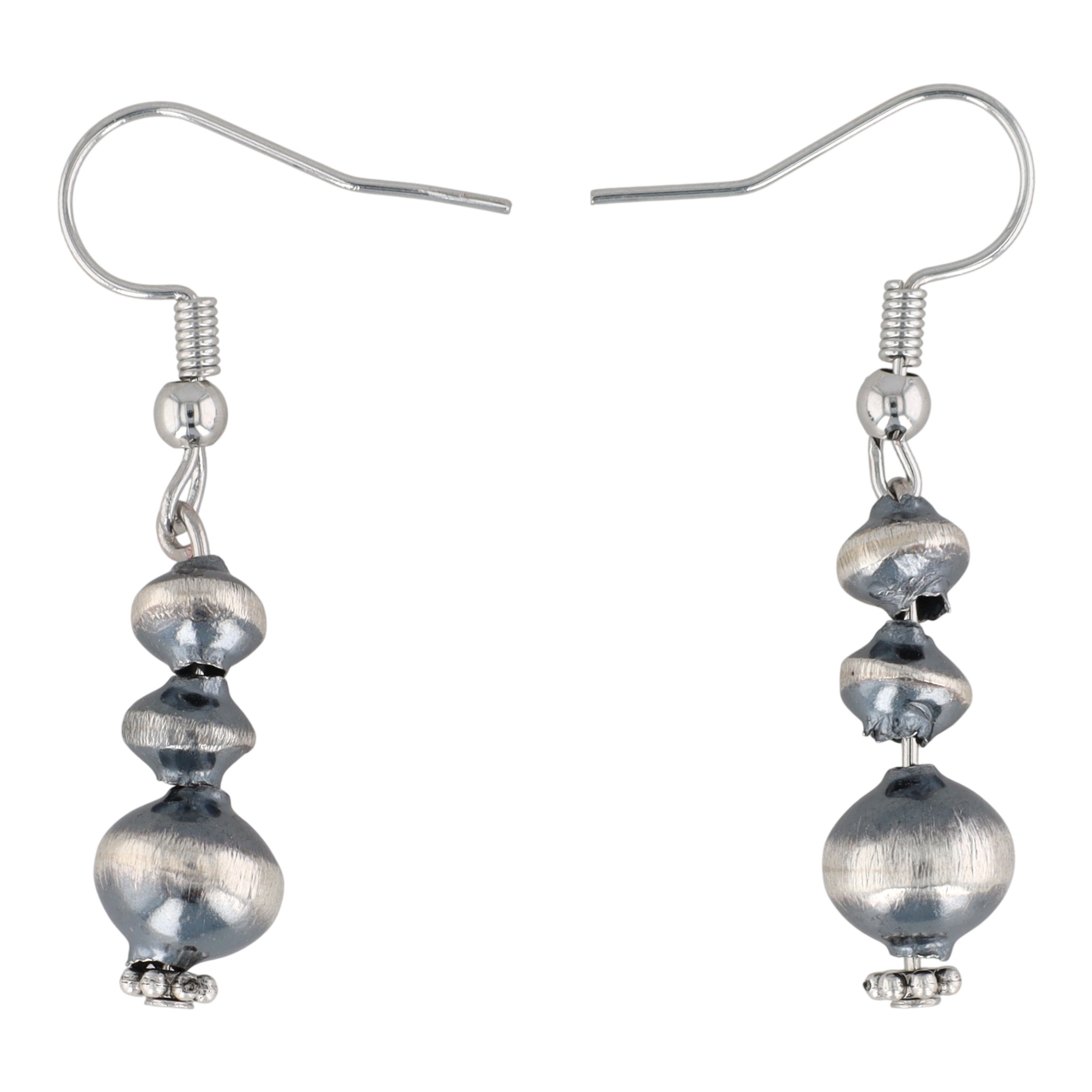 A pair of silver and dark grey dangle earrings, Navajo handmade sterling silver, measuring approximately 2 inches long and weighing 3g.