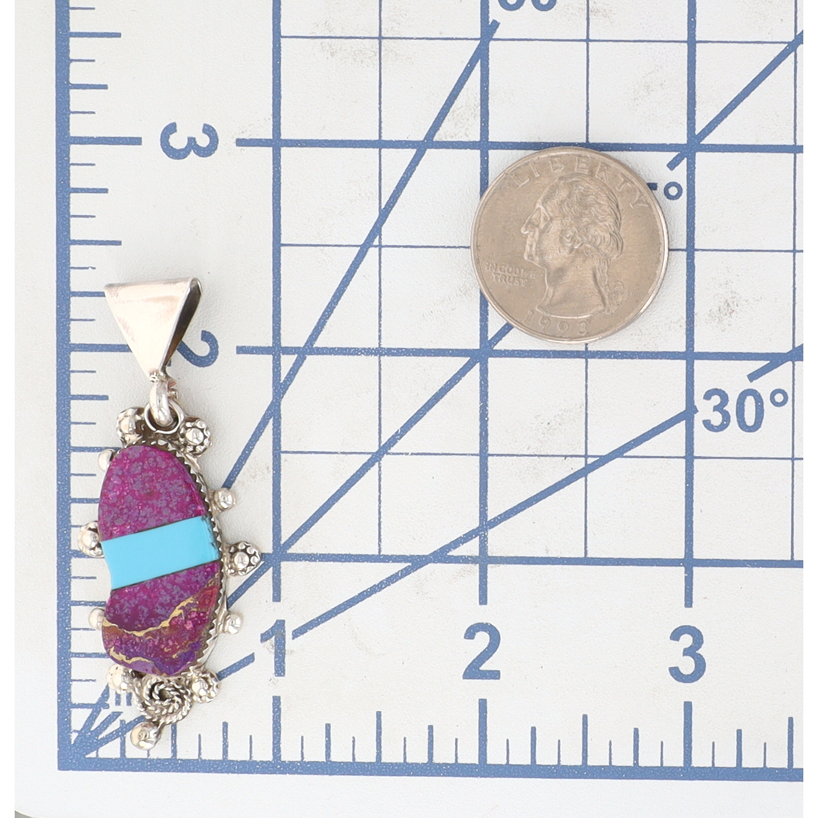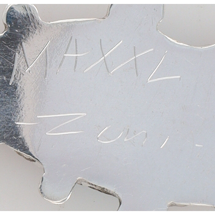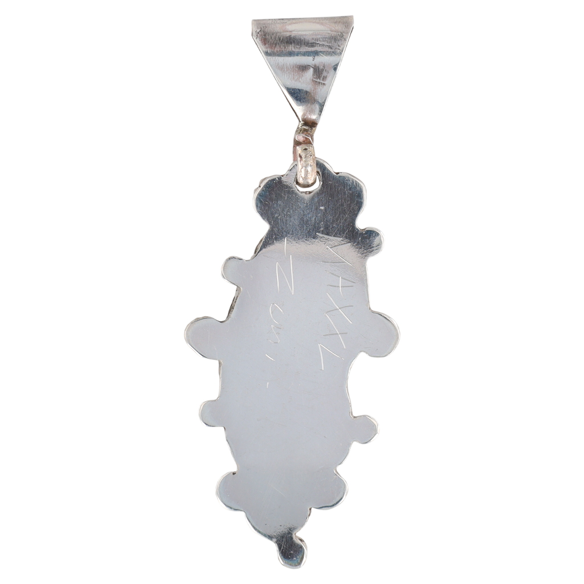 A Mojave, turquoise, sterling pendant, inscribed ‘MAXXL’ and ‘-ZUNI-‘ on the back, measuring approximately 2 inches long, and weighing 7.5g