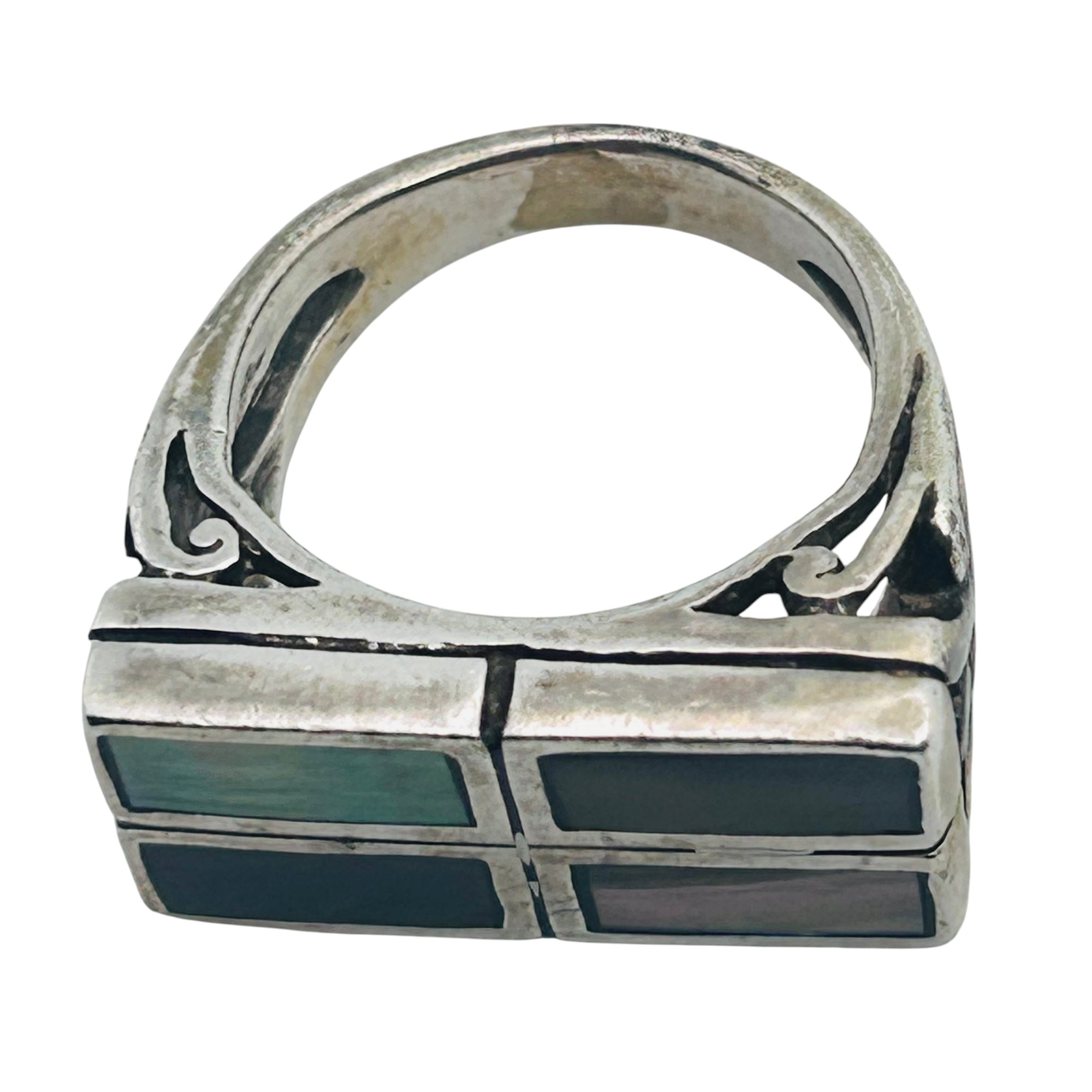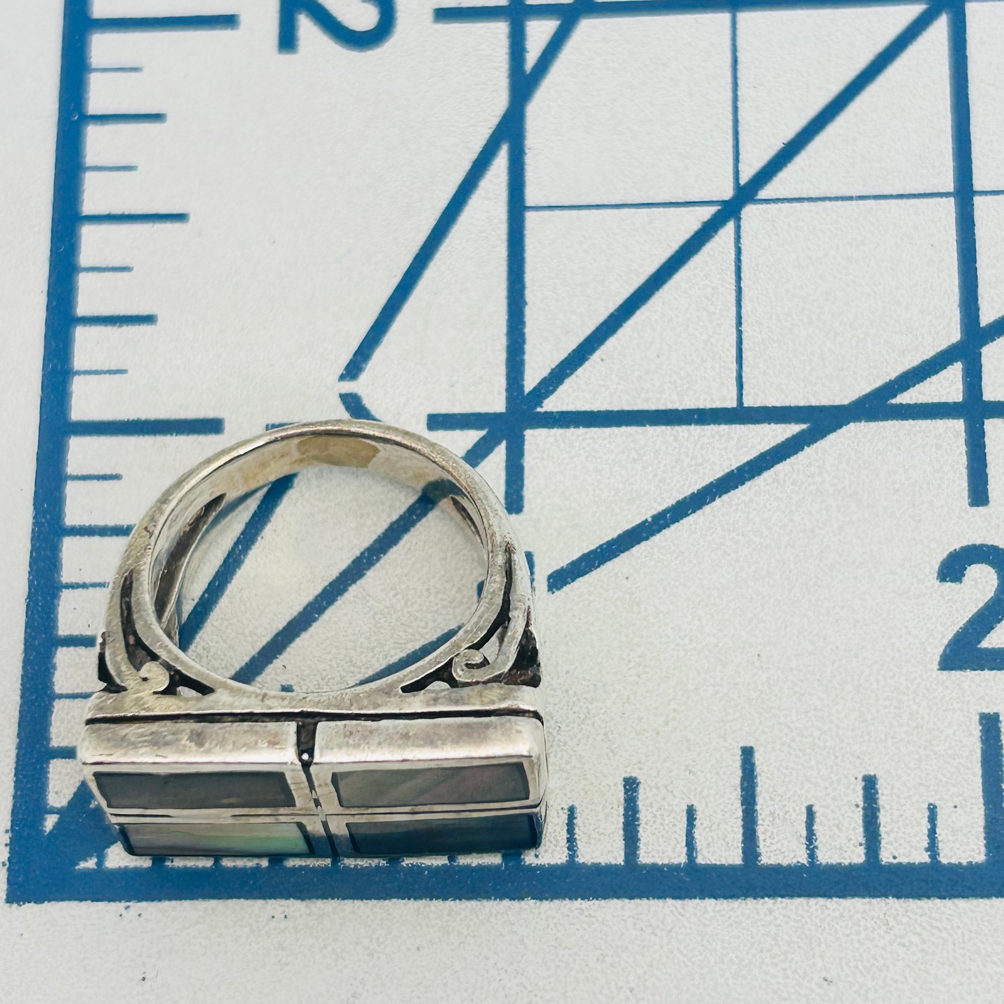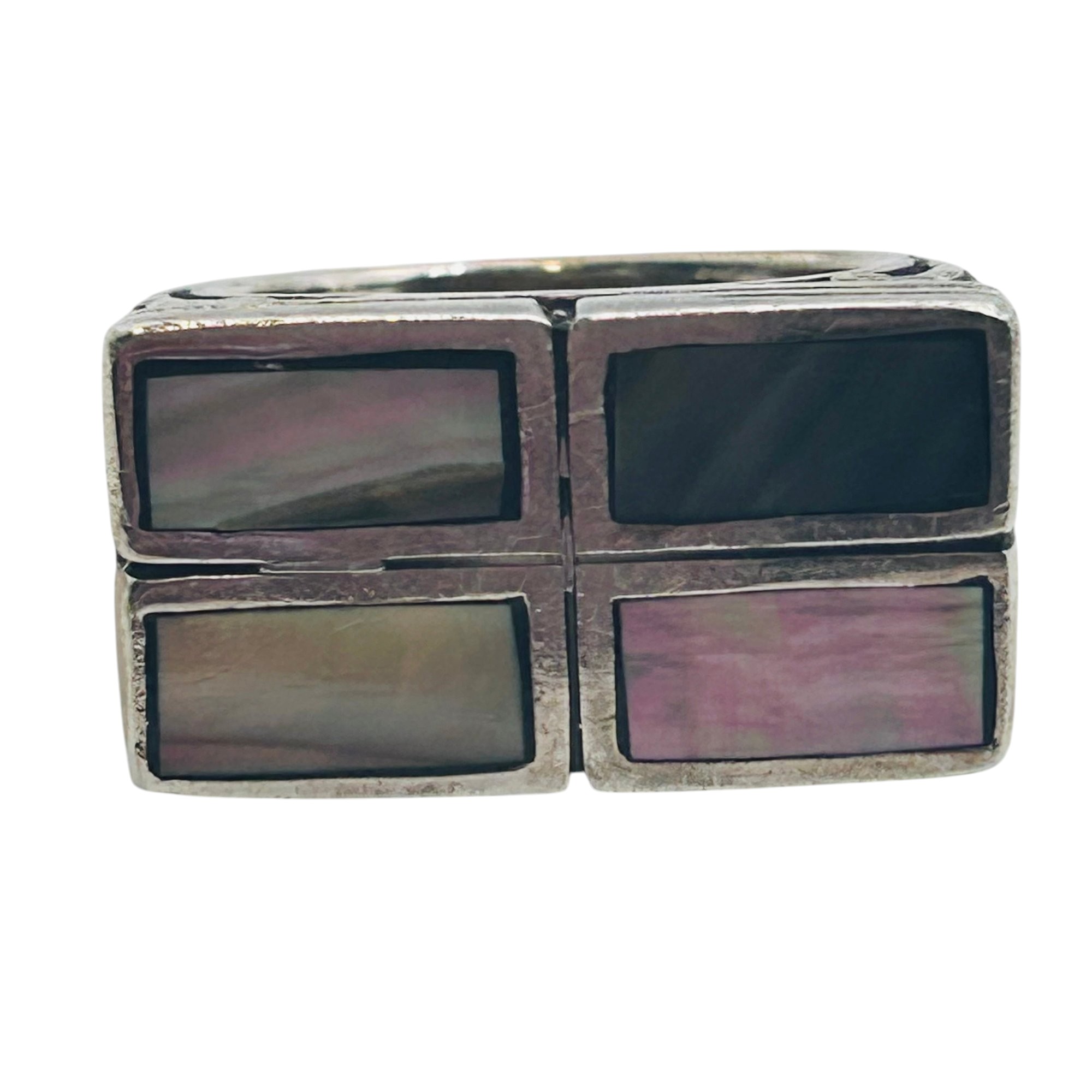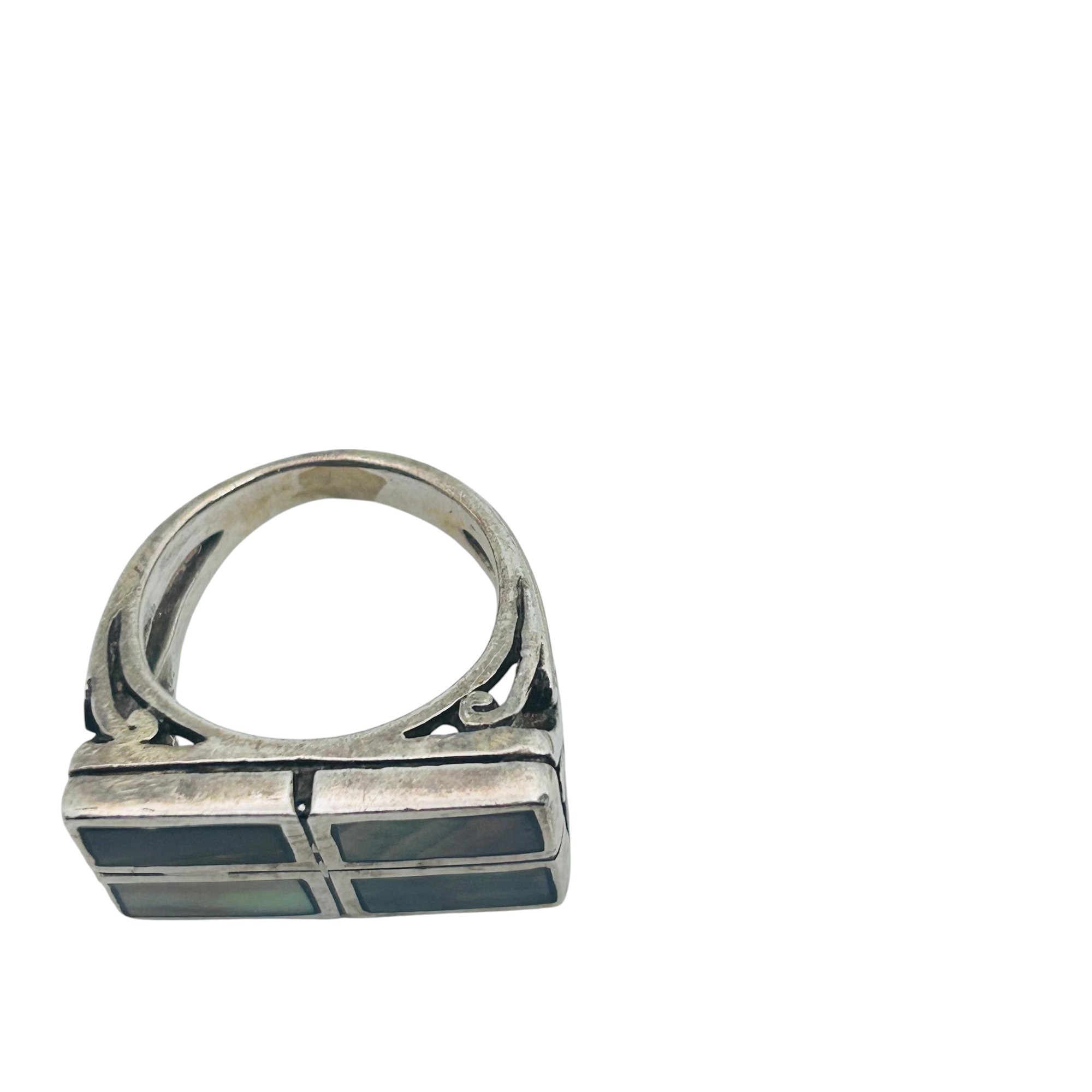 Abalone Sterling rectangle statement ring size 7 10.9 g
