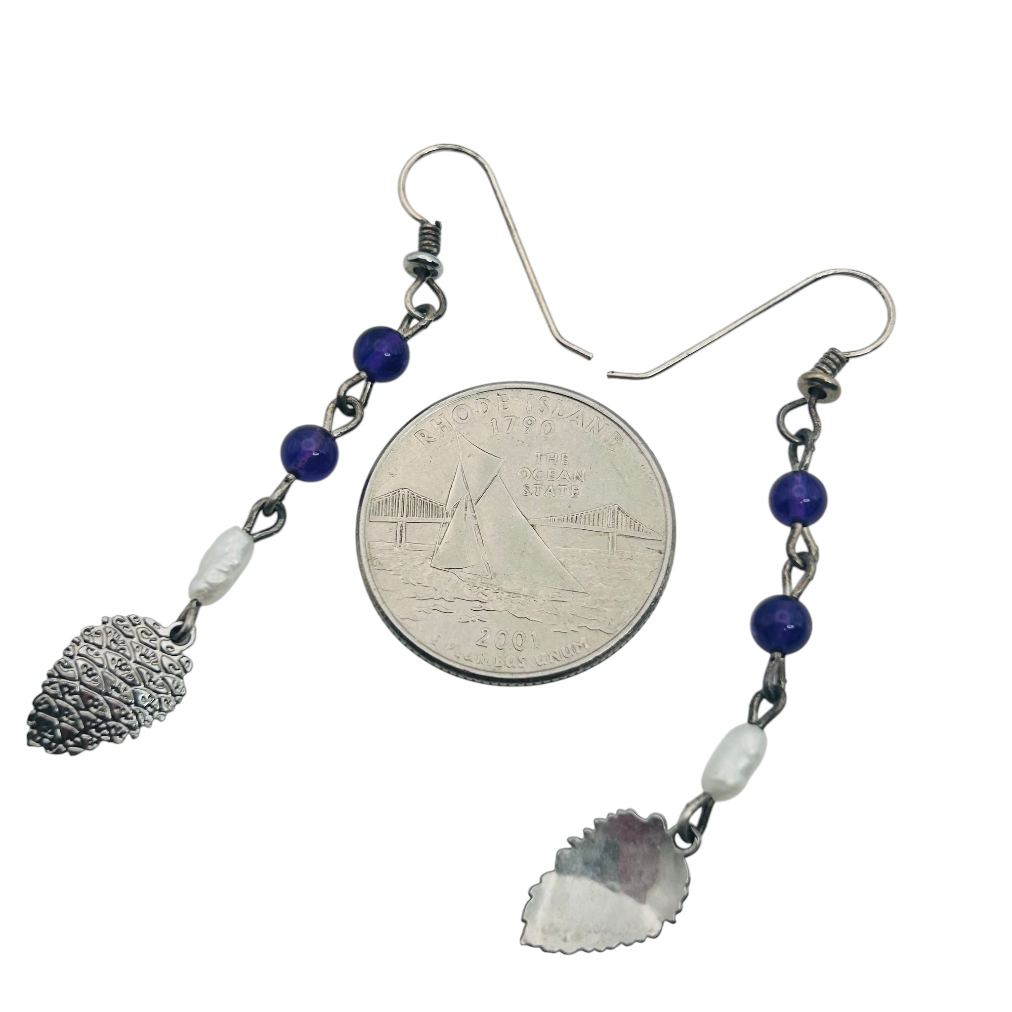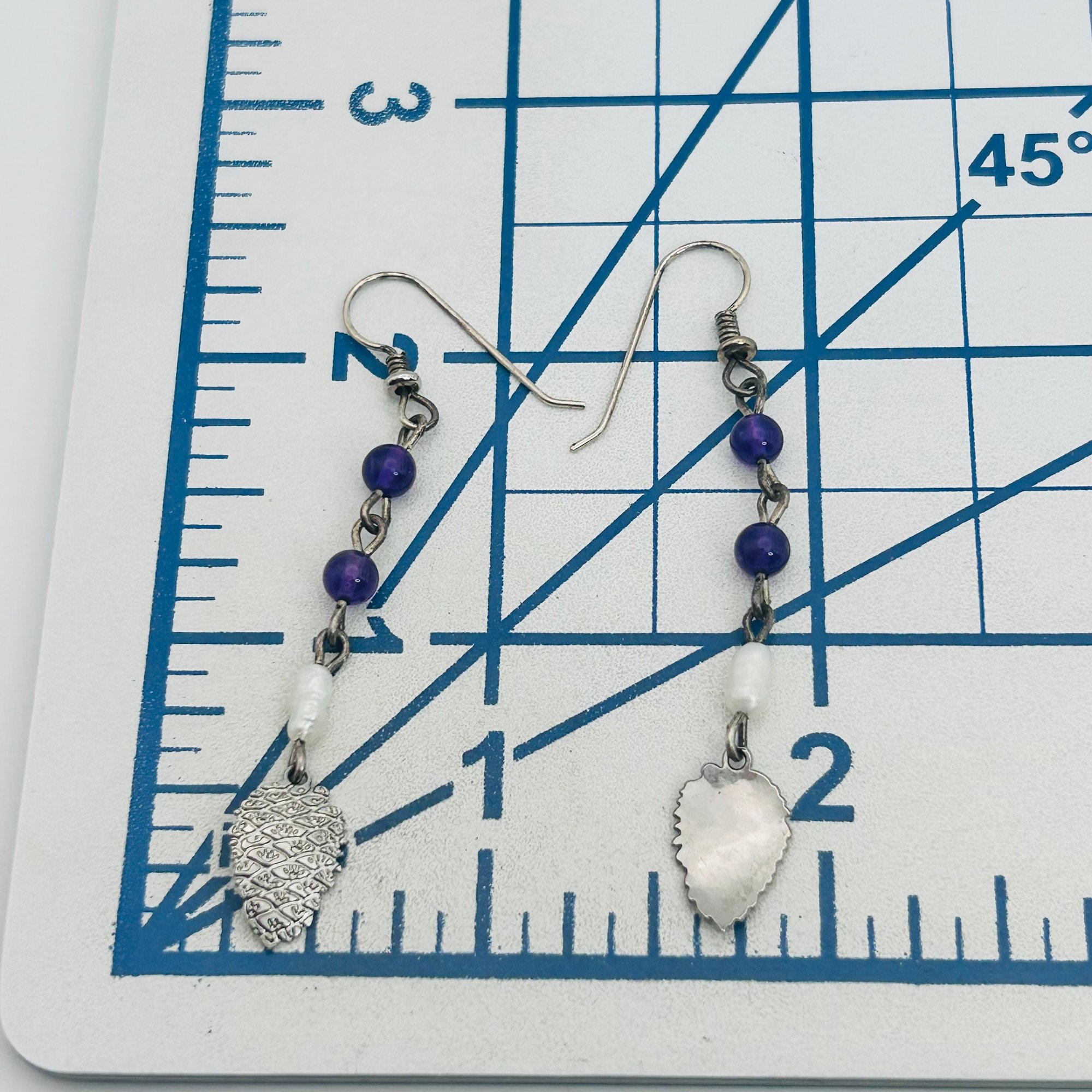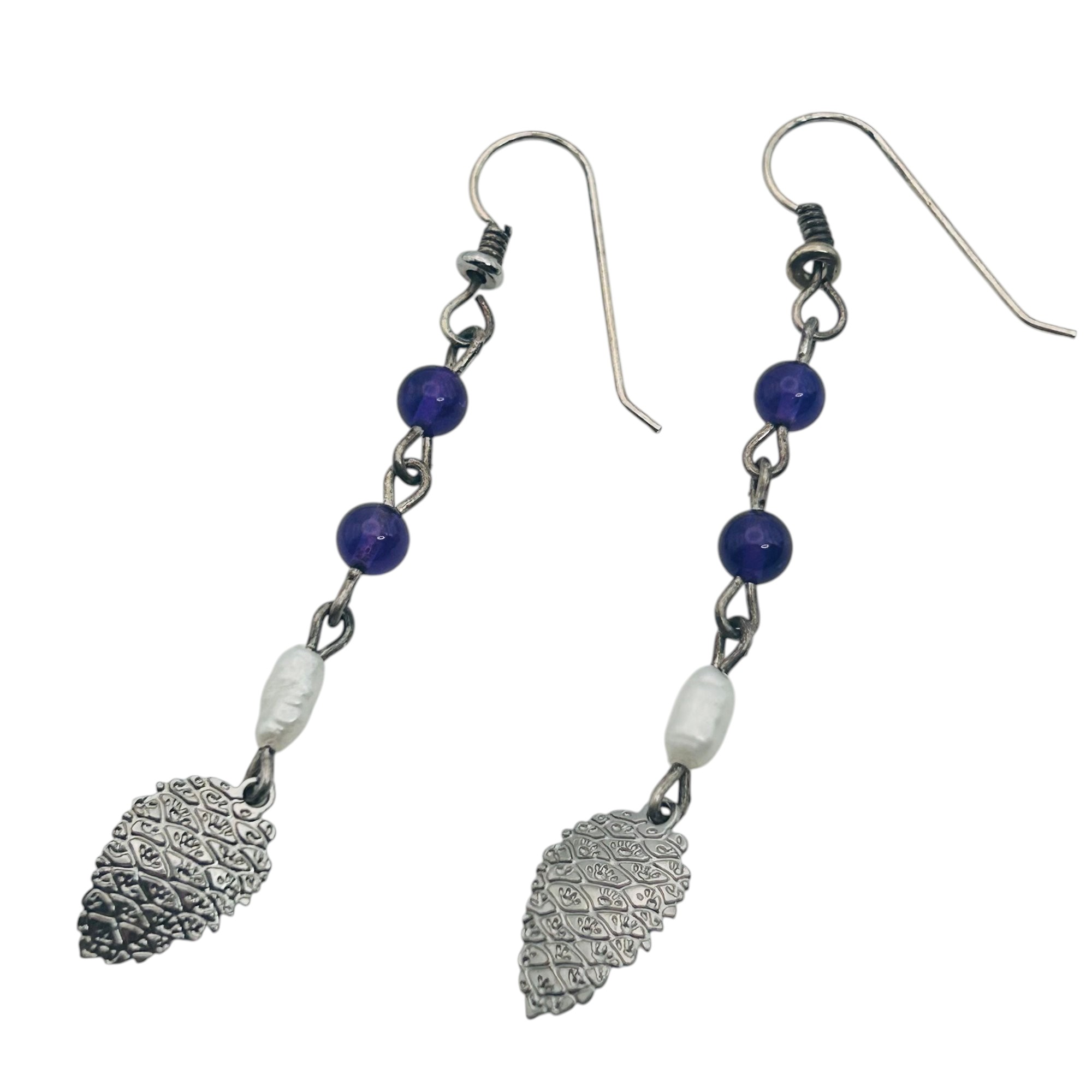 Amethyst pearl Sterling dangle earrings 2.34 g