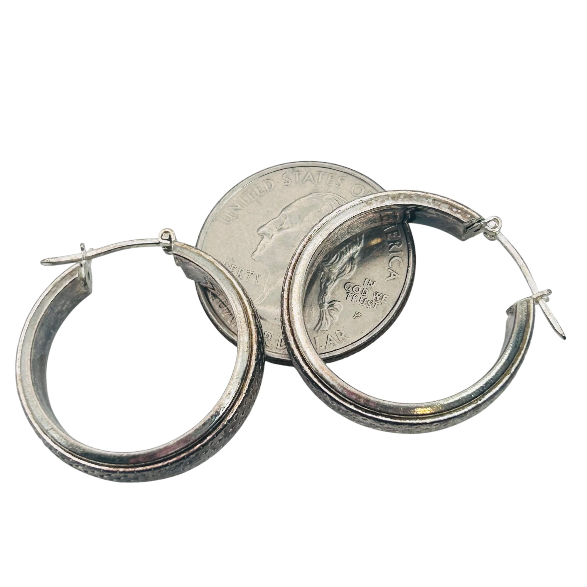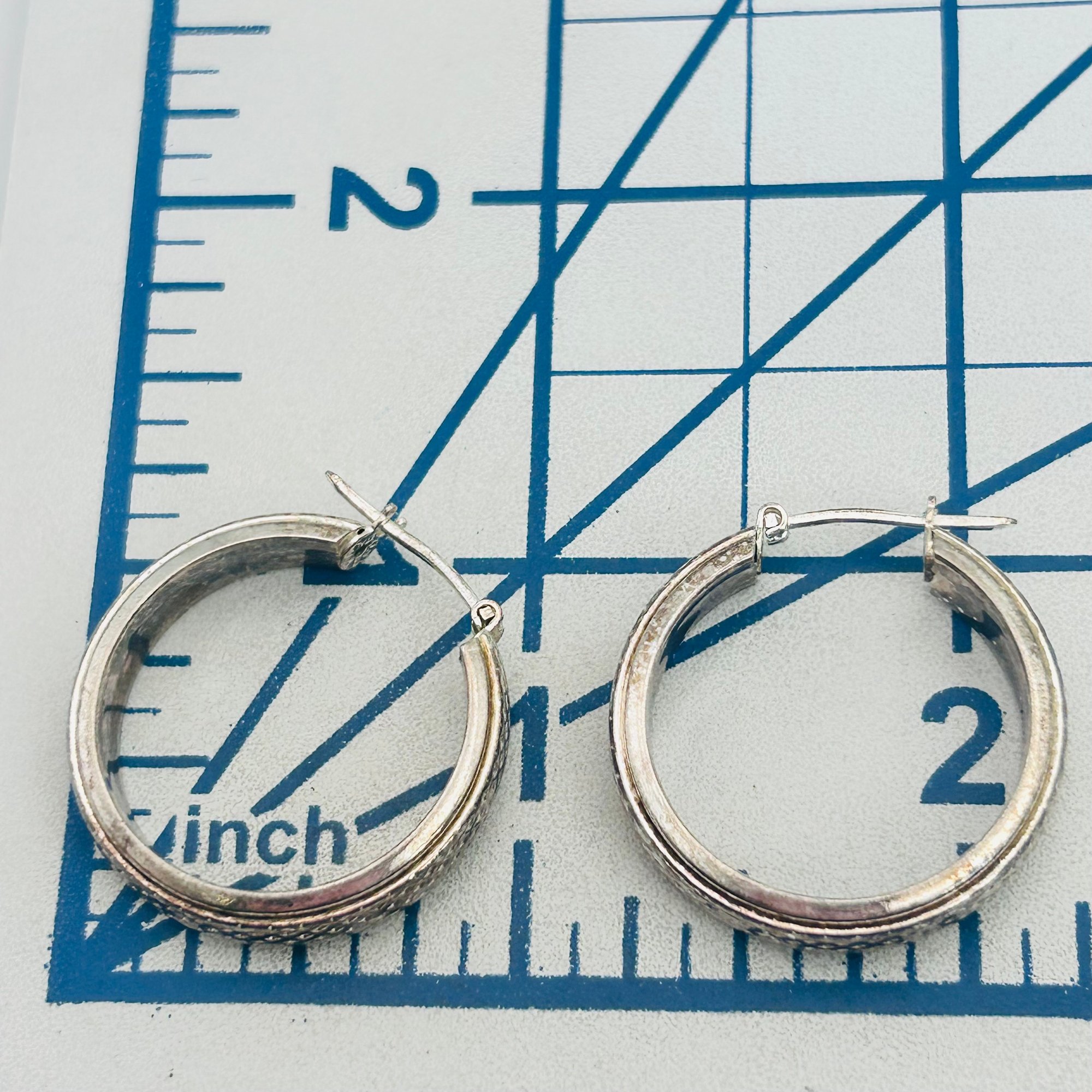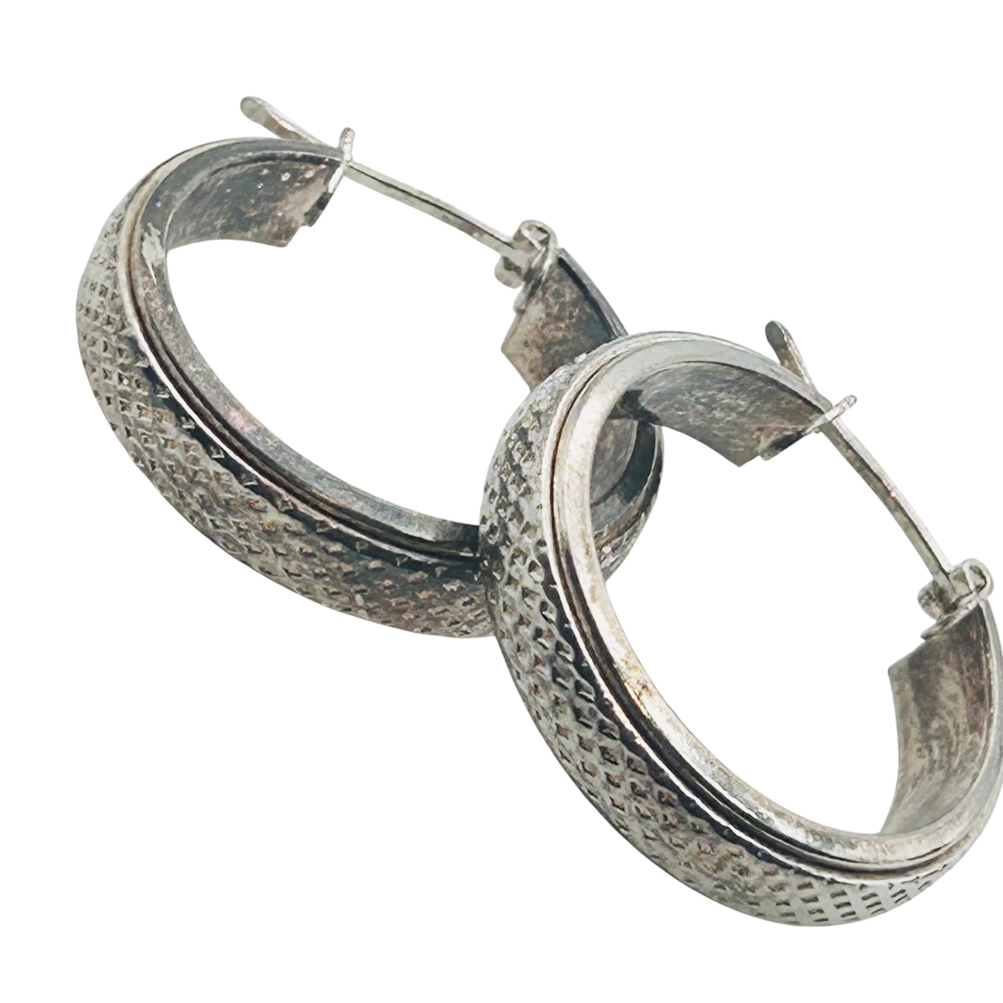 Italy Basket Weave Sterling Hinge Hoops 8.6 G