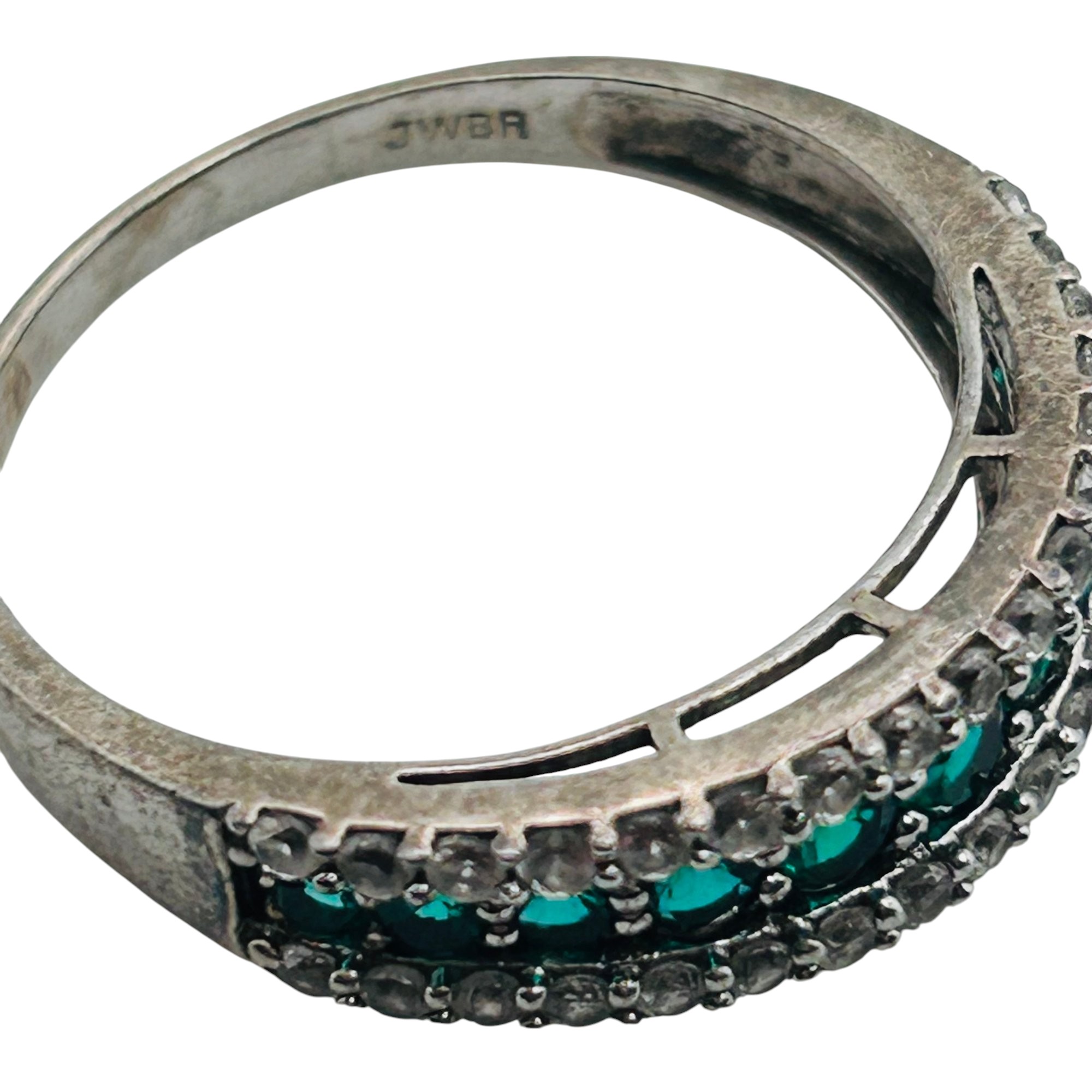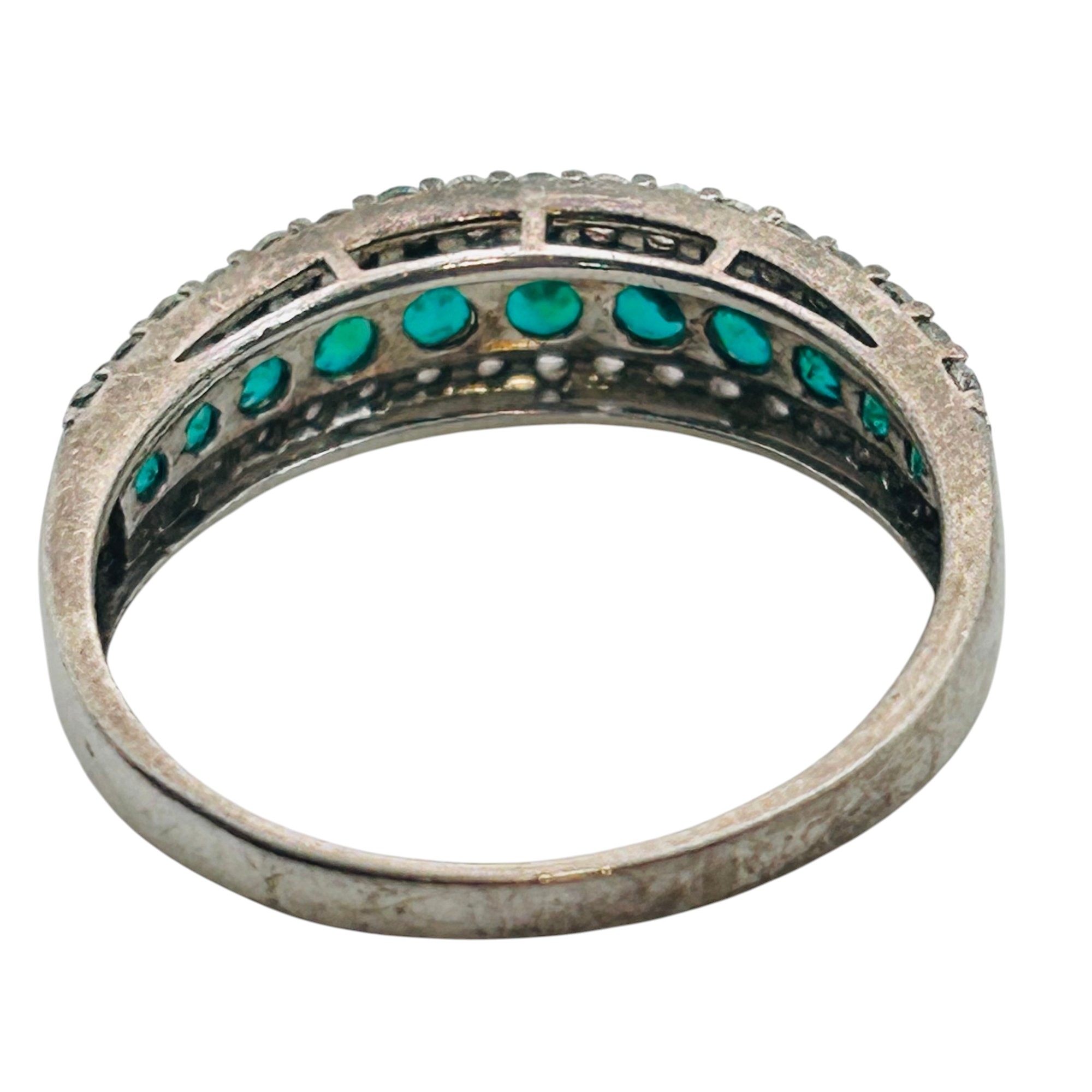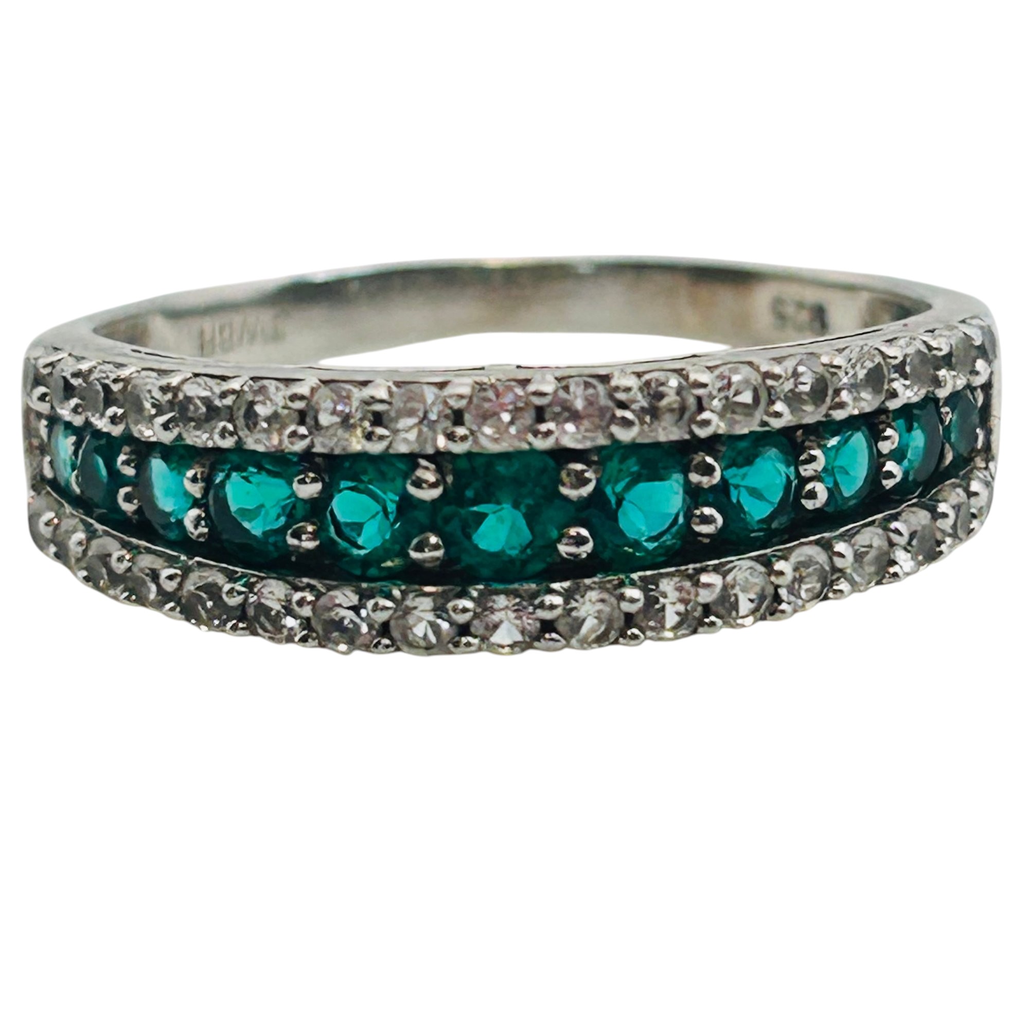 Emerald Topaz Sterling channel band size 10 2.64 g