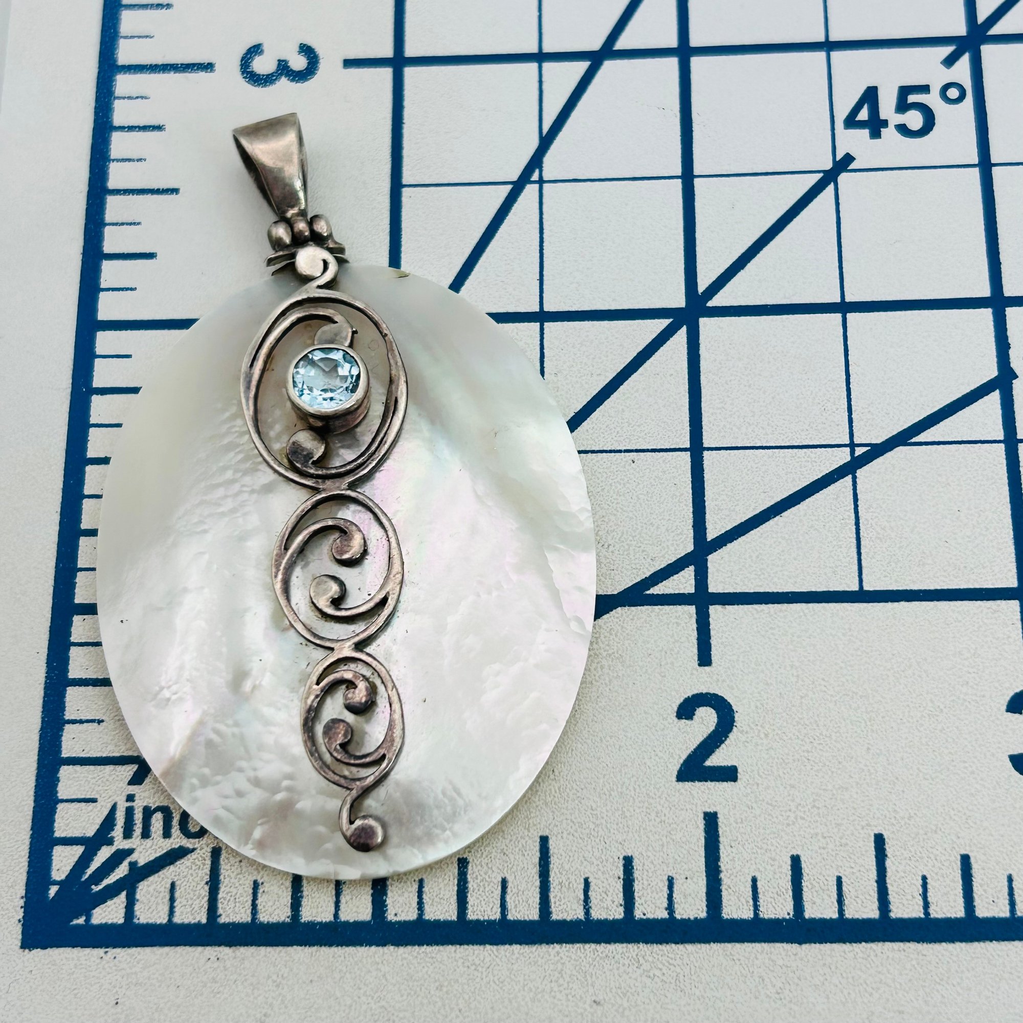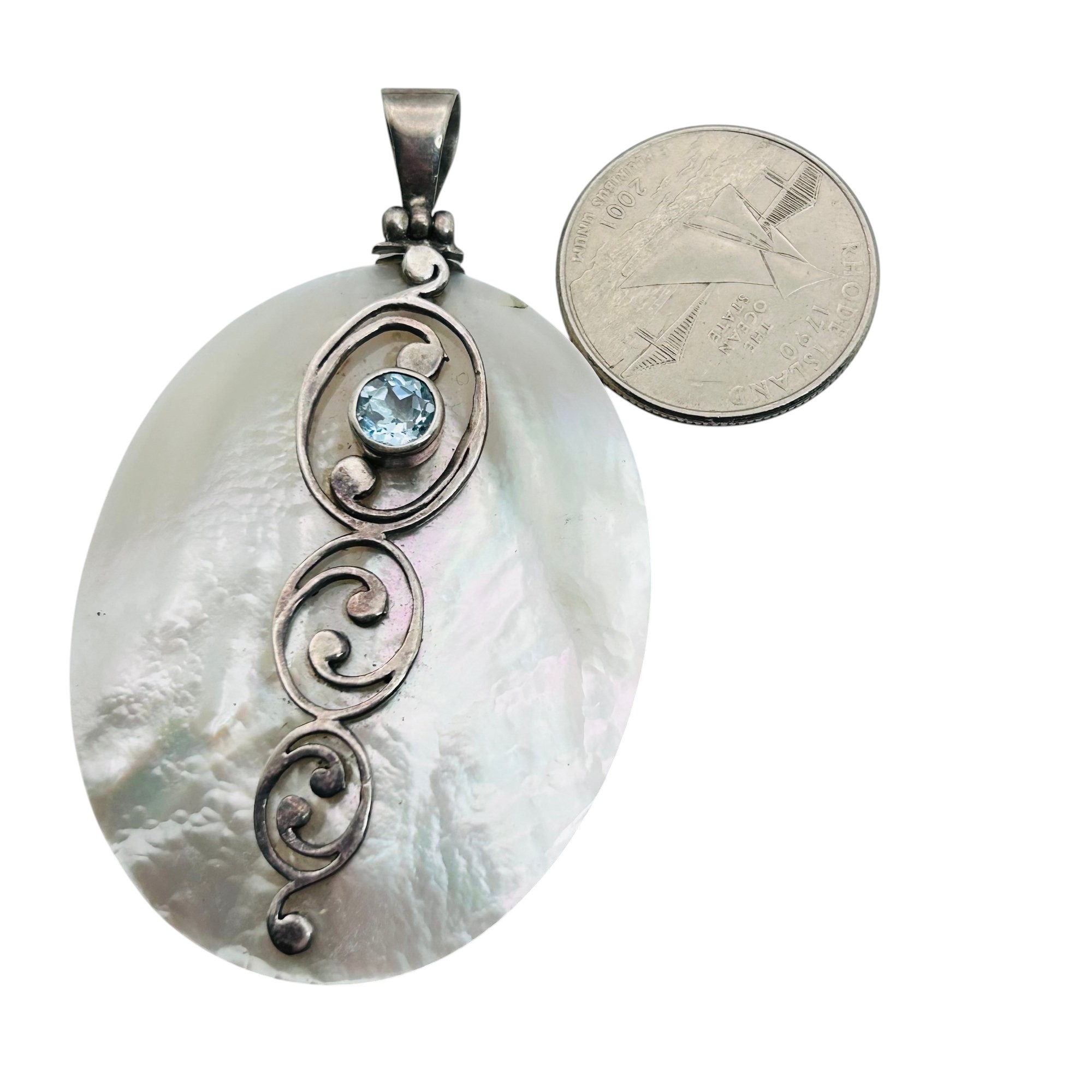 Topaz mother Pearl Sterling oval pendant 13.72 g