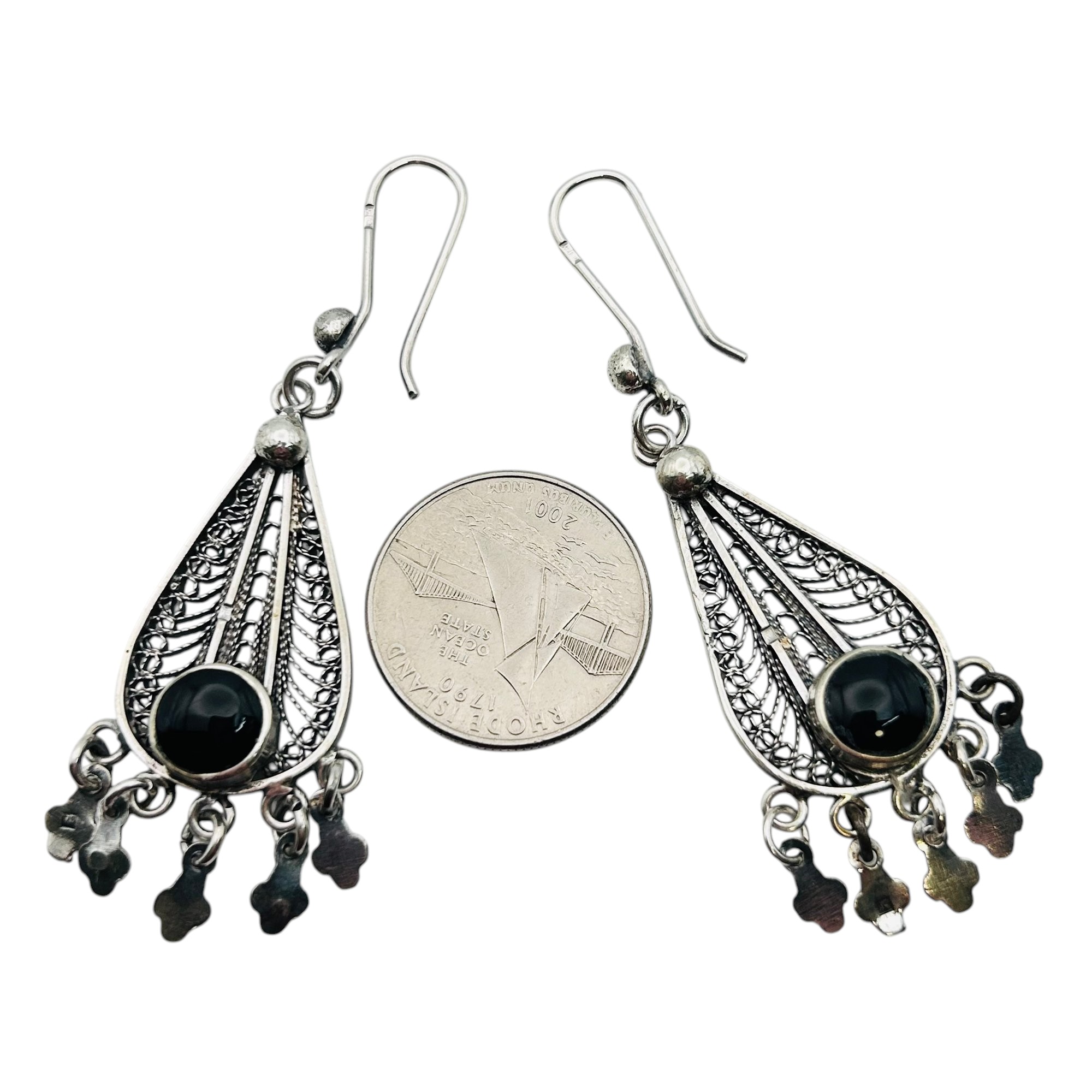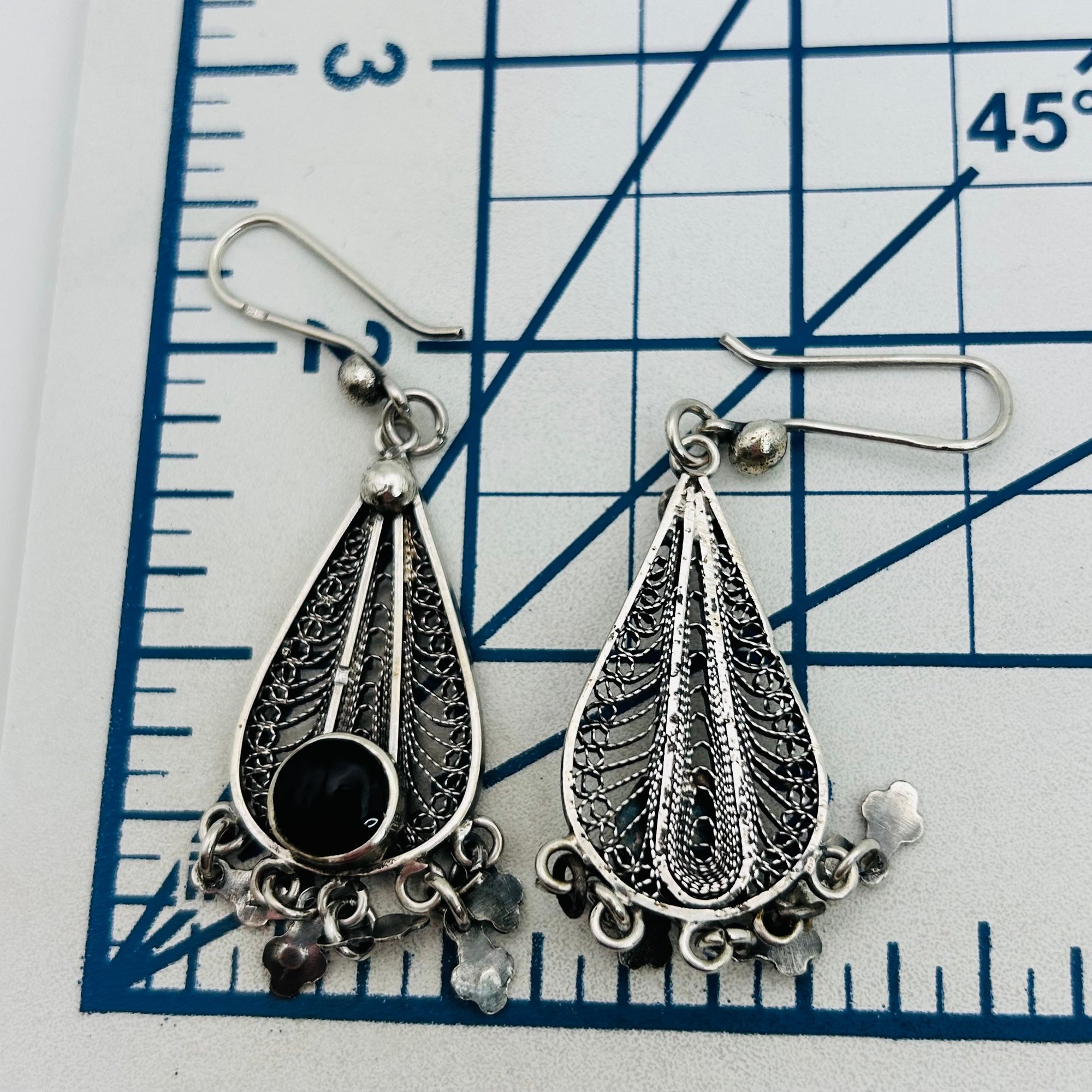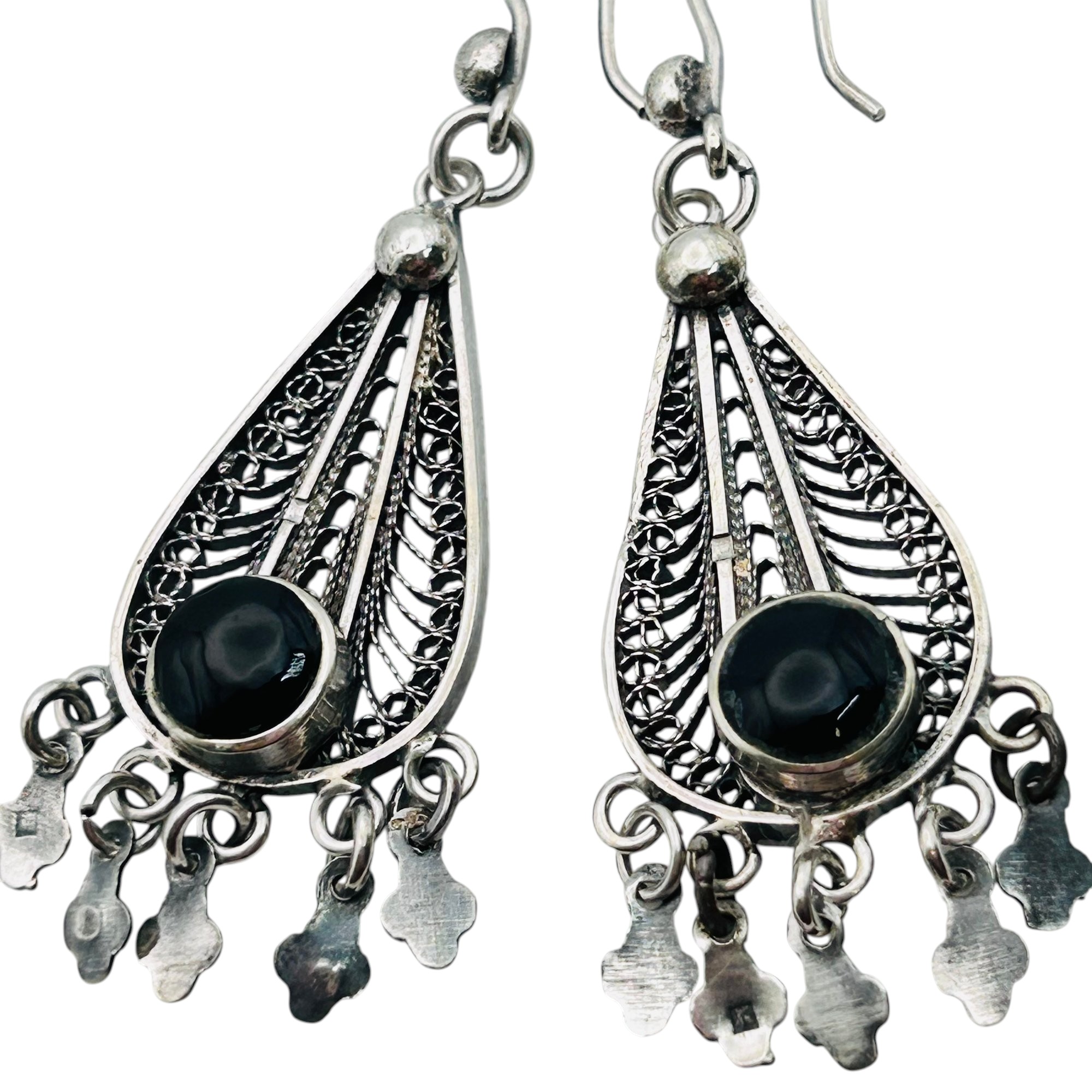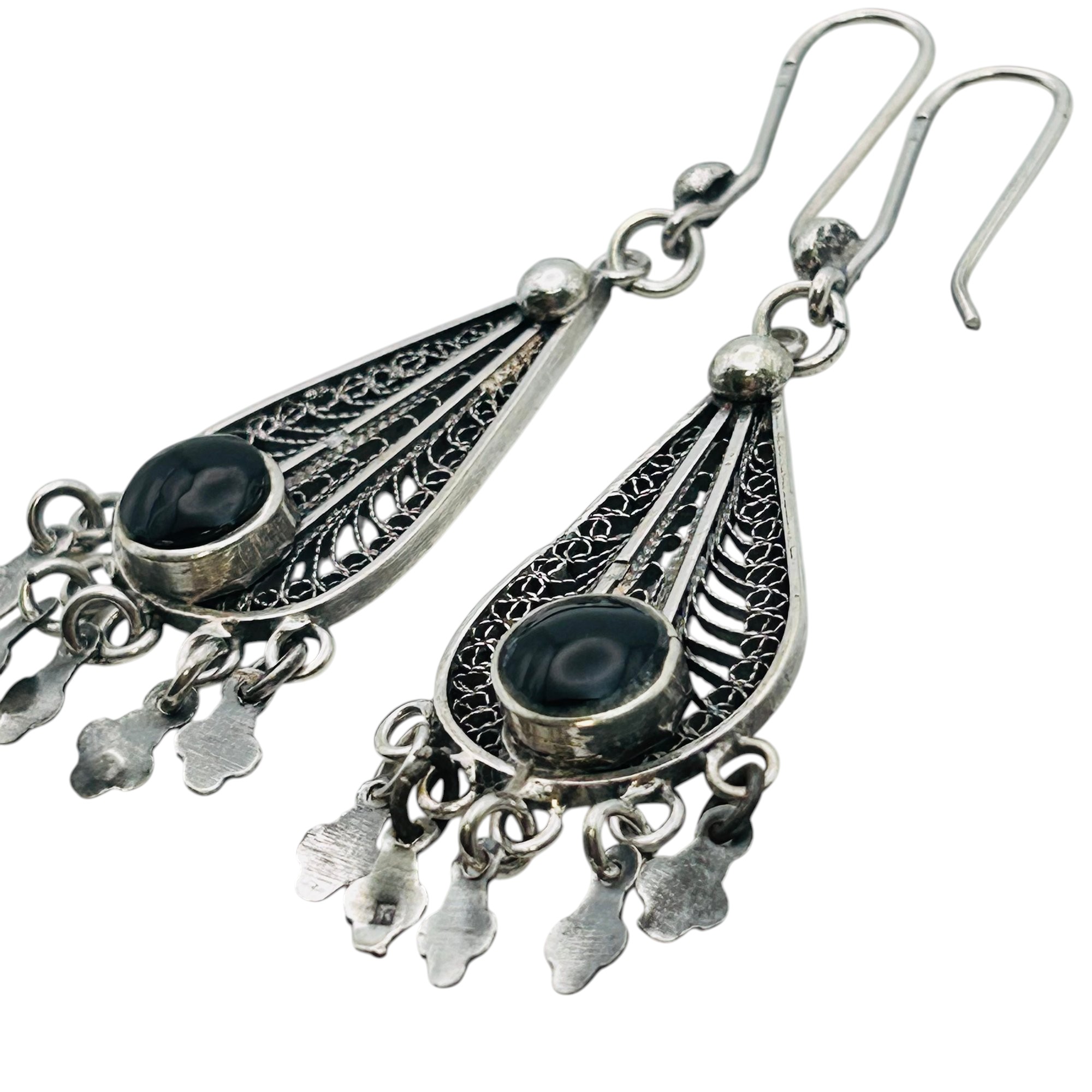 Sterling filigree dangle Blackstone earrings 14.05 g