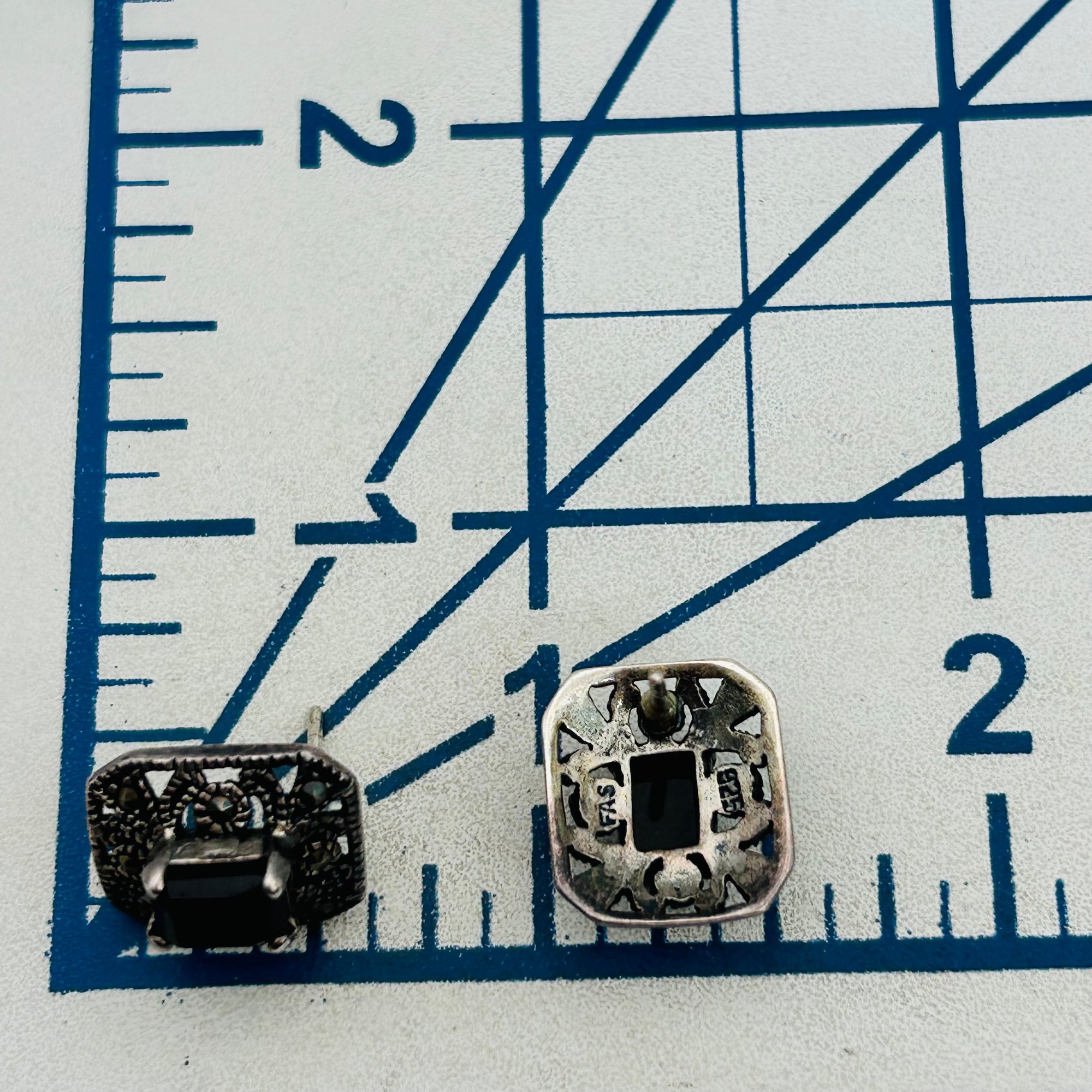 FAS ONYX MARCASITE Sterling Square Stud Earrings 4.31 G