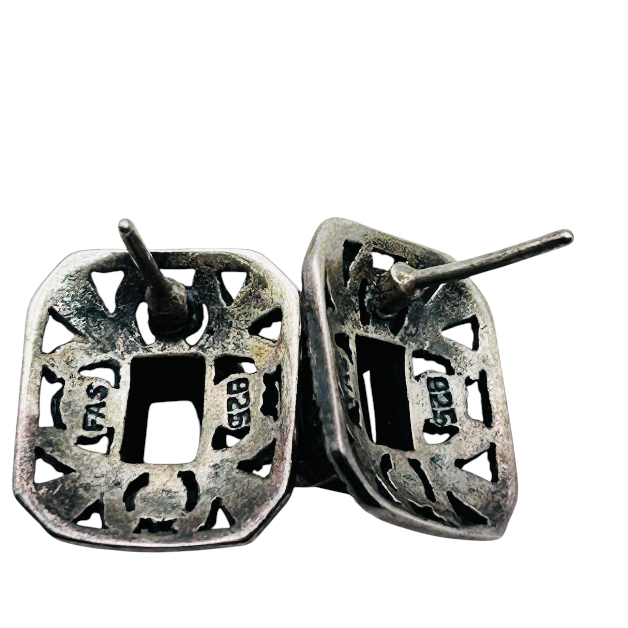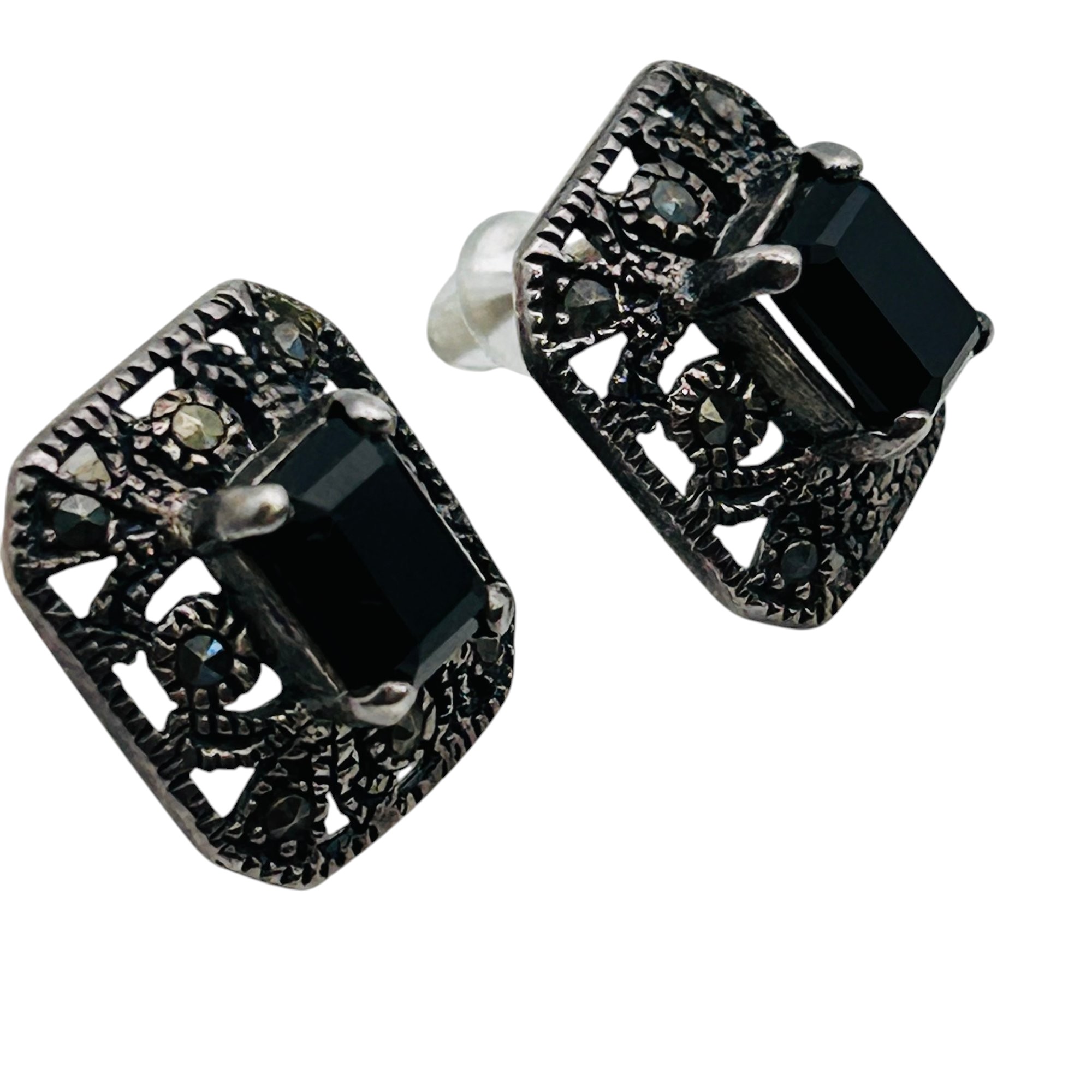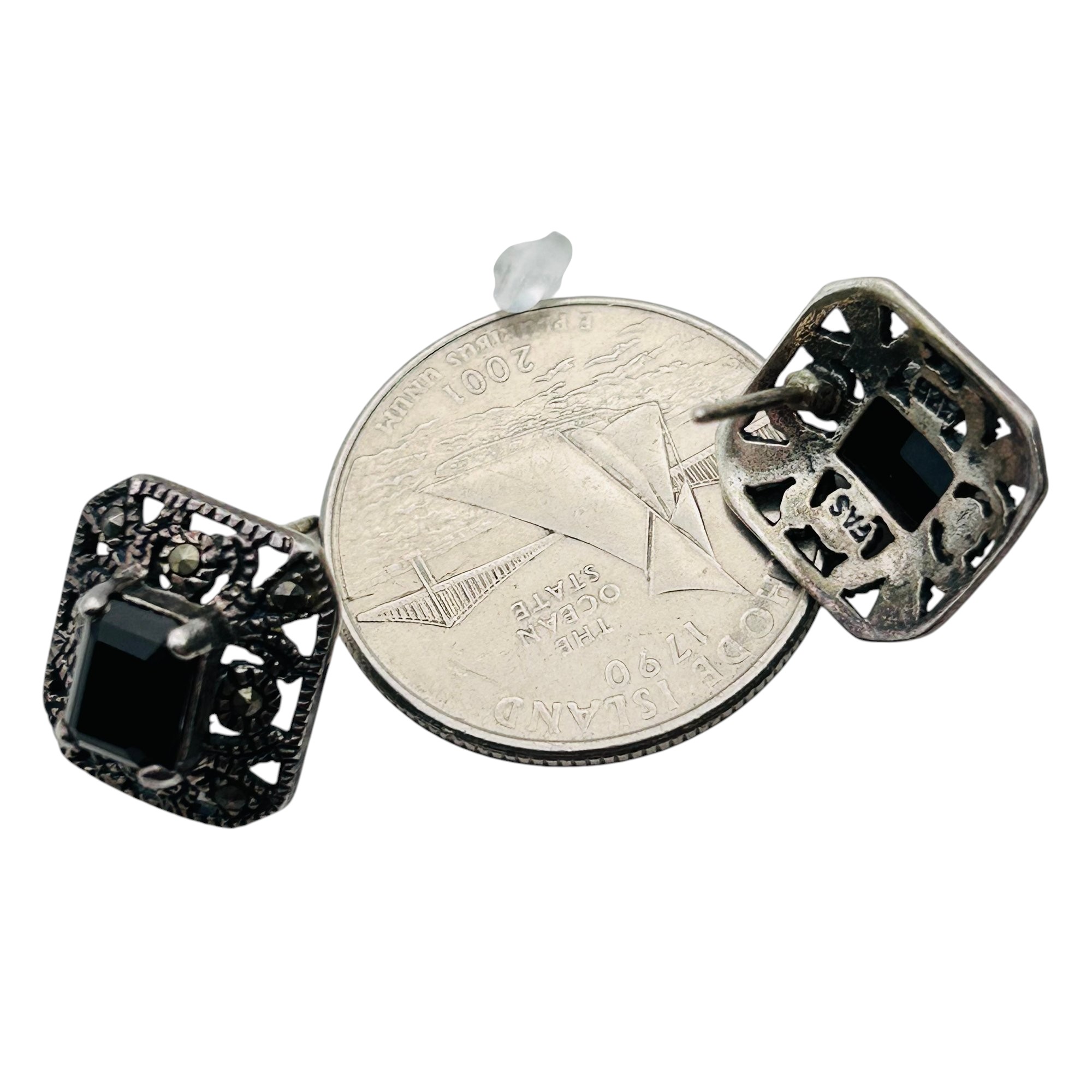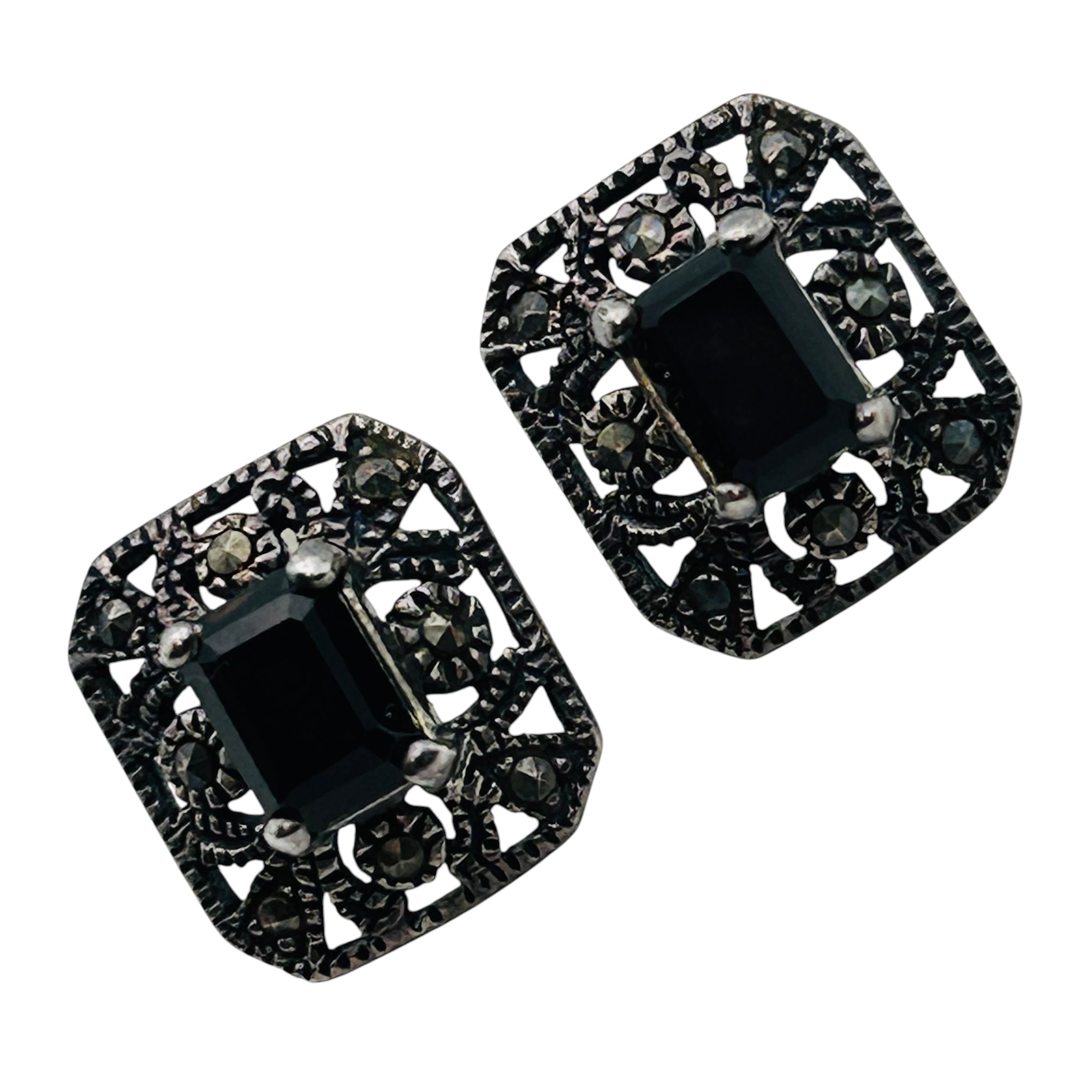 FAS ONYX MARCASITE Sterling Square stud earrings 4.31 g