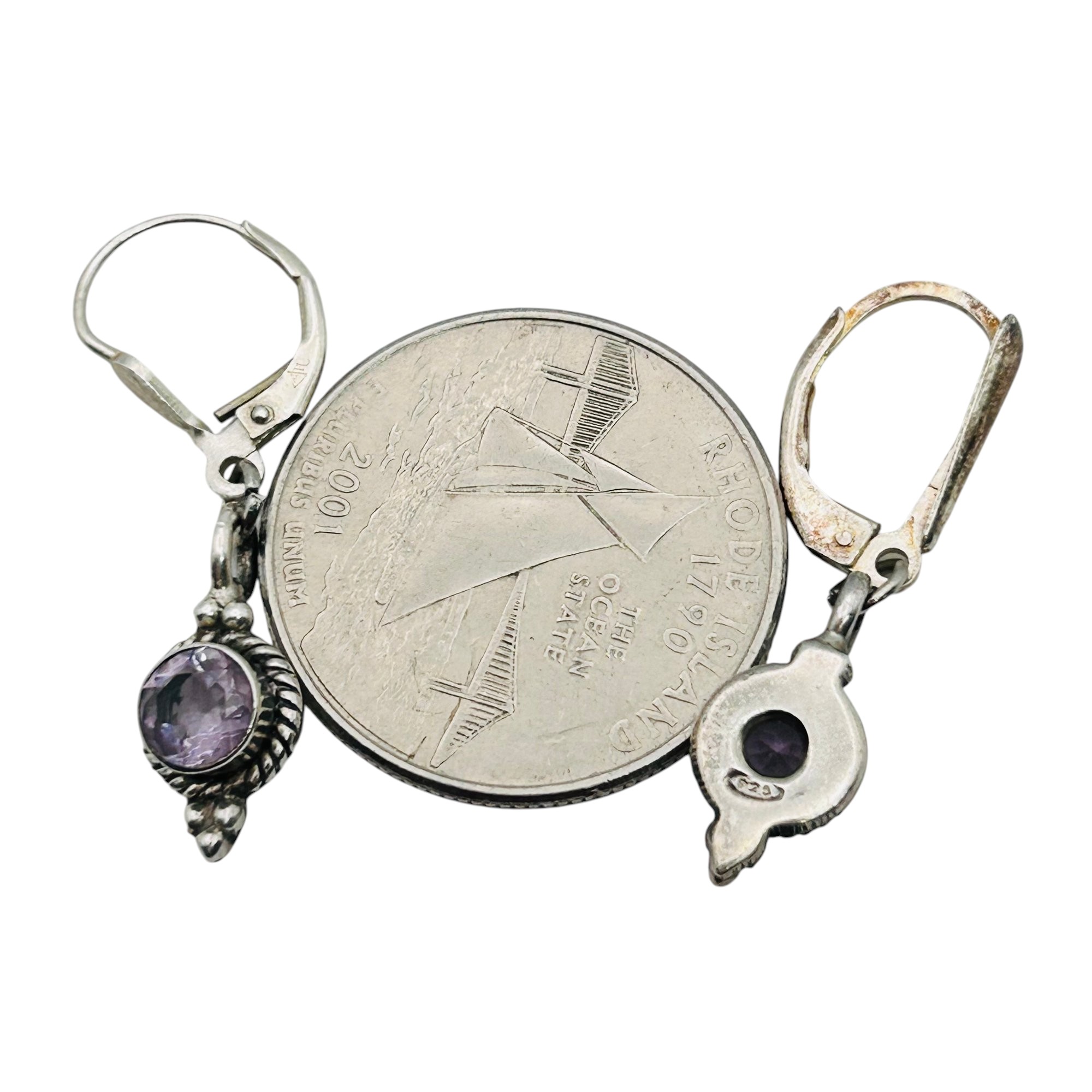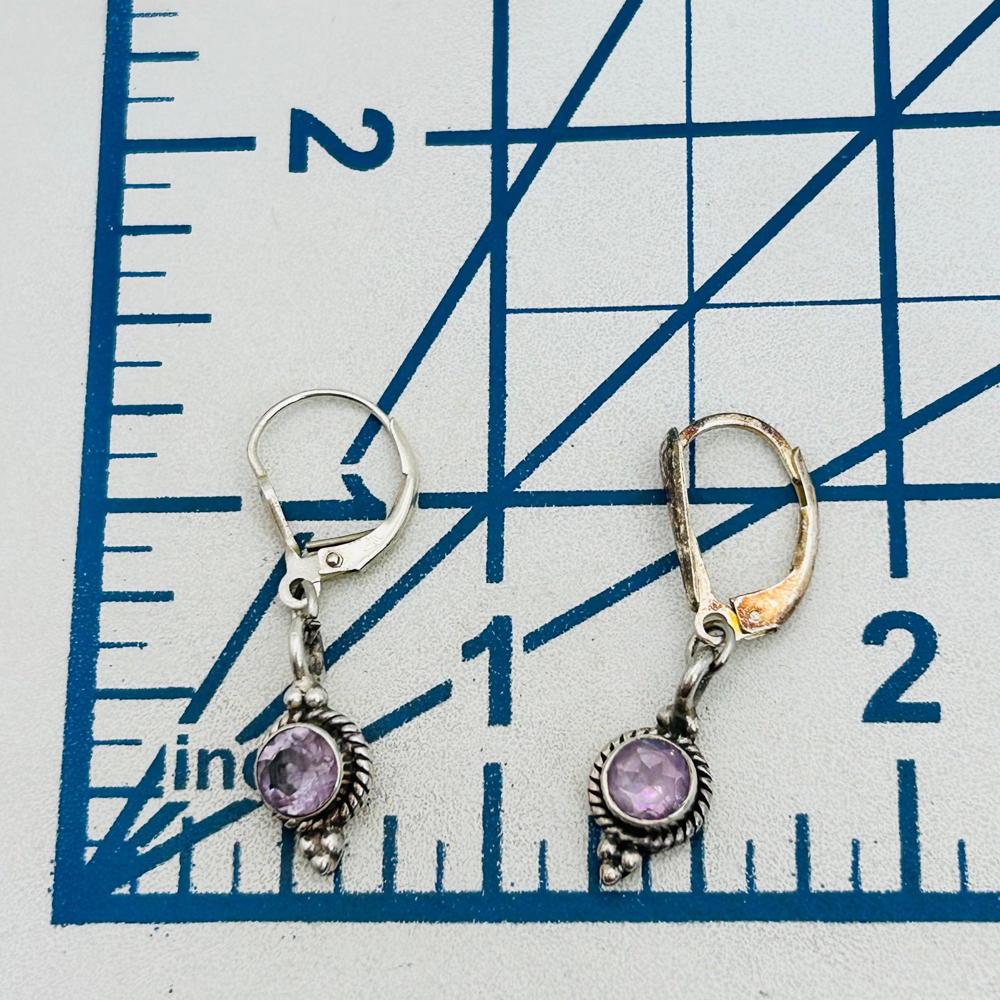 Amethyst Sterling dangle hinge earrings 3.09 g