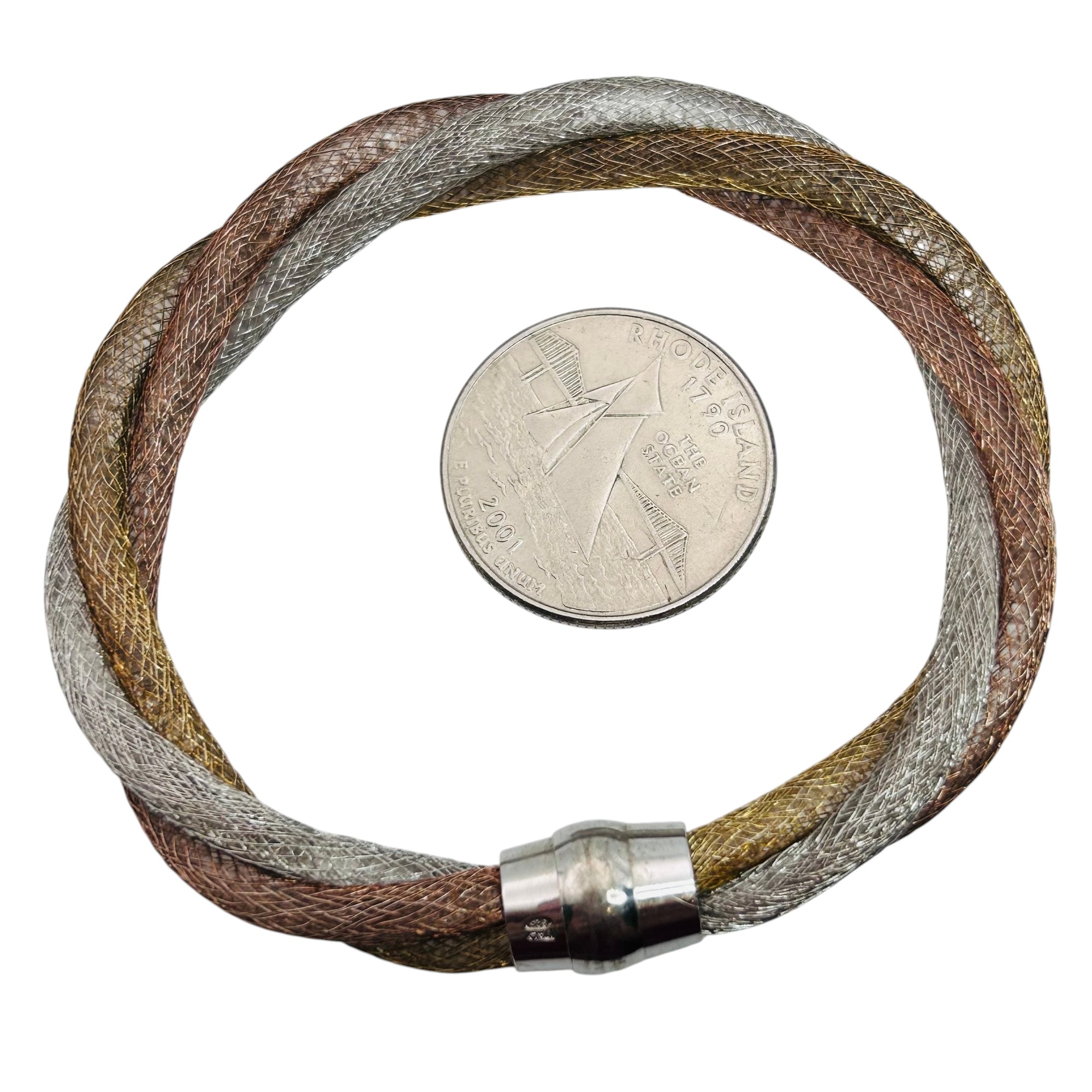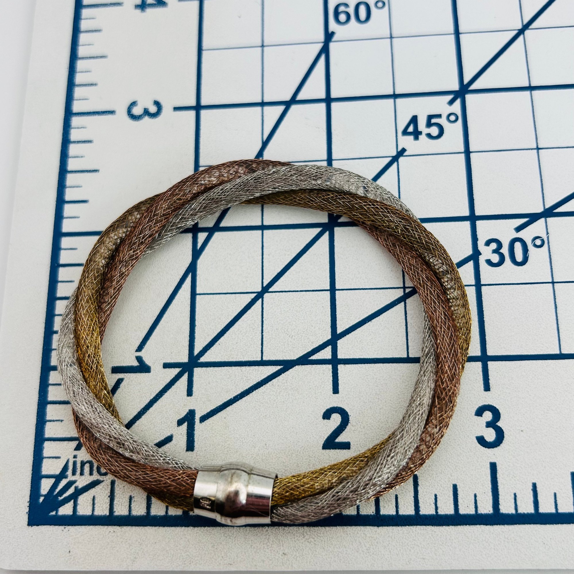 Italy twisted triple mesh chain bracelet magnetic clasp 11.13 g