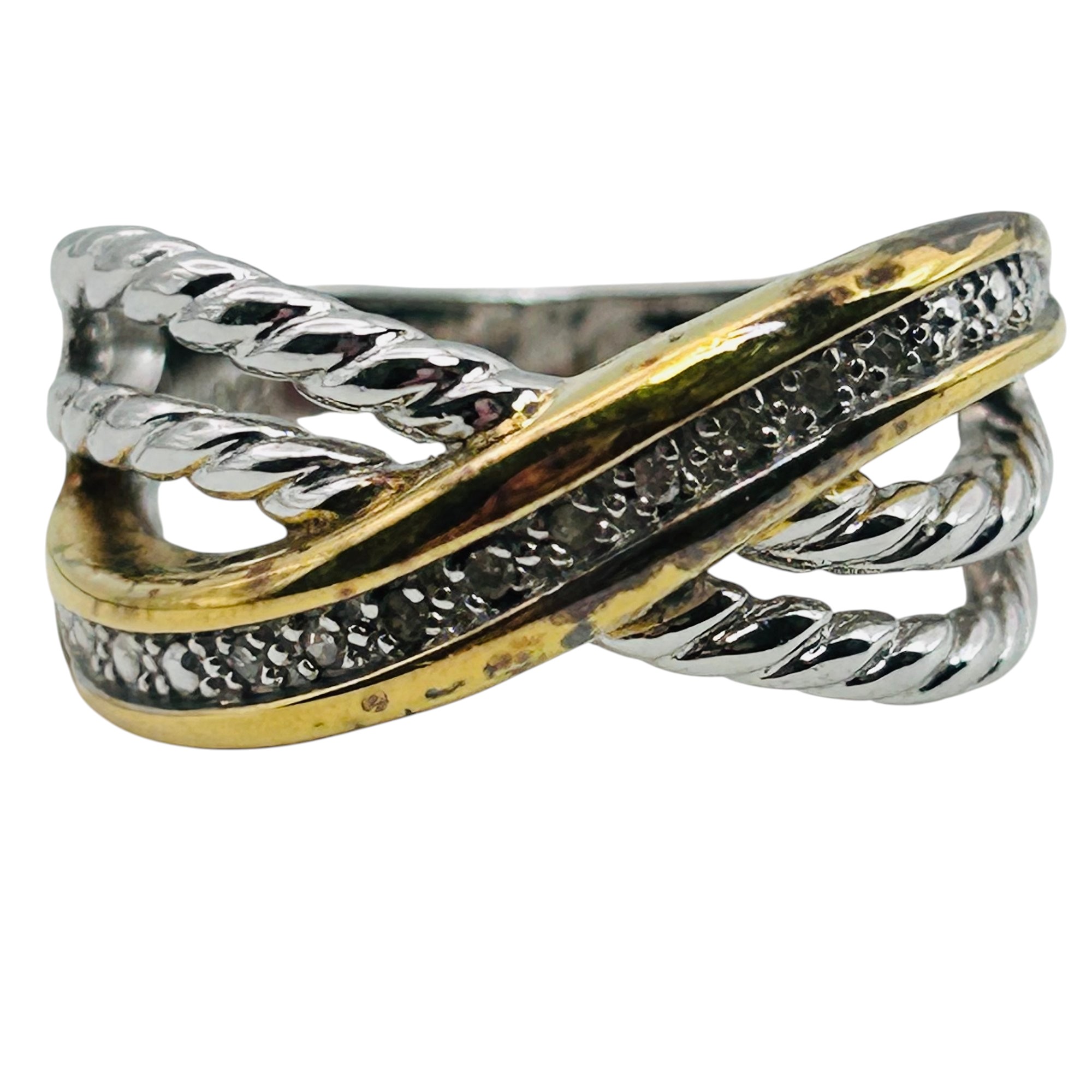 Diamond Sterling crisscross band ring size 7 5.91 g