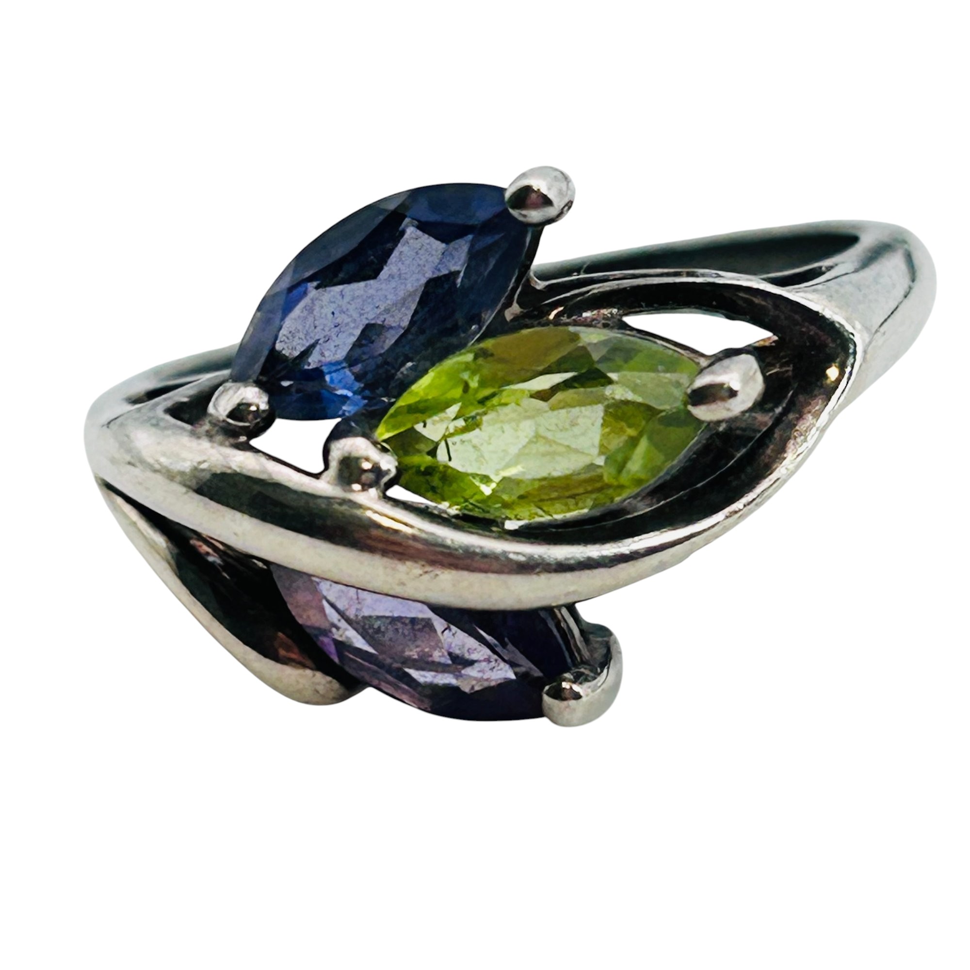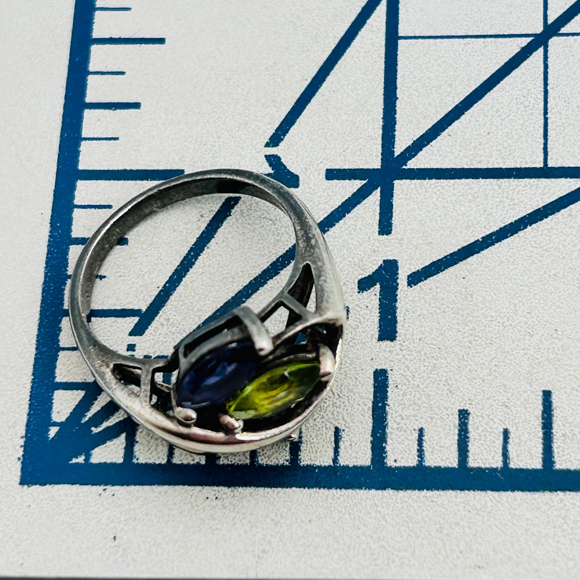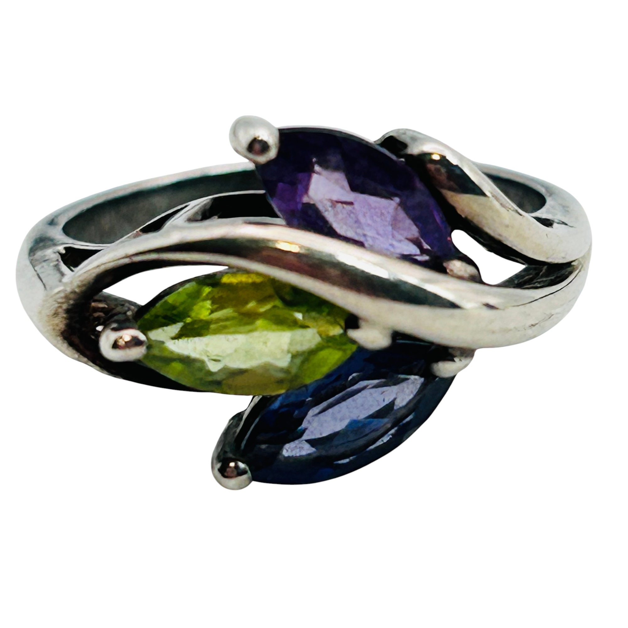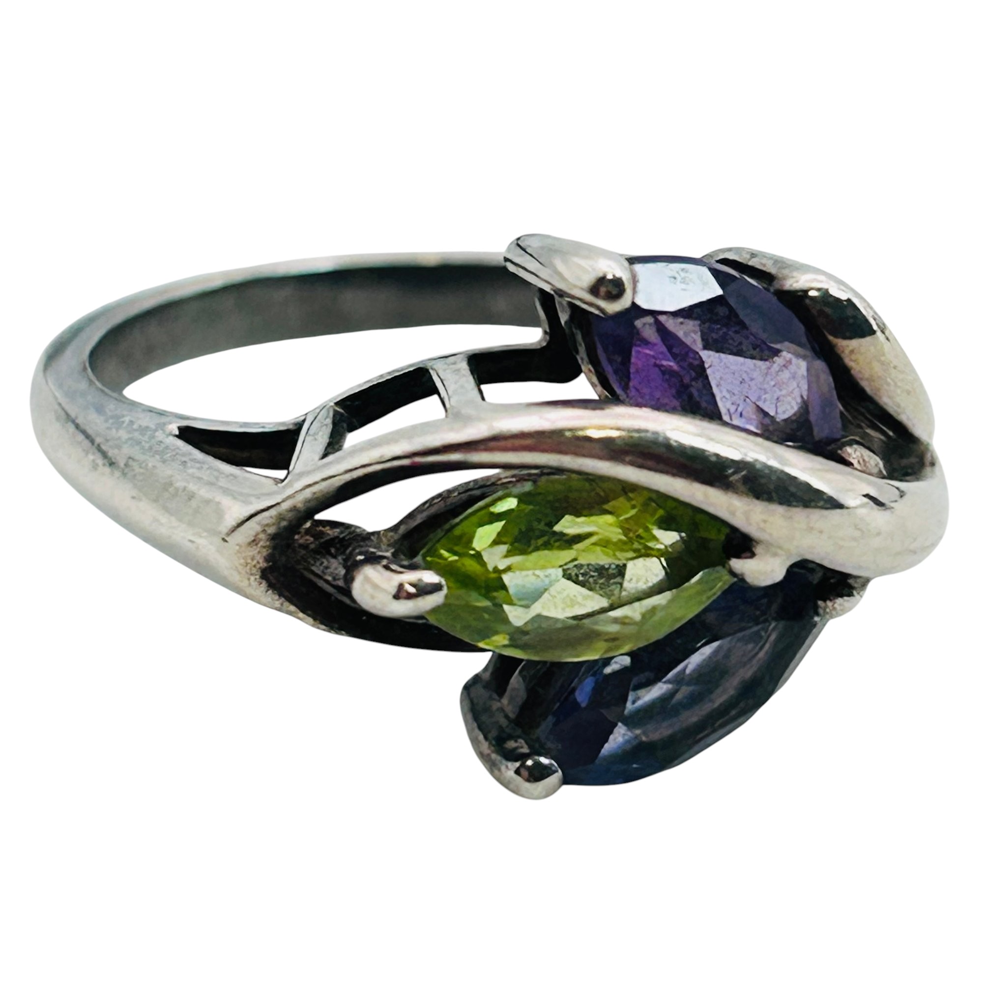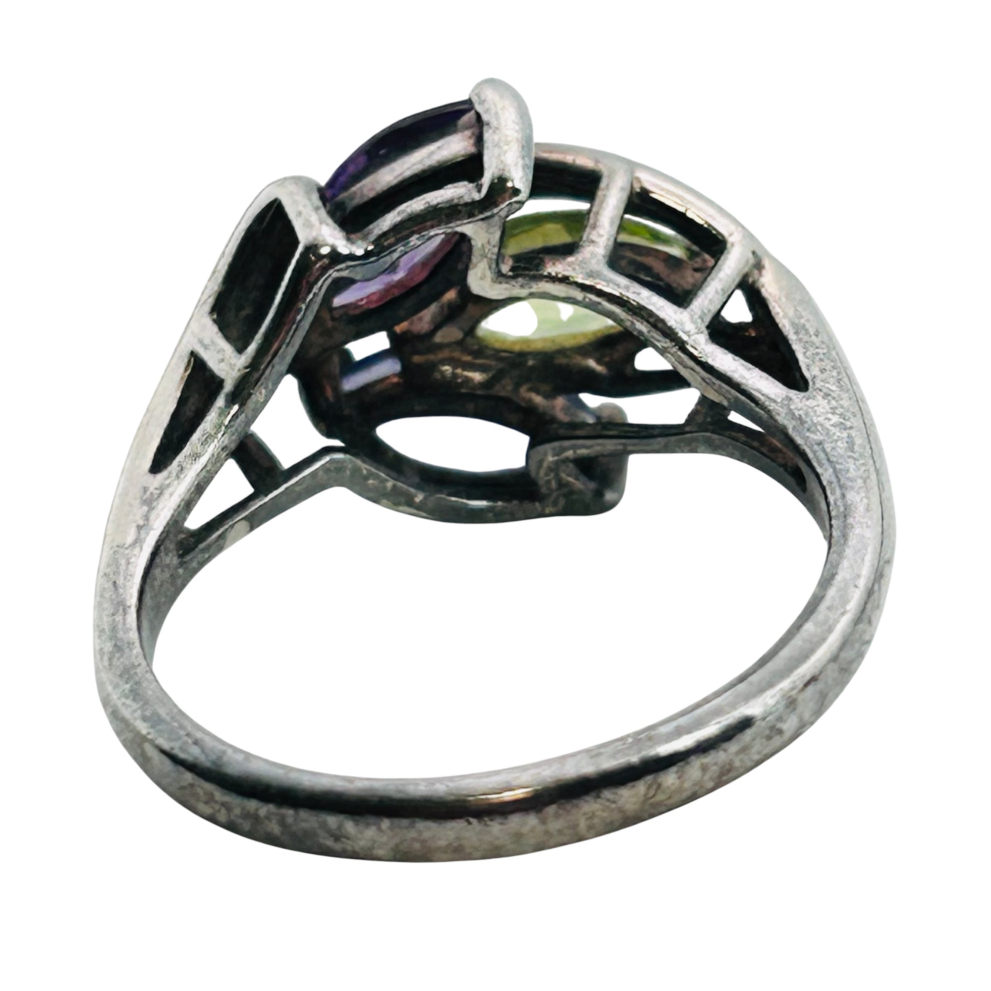 P.Sterling amethyst and Peridot Sterling flower ring 3.77 g size 7
