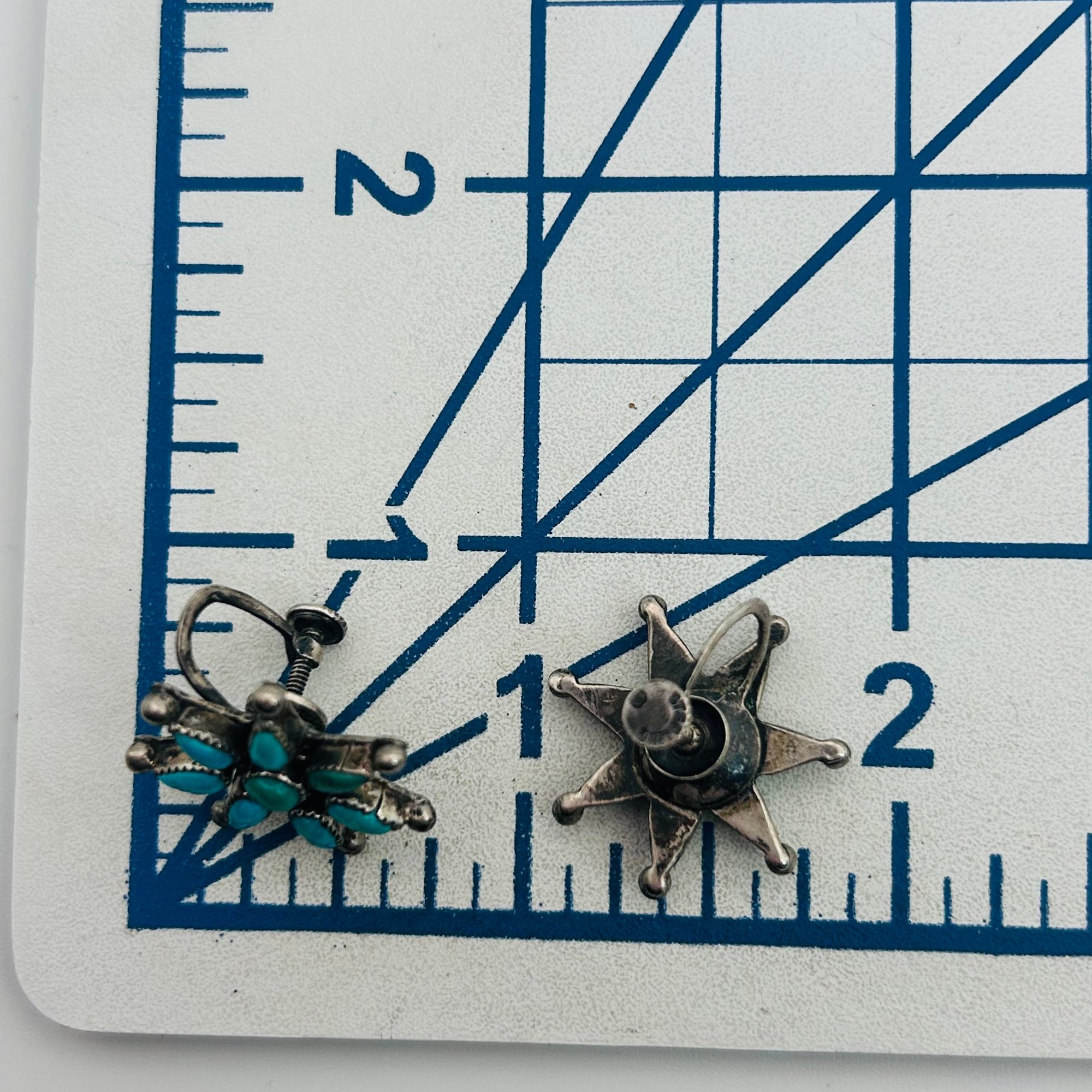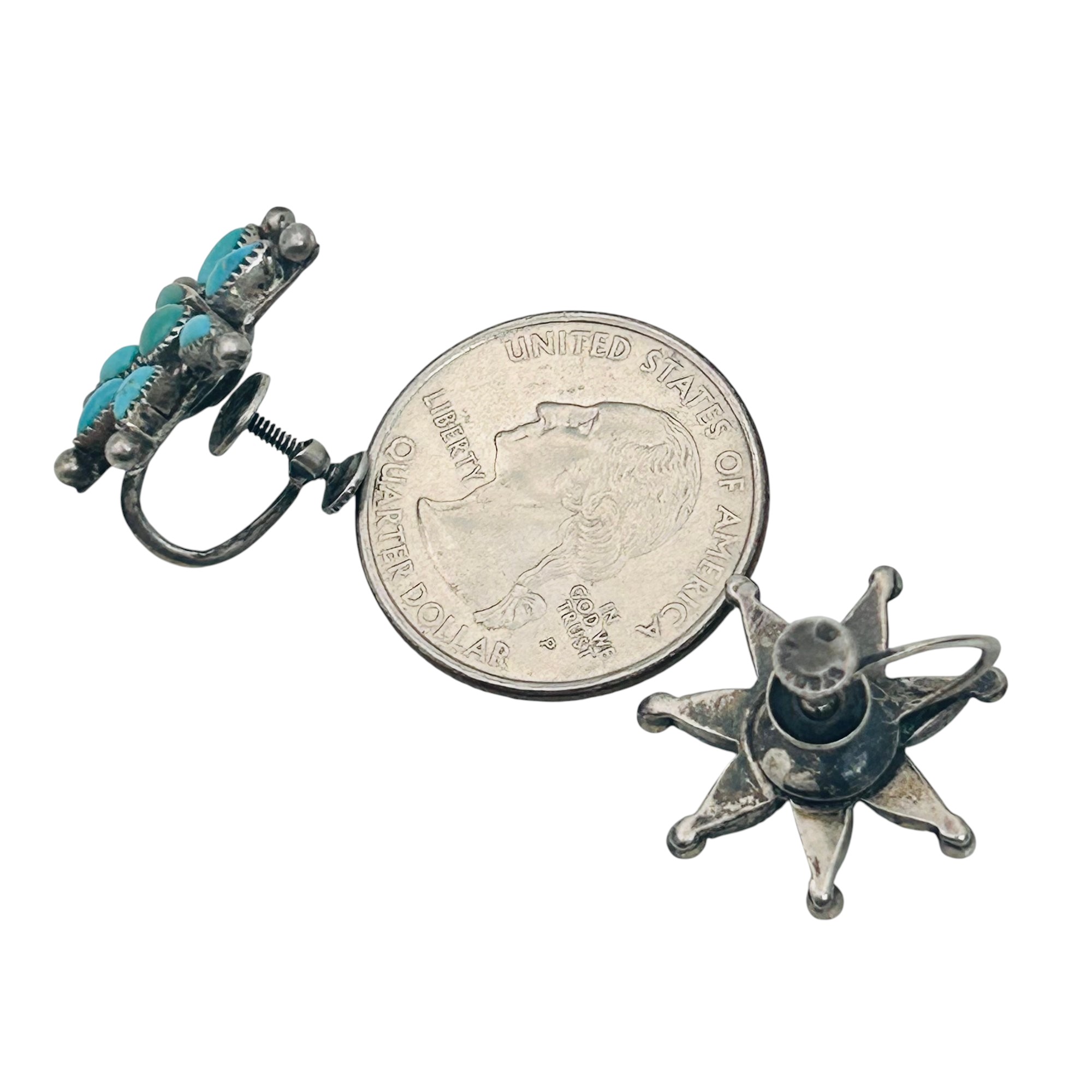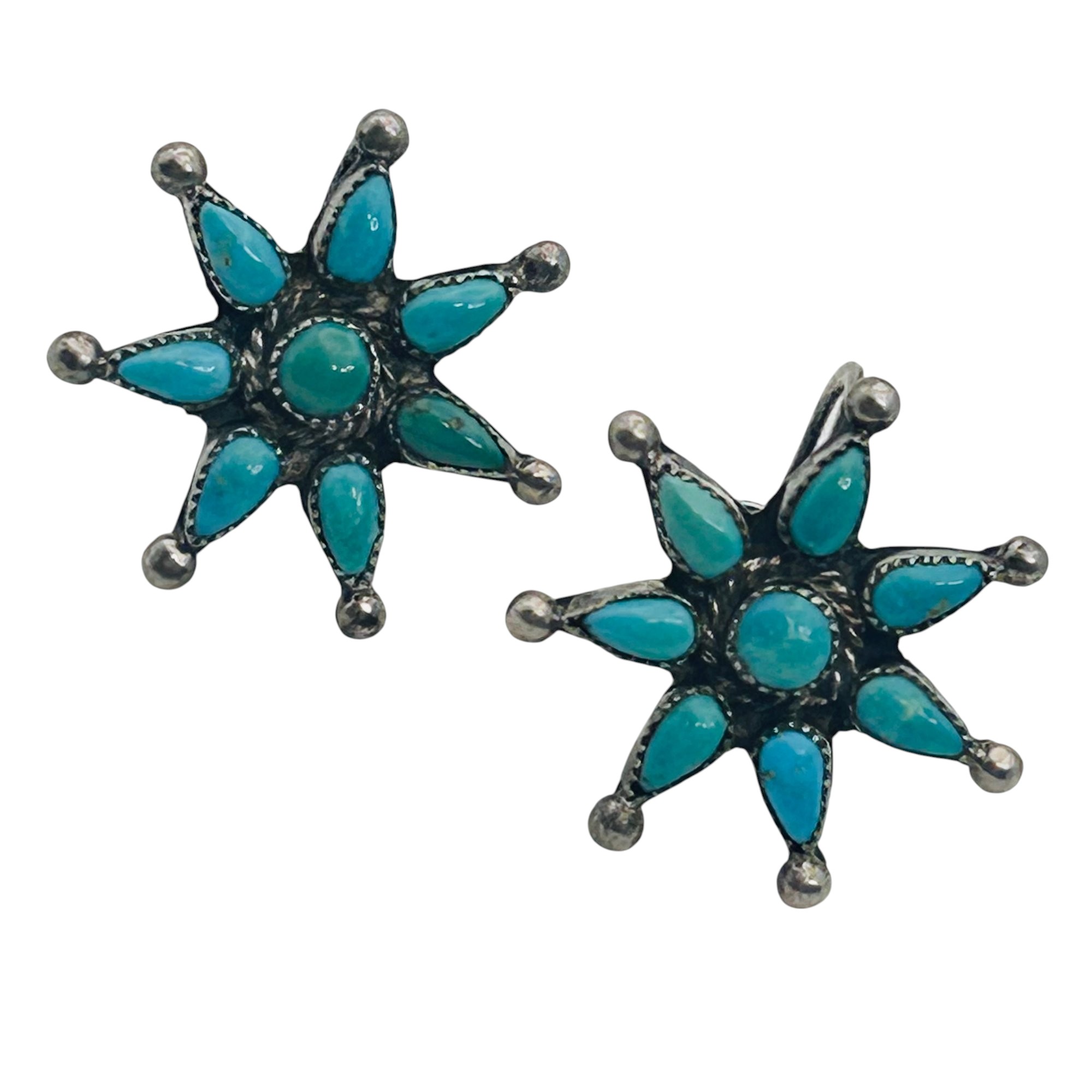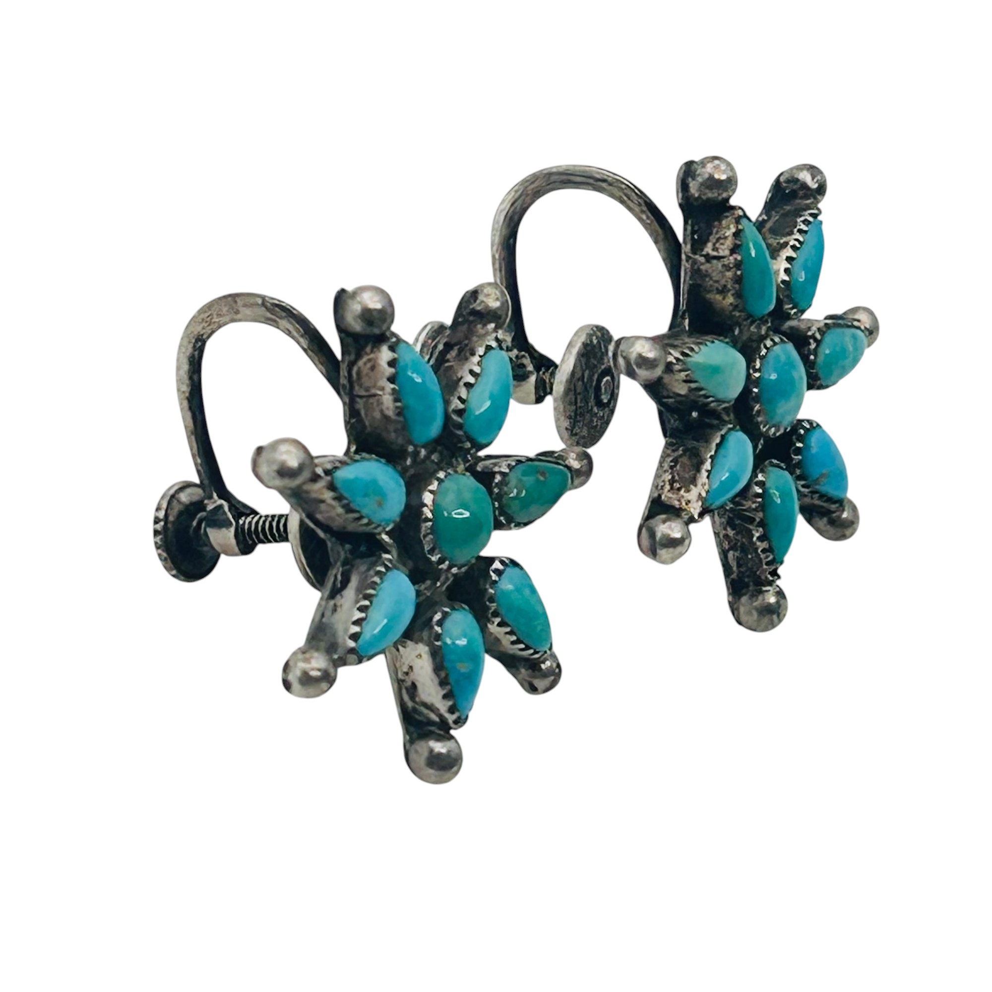Native turquoise Sterling needle point screwback earrings 5.63 g
